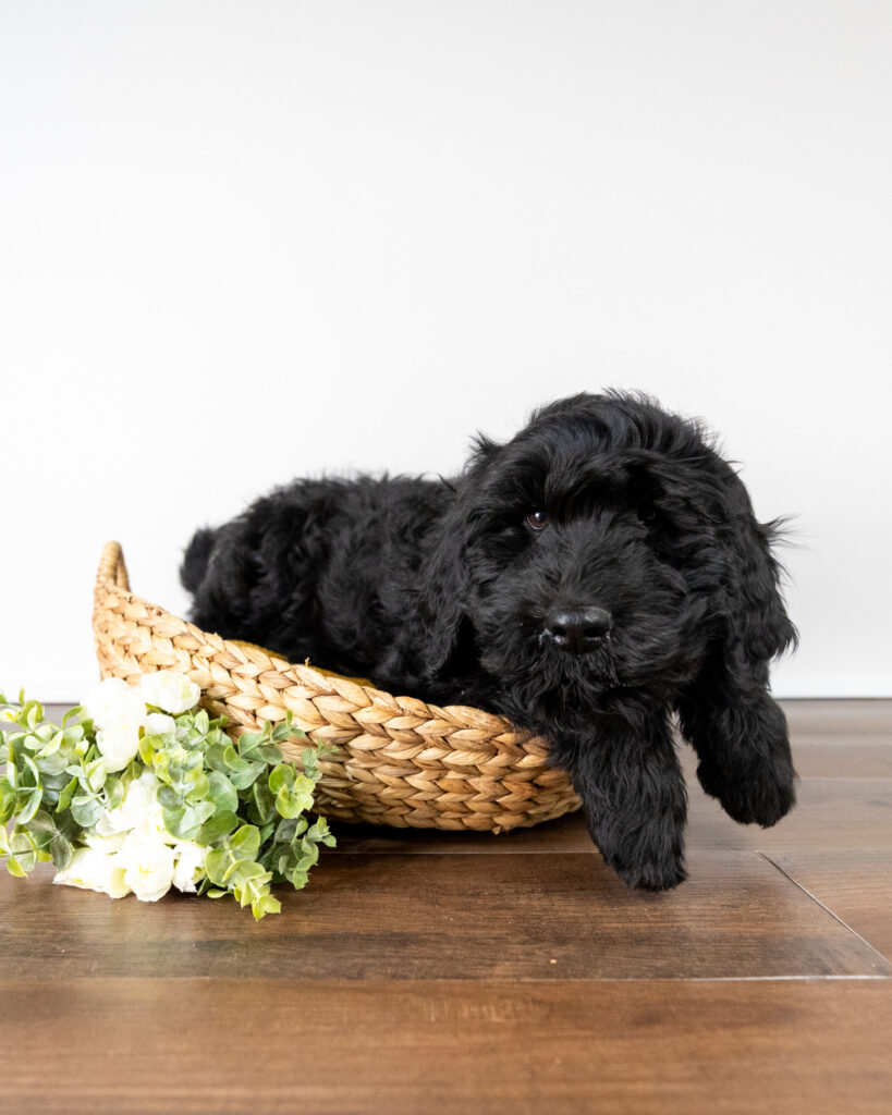 Fraser is a black medium Goldendoodle puppy who will be ready for his forever home around January 14th.