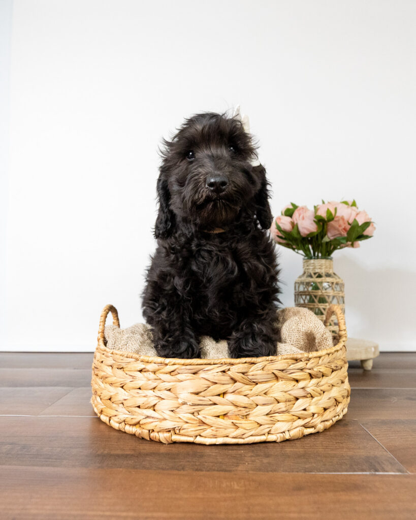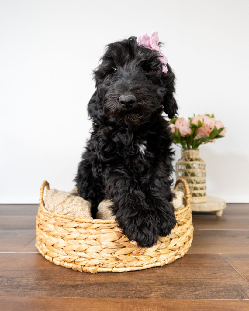 Viola is a black Goldendoodle puppy who will be ready for her forever home around December 16th.