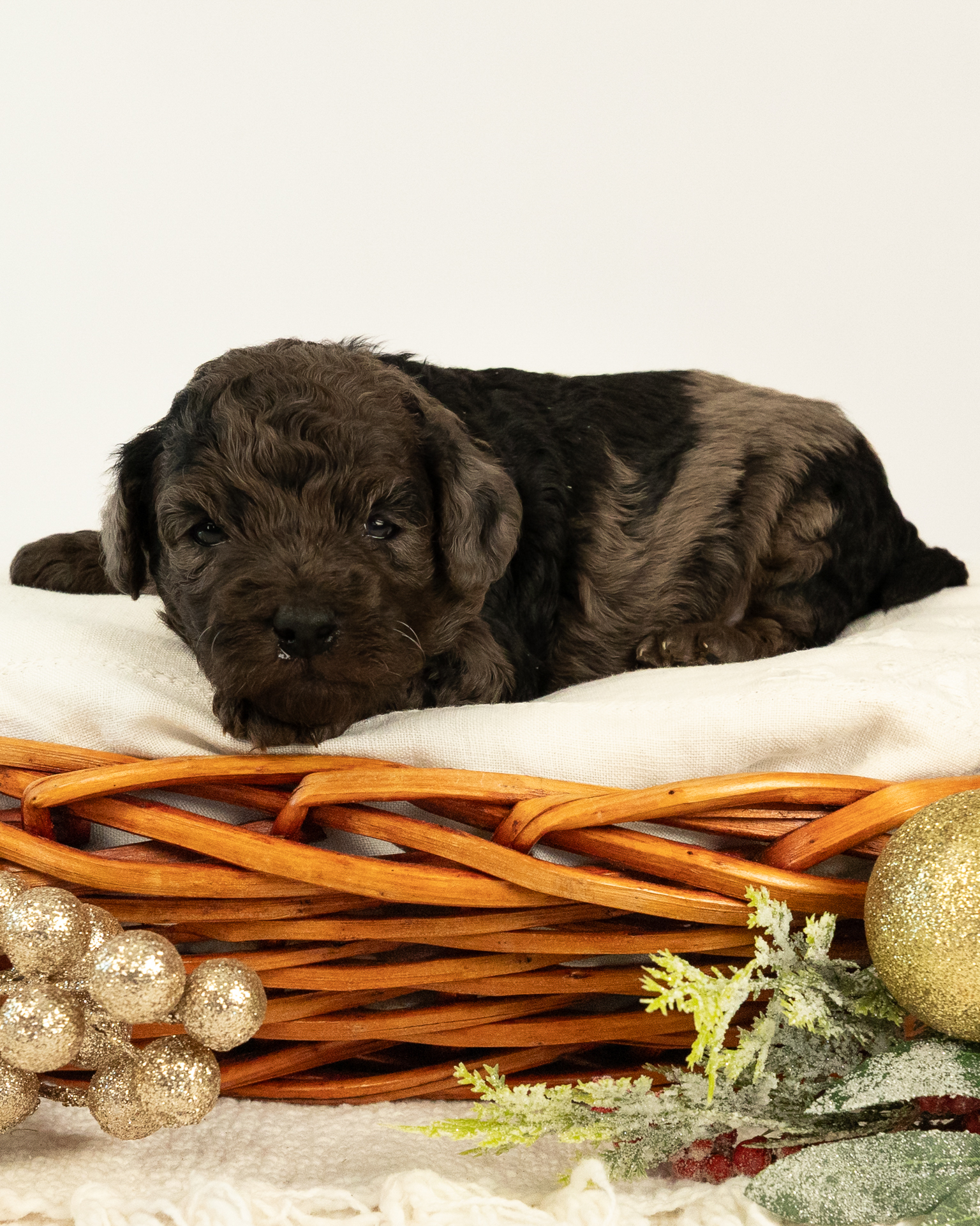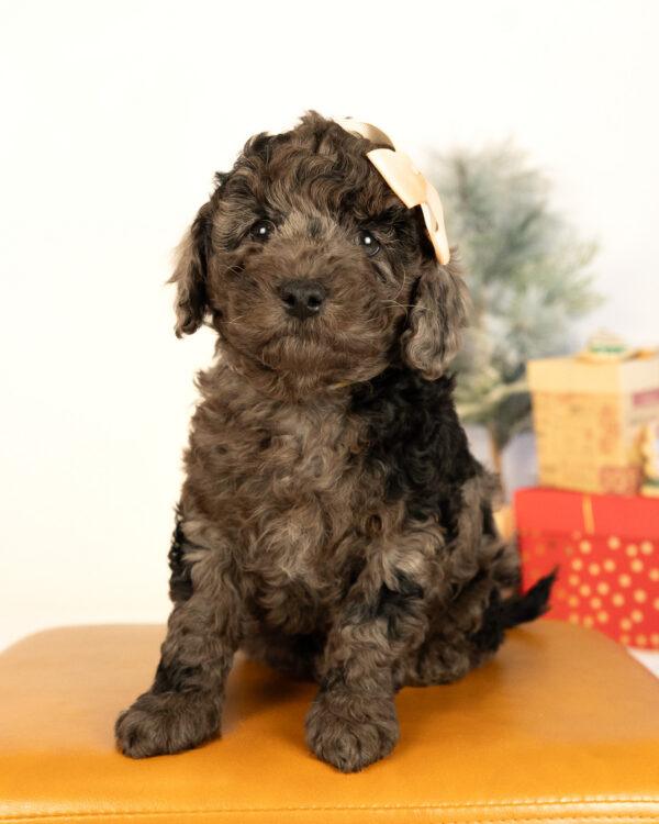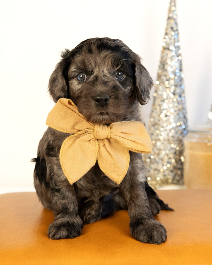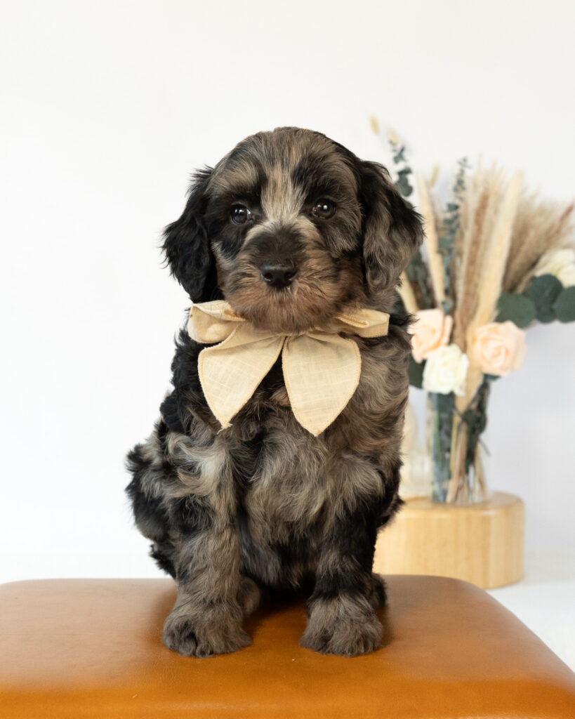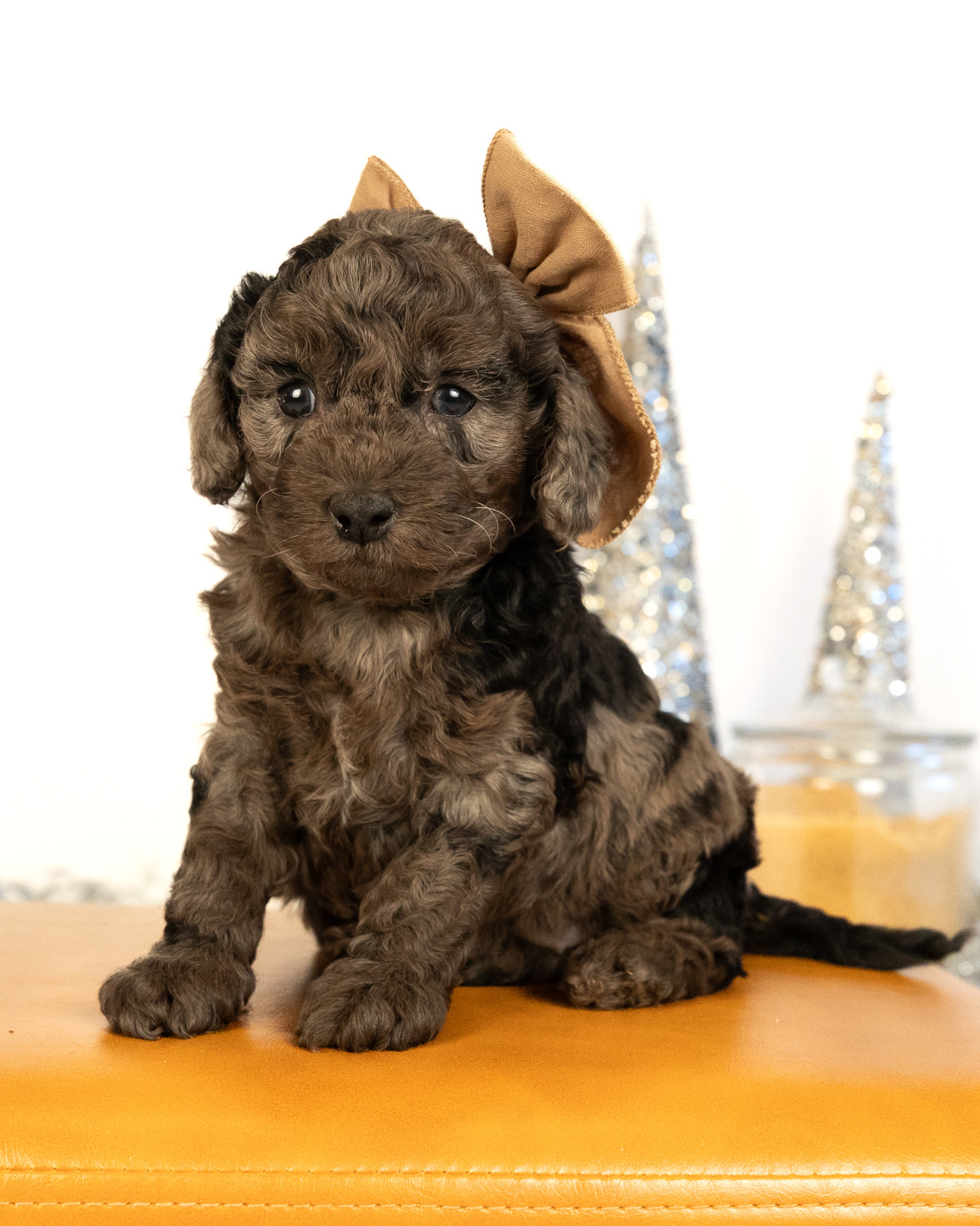Cocoa is a multigen mini Cockapoo puppy who will be ready for her fur-ever home around December 13th! Her soft, fluffy coat is hypoallergenic and non-shedding, ensuring endless snuggles without fear of allergic reactions. With a loyal and affectionate temperament, she is the perfect forever friend!