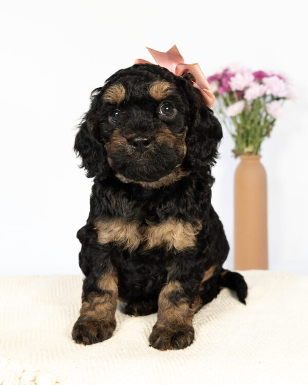 Louisa is a multigen mini Cockapoo puppy who will be ready for her fur-ever home around April 20th! Her soft, fluffy coat is hypoallergenic and non-shedding, ensuring endless snuggles without fear of allergic reactions. With a loyal and affectionate temperament, she is the perfect forever friend!
