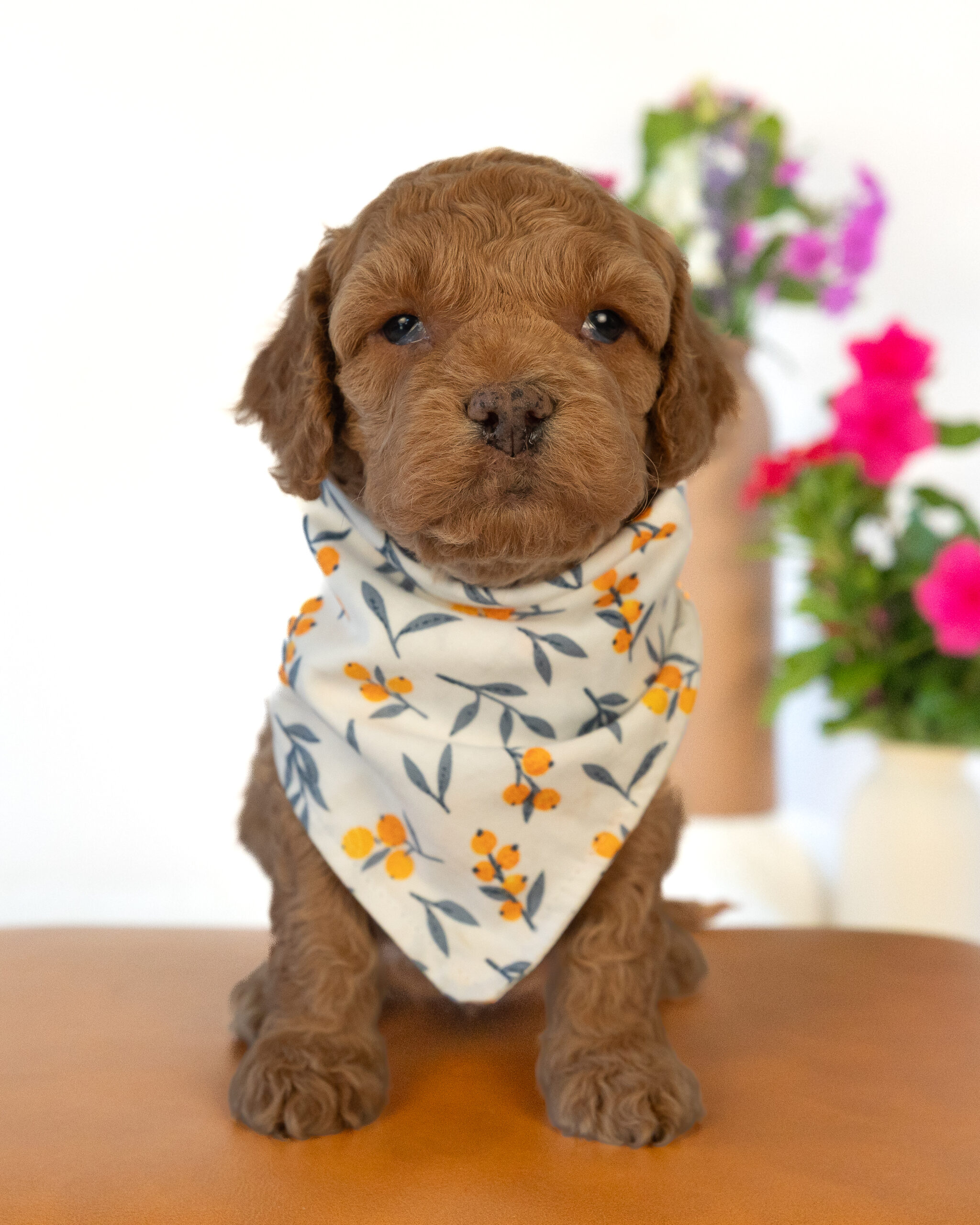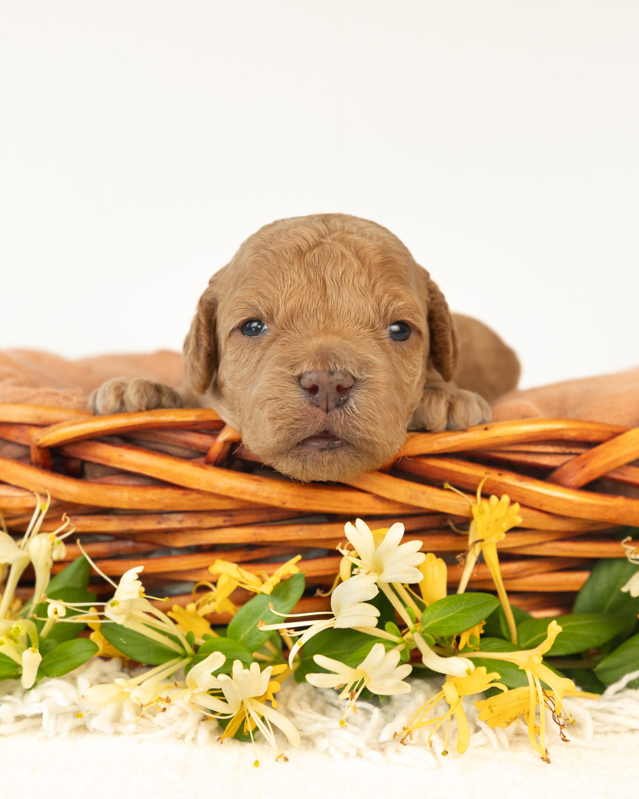 Nectar is a multigen mini Cockapoo puppy who will be ready for his fur-ever home around September 22nd! His soft, fluffy coat is hypoallergenic and non-shedding, ensuring endless snuggles without fear of allergic reactions. With a loyal and affectionate temperament, he is the perfect forever friend!