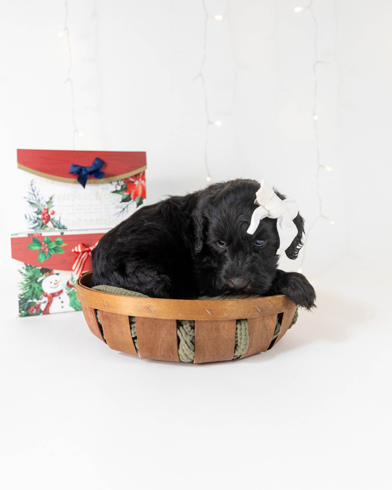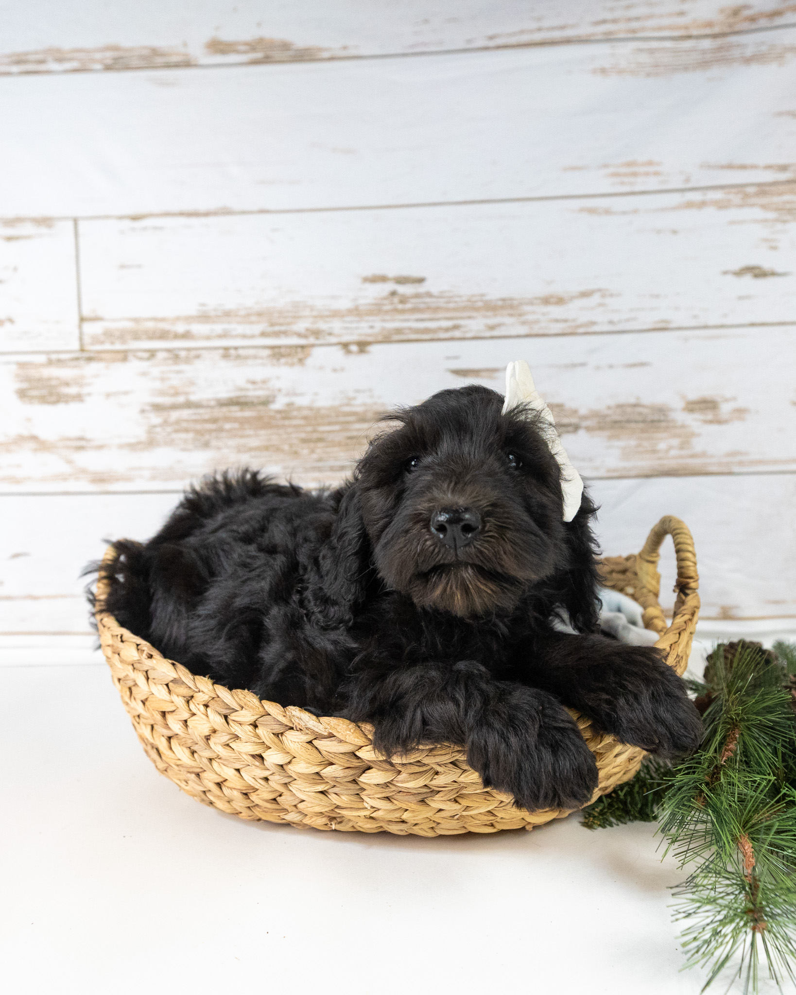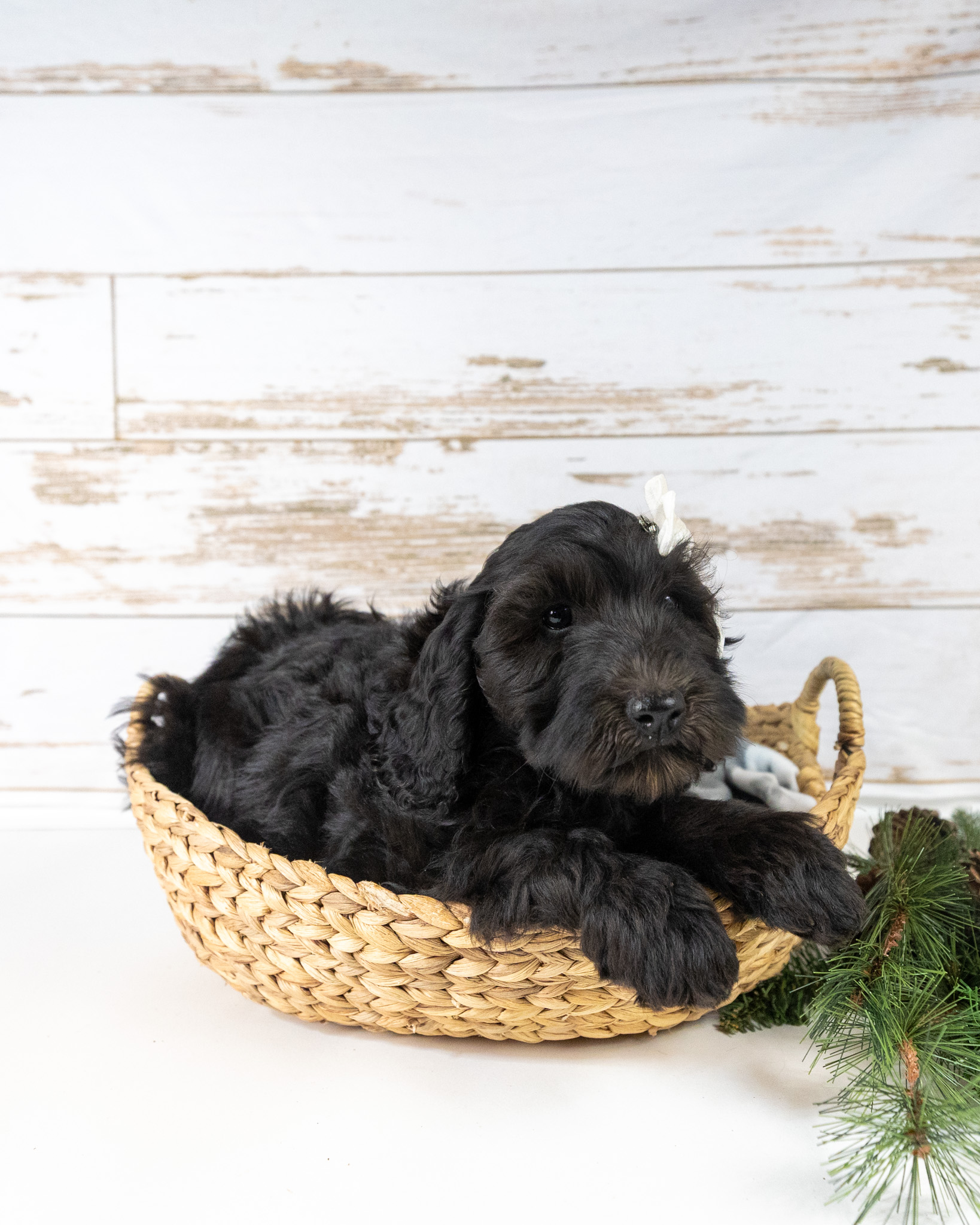 Igloo is a black male standard Goldendoodle puppy who will be ready for his  forever home around January 7th.