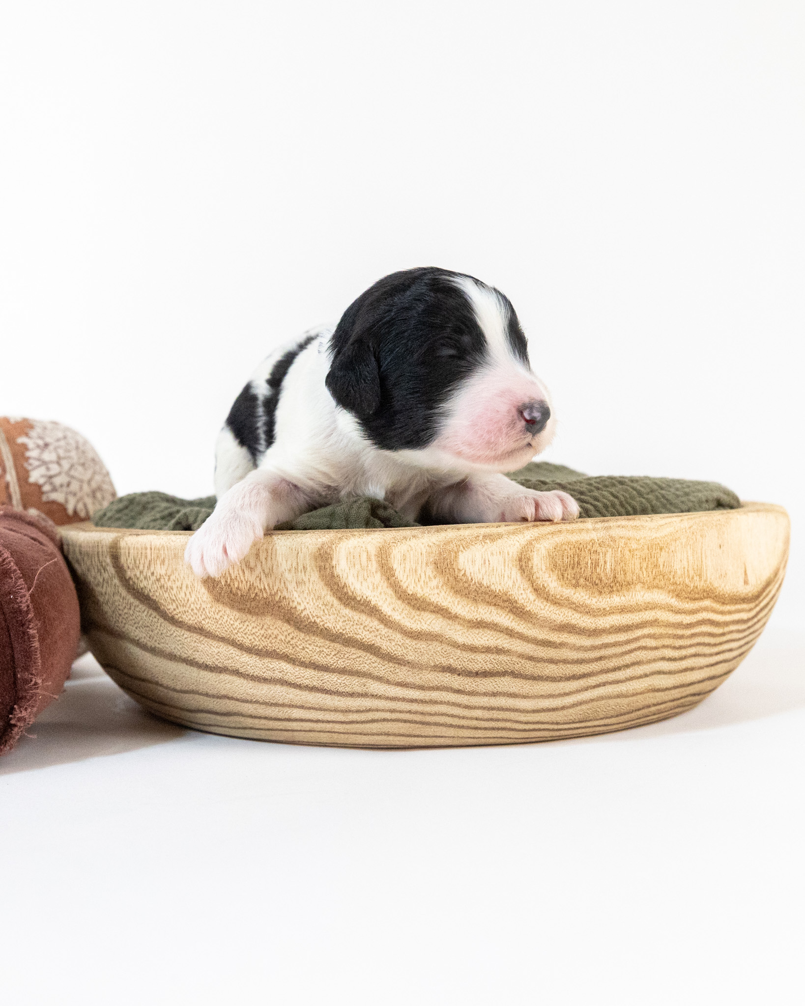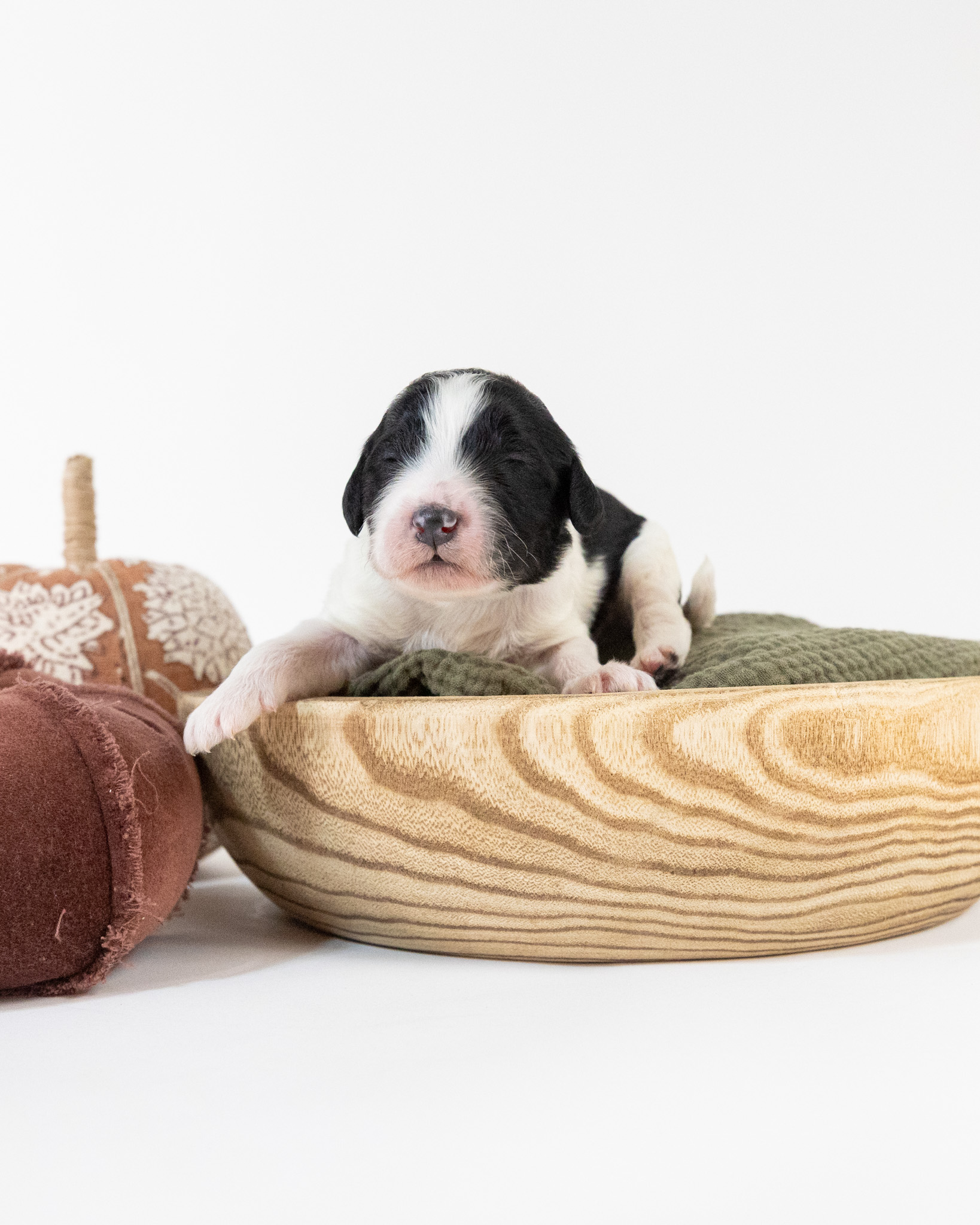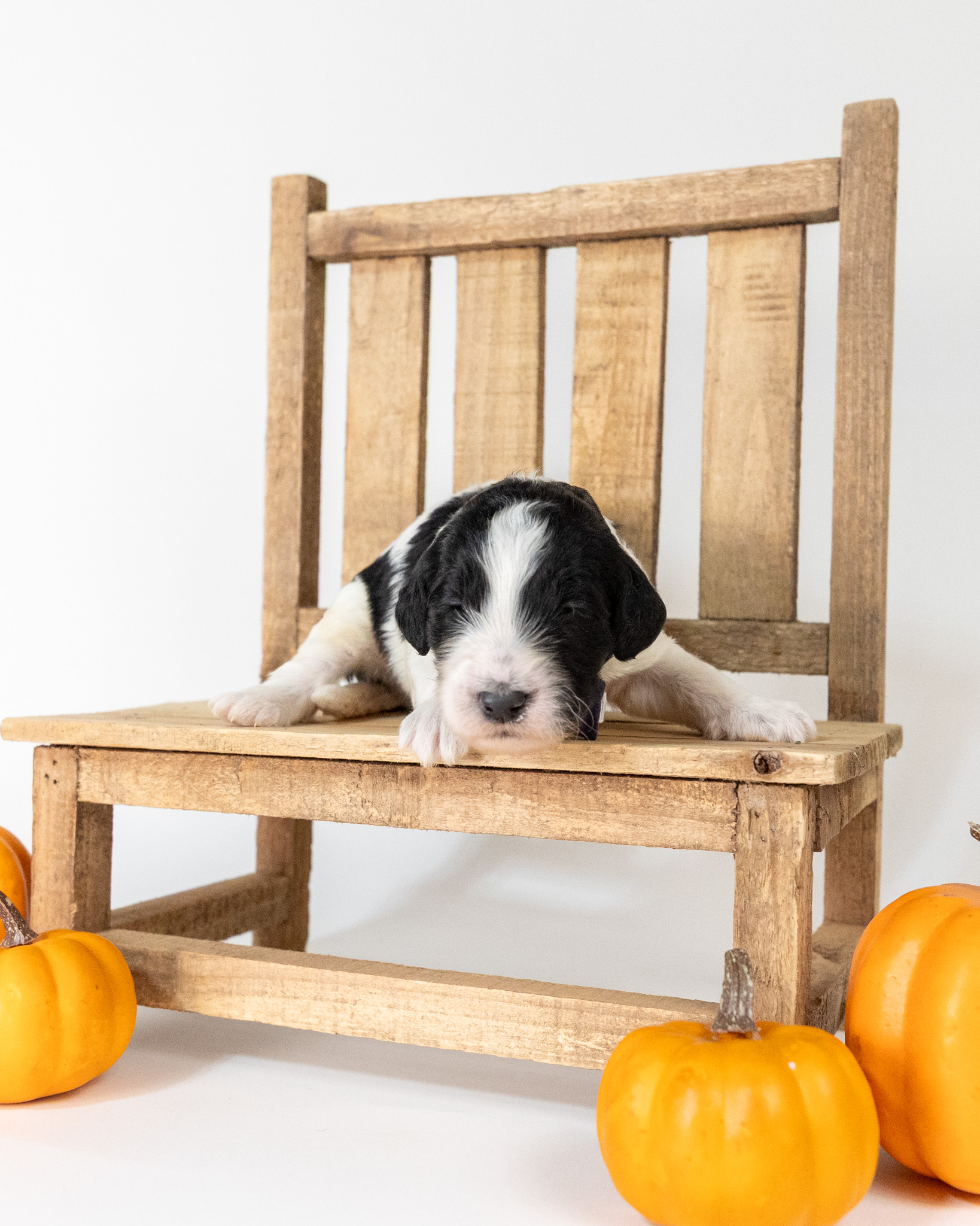 Santa Paws is a black and white parti multigen Goldendoodle puppy who will be ready for his fur-ever home around December 16th! His soft, fluffy coat is hypoallergenic and non-shedding, ensuring endless snuggles without fear of allergic reactions. With a loyal and affectionate temperament, he is the perfect forever friend!
