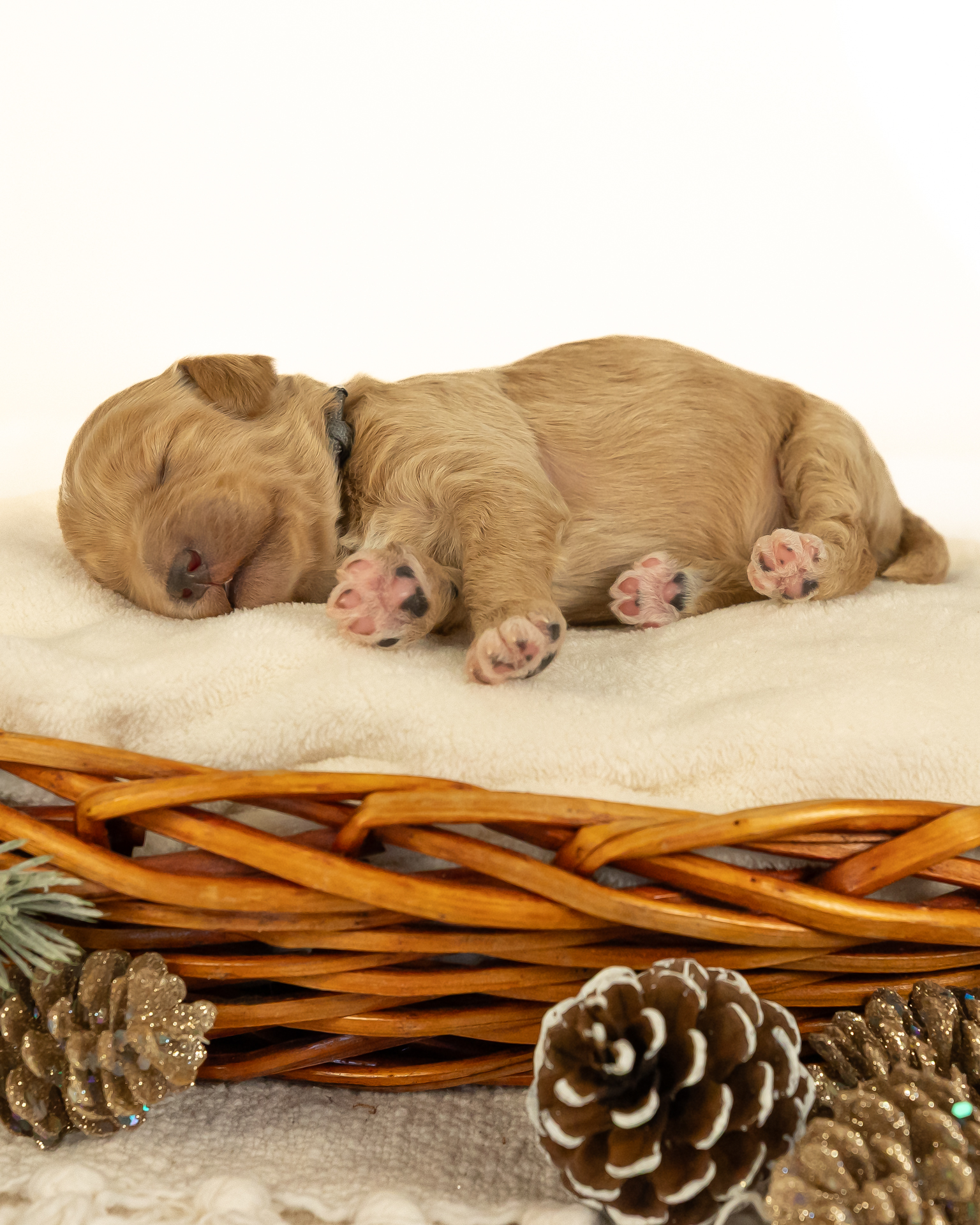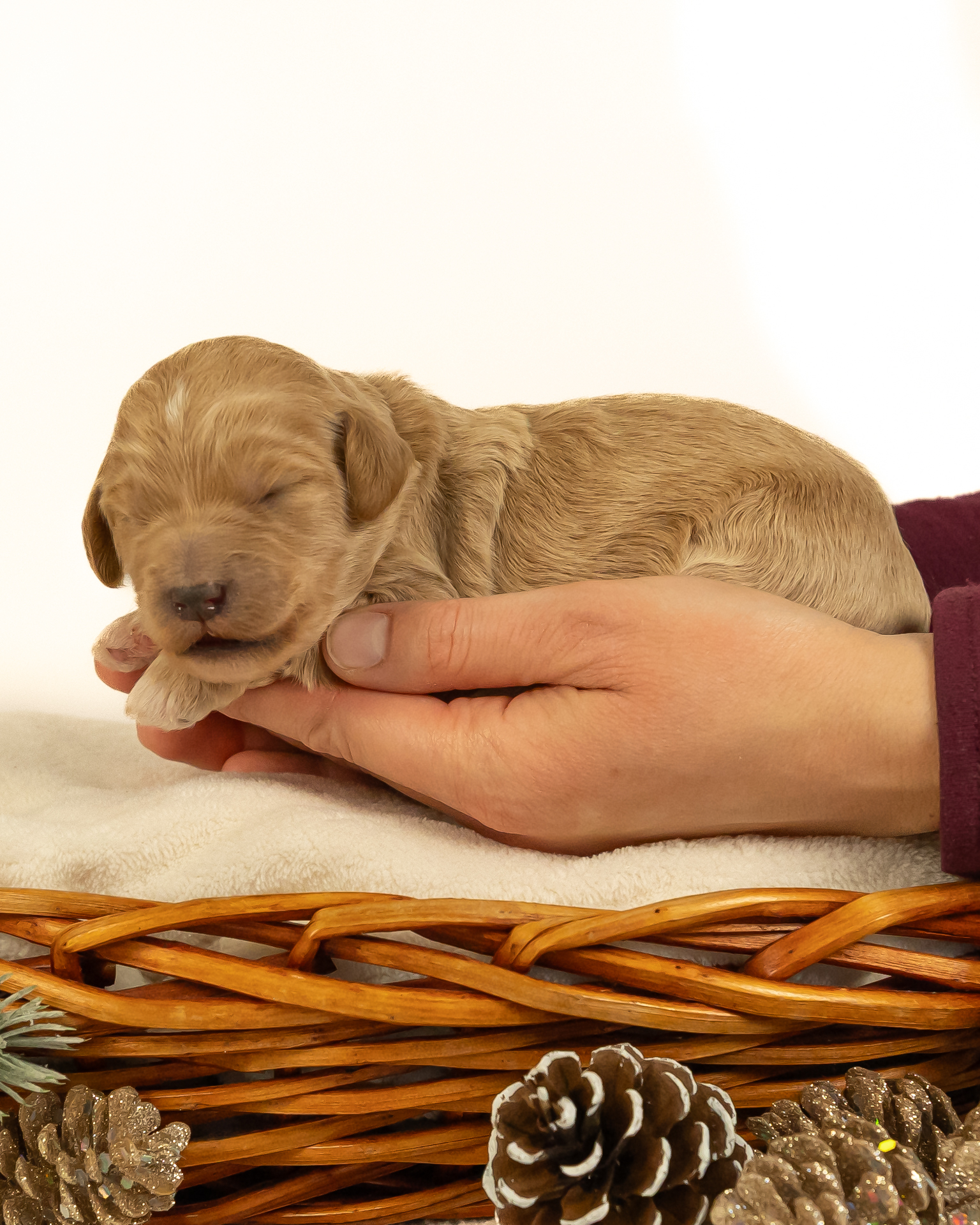 Shakespeare is a multigen medium Goldendoodle puppy who will be ready for his fur-ever home around December 30th! His soft, fluffy coat is hypoallergenic and non-shedding, ensuring endless snuggles without fear of allergic reactions. With a loyal and affectionate temperament, he is the perfect forever friend!