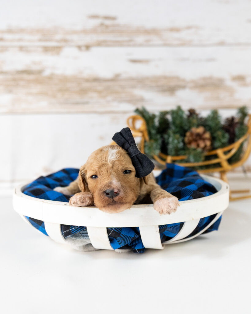 Ander is a multigen medium Goldendoodle puppy who will be ready for his fur-ever home around February 2nd! His soft, fluffy coat is hypoallergenic and non-shedding, ensuring endless snuggles without fear of allergic reactions. With a loyal and affectionate temperament, he is the perfect forever friend!