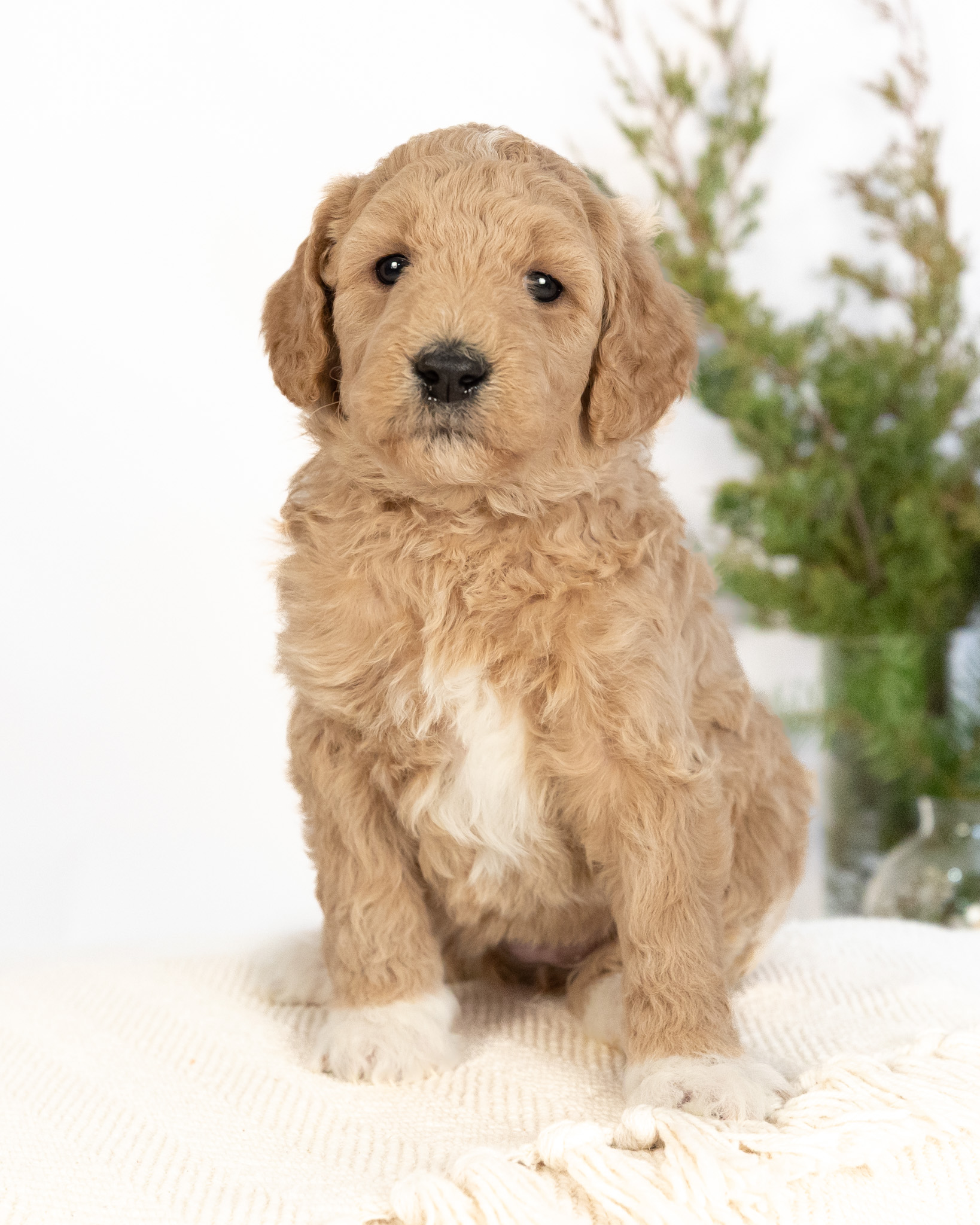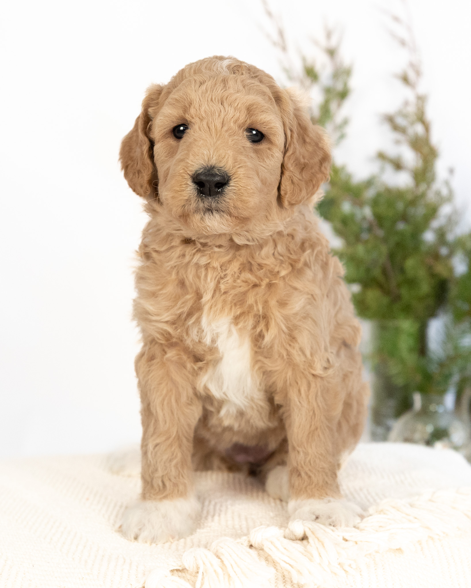 Astrid is a multigen medium Goldendoodle puppy who will be ready for her fur-ever home around February 9th! Her soft, fluffy coat is hypoallergenic and non-shedding, ensuring endless snuggles without fear of allergic reactions. With a loyal and affectionate temperament, she is the perfect forever friend!