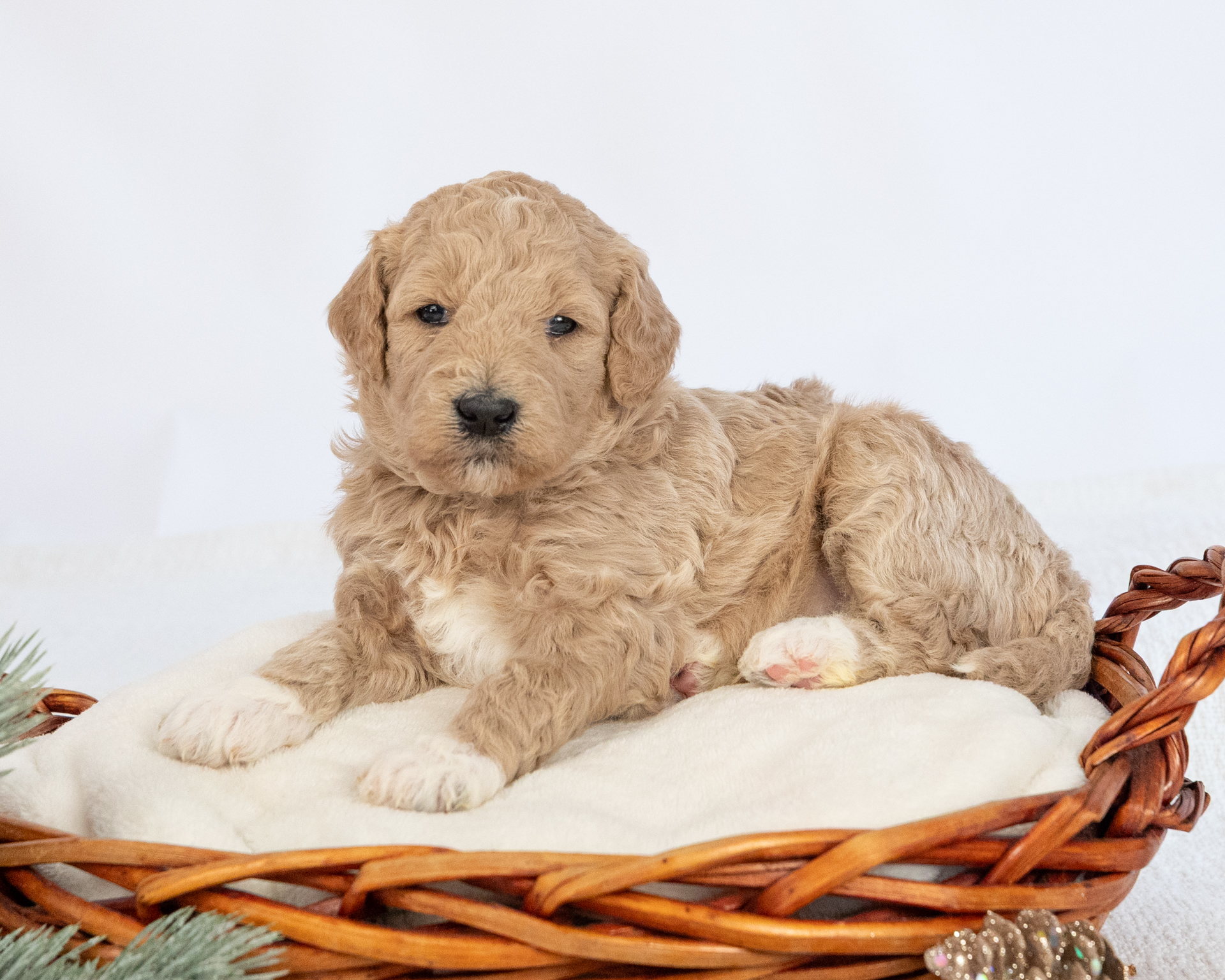 Linus is a medium gold Goldendoodle puppy who will be ready for his forever home around December 1st. He is expected to weigh around 40-45lbs when grown.
