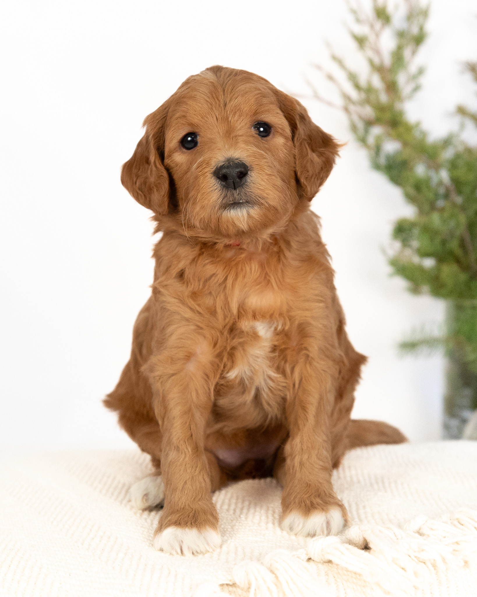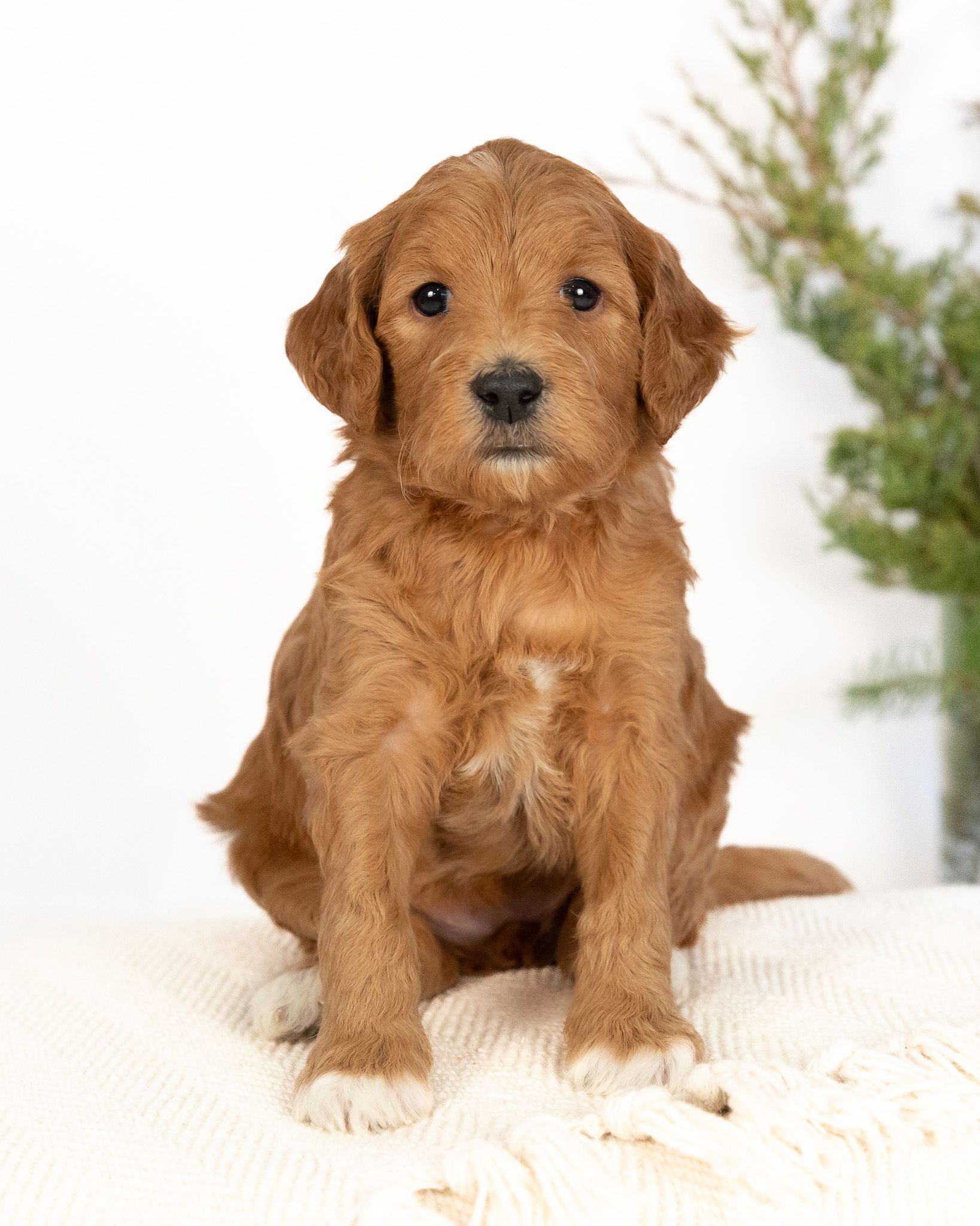 Snowflake is a red male standard Goldendoodle puppy who will be ready for his forever home around February 12th.