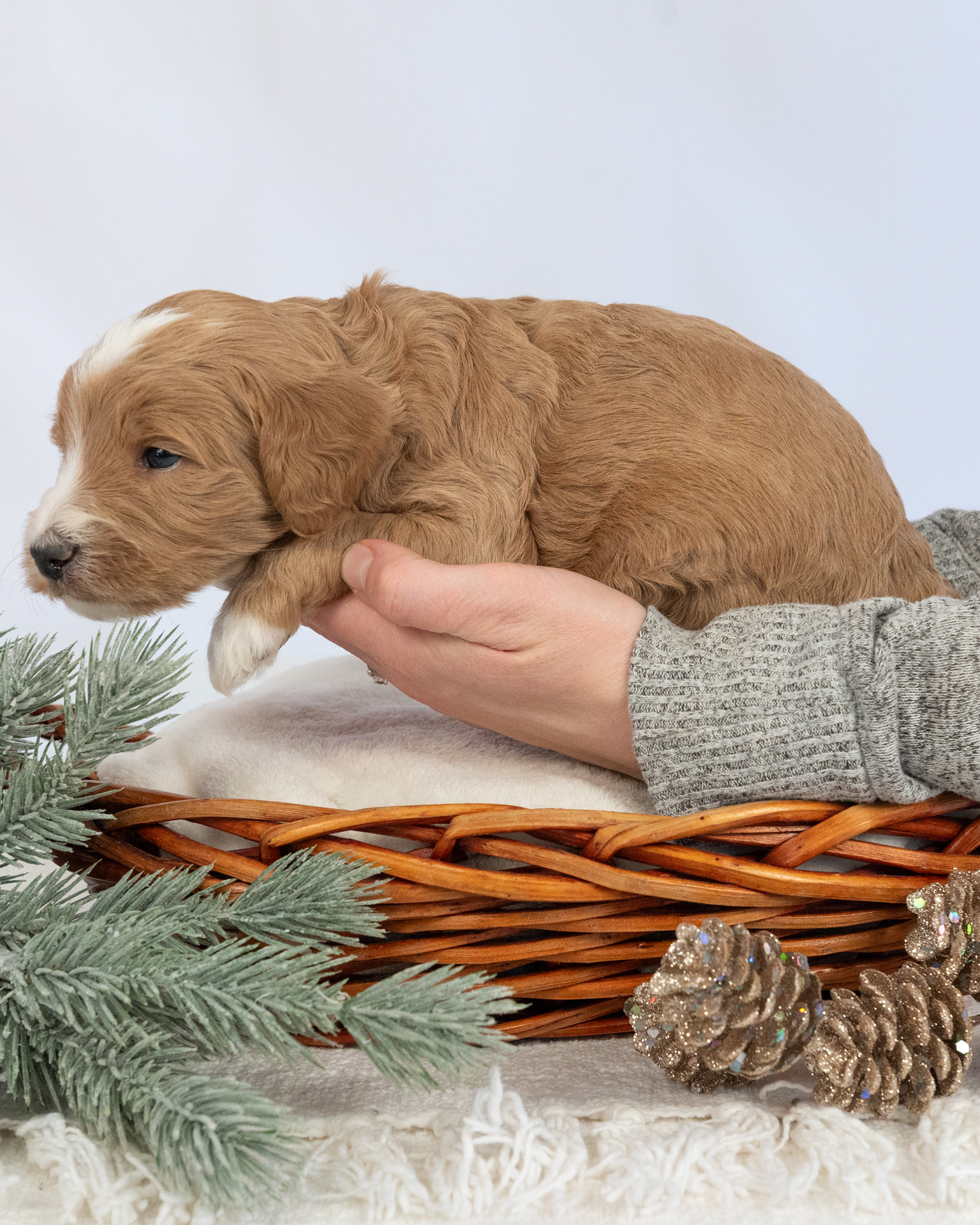 Noor is a multigen medium Goldendoodle puppy who will be ready for his fur-ever home around February 2nd! His soft, fluffy coat is hypoallergenic and non-shedding, ensuring endless snuggles without fear of allergic reactions. With a loyal and affectionate temperament, he is the perfect forever friend!