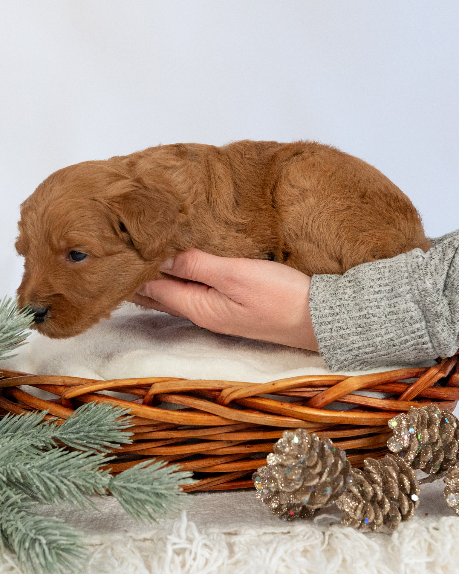 Vinter is a multigen medium Goldendoodle puppy who will be ready for his fur-ever home around February 2nd! His soft, fluffy coat is hypoallergenic and non-shedding, ensuring endless snuggles without fear of allergic reactions. With a loyal and affectionate temperament, he is the perfect forever friend!