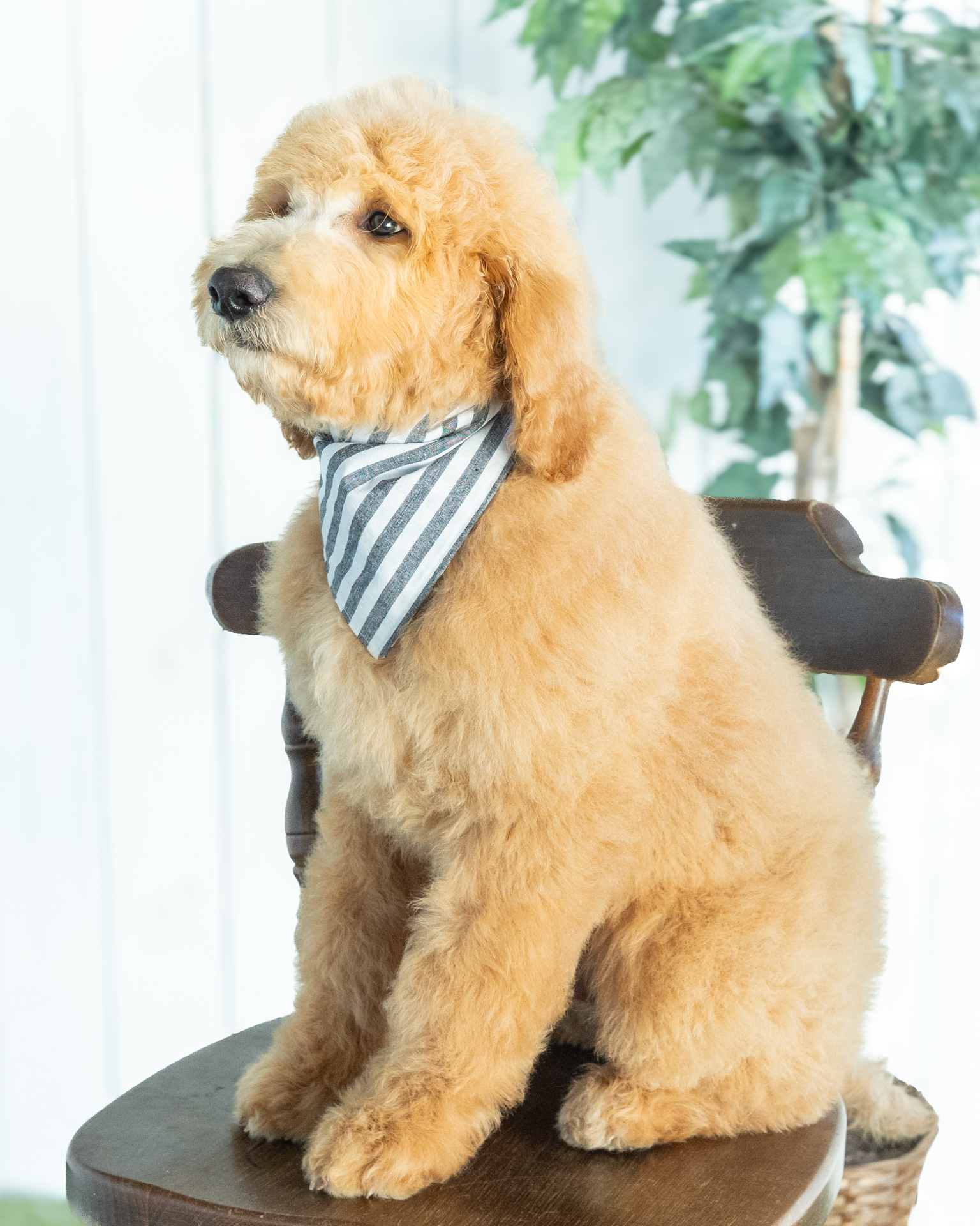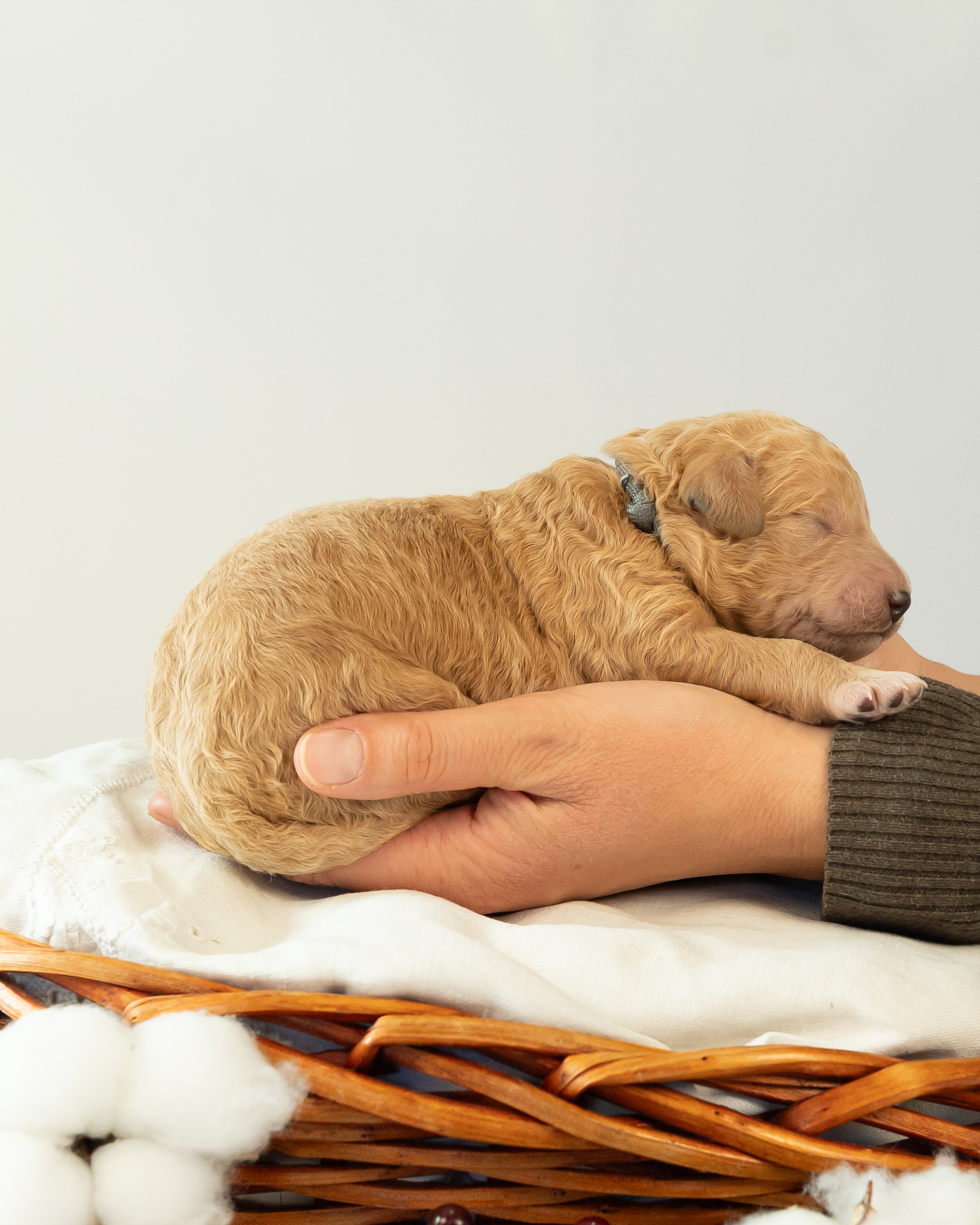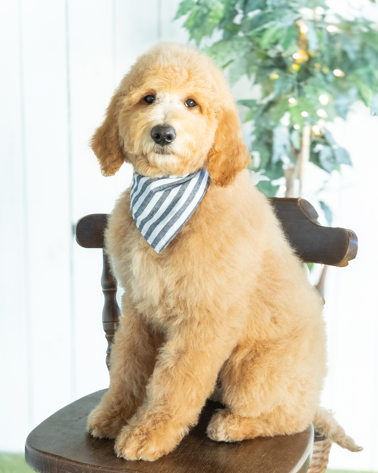 Edmond (Edmon) is a multigen standard Goldendoodle puppy who will be ready for his fur-ever home around December 9th! His soft, fluffy coat is hypoallergenic and non-shedding, ensuring endless snuggles without fear of allergic reactions. With a loyal and affectionate temperament, he is the perfect forever friend!