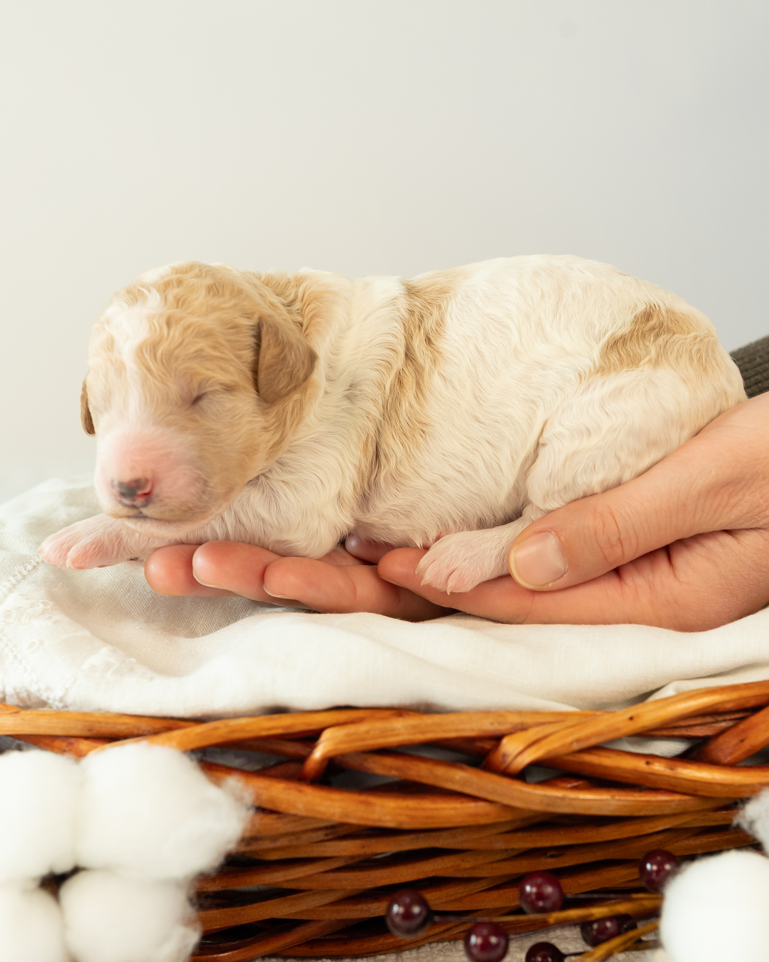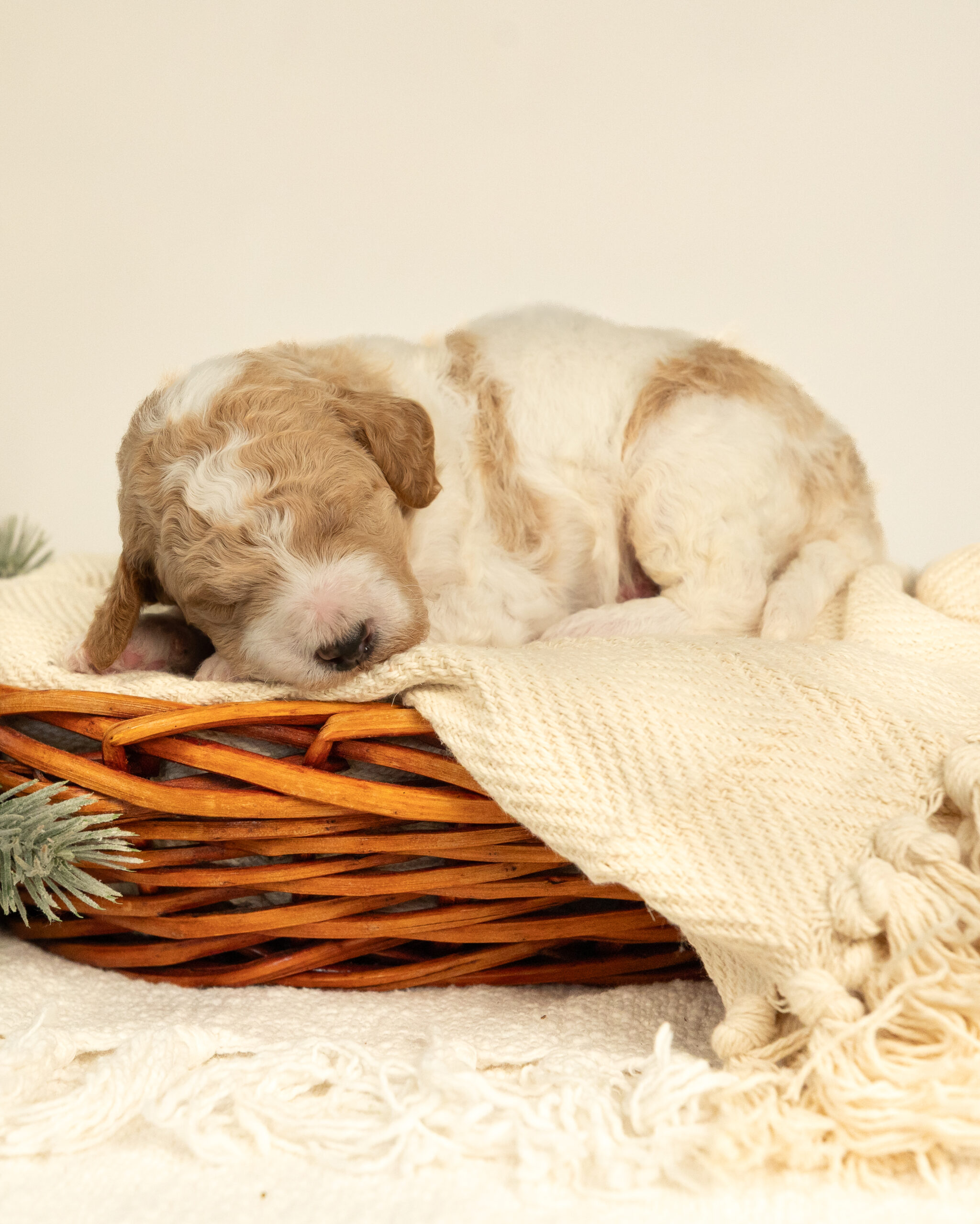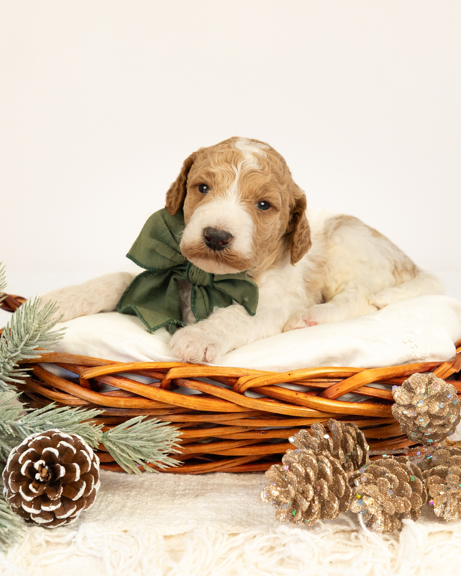 Louis (LOO-ee) is a multigen standard Goldendoodle puppy who will be ready for his fur-ever home around December 9th! His soft, fluffy coat is hypoallergenic and non-shedding, ensuring endless snuggles without fear of allergic reactions. With a loyal and affectionate temperament, he is the perfect forever friend!