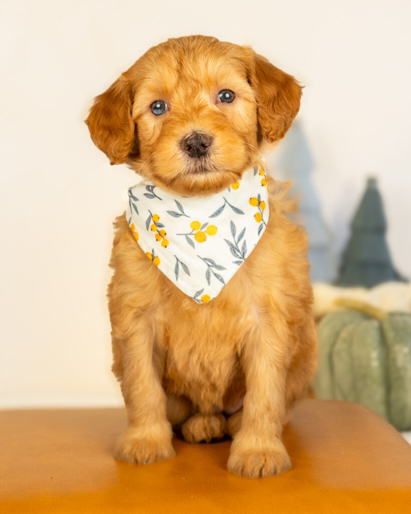 Valentine (vah-lahn-teen) is a multigen standard Goldendoodle puppy who will be ready for her fur-ever home around December 9th! Her soft, fluffy coat is hypoallergenic and non-shedding, ensuring endless snuggles without fear of allergic reactions. With a loyal and affectionate temperament, she is the perfect forever friend!