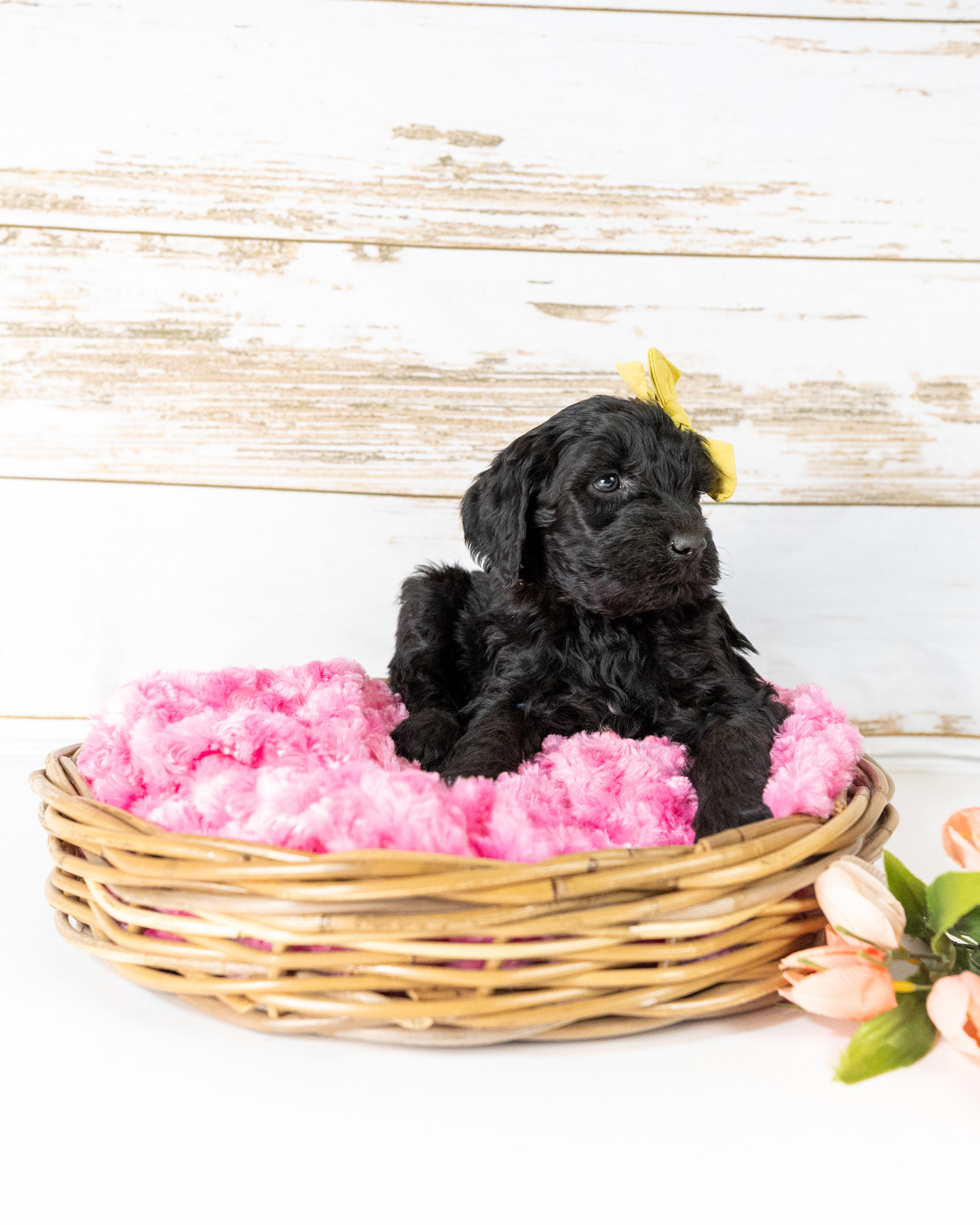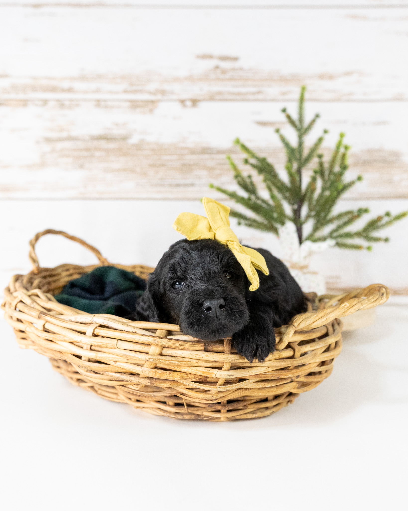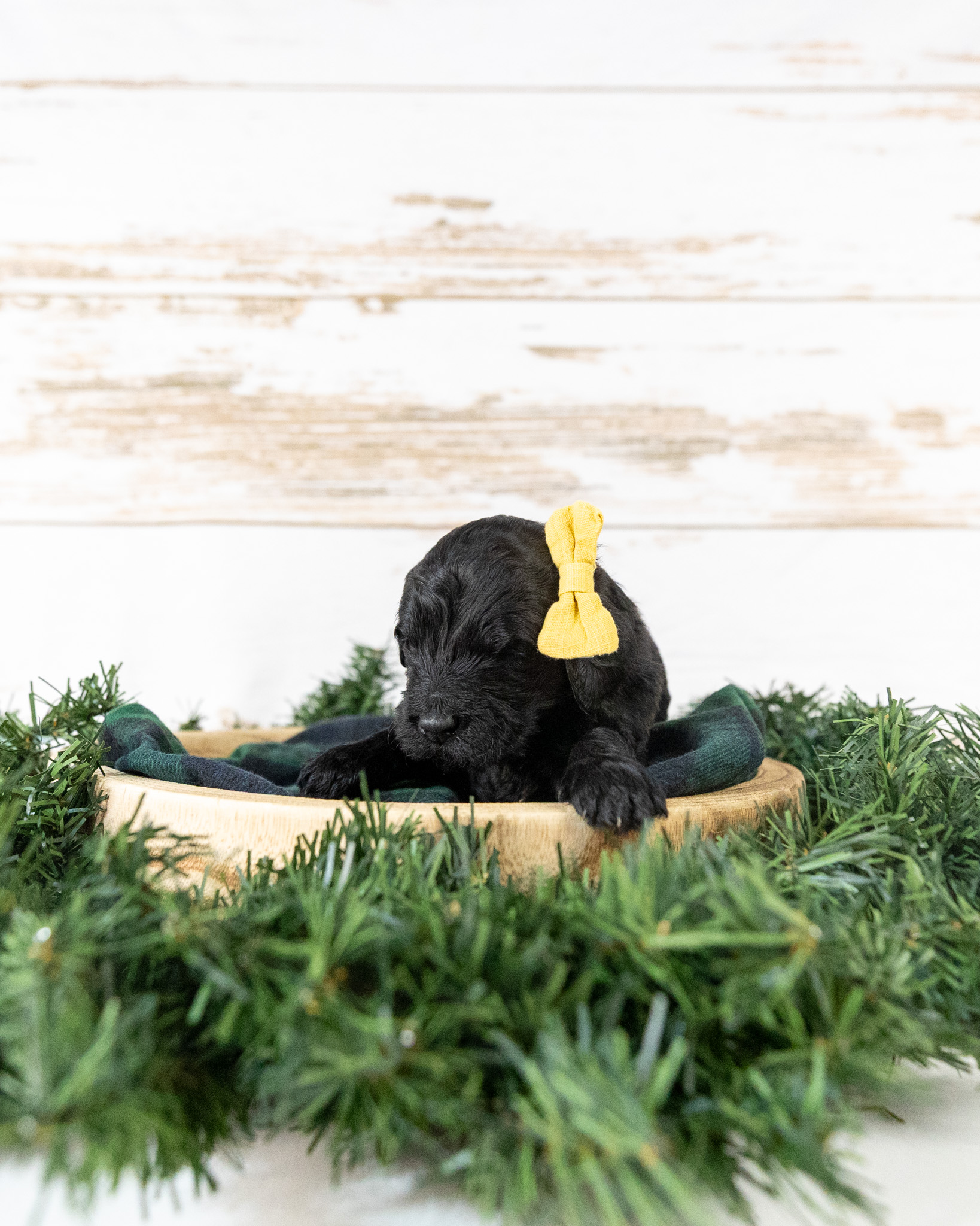Godiva is a standard multigen Goldendoodle puppy who will be ready for her forever home February 4th! Her soft, fluffy coat is hypoallergenic and non-shedding, ensuring endless snuggles without fear of allergic reactions.