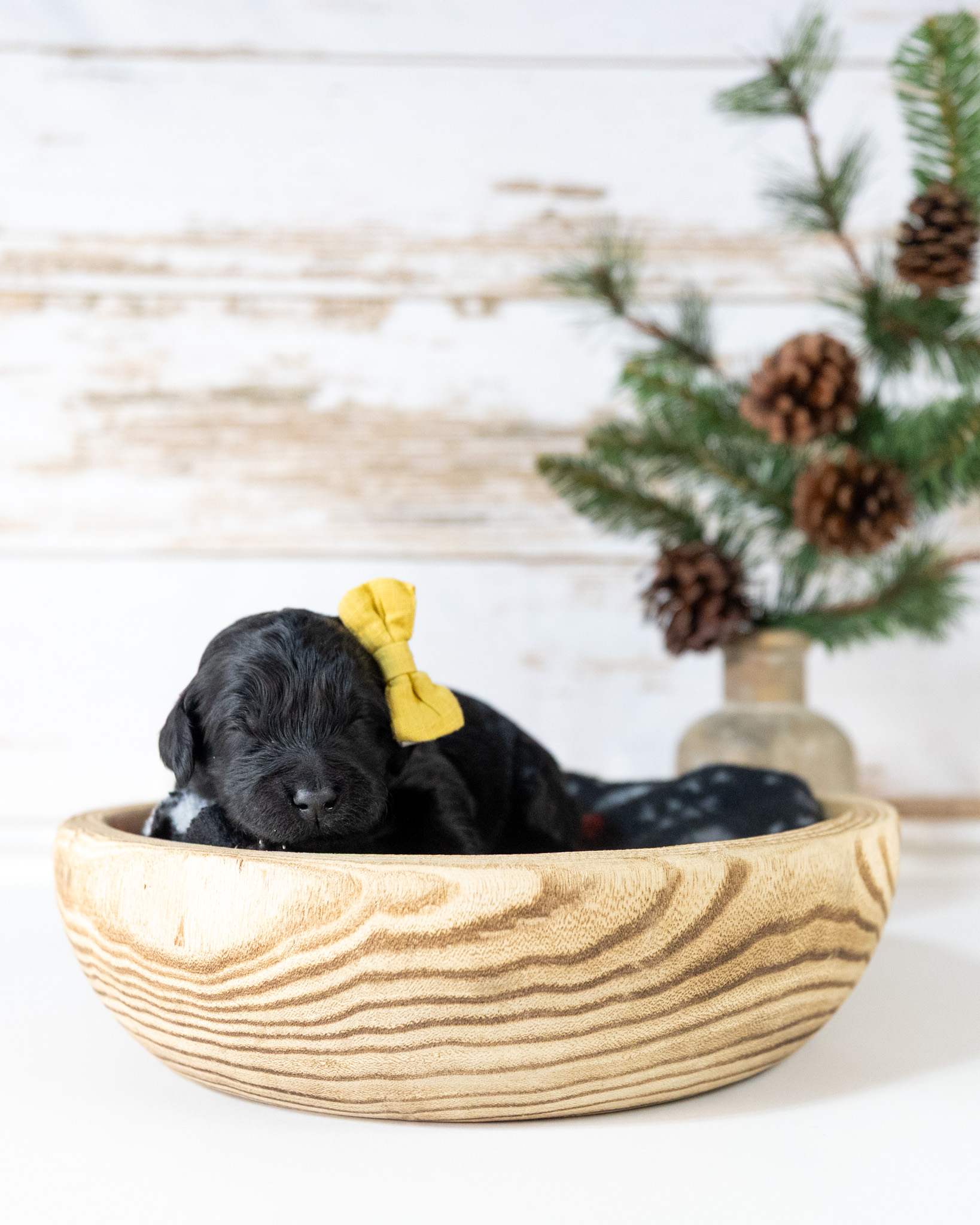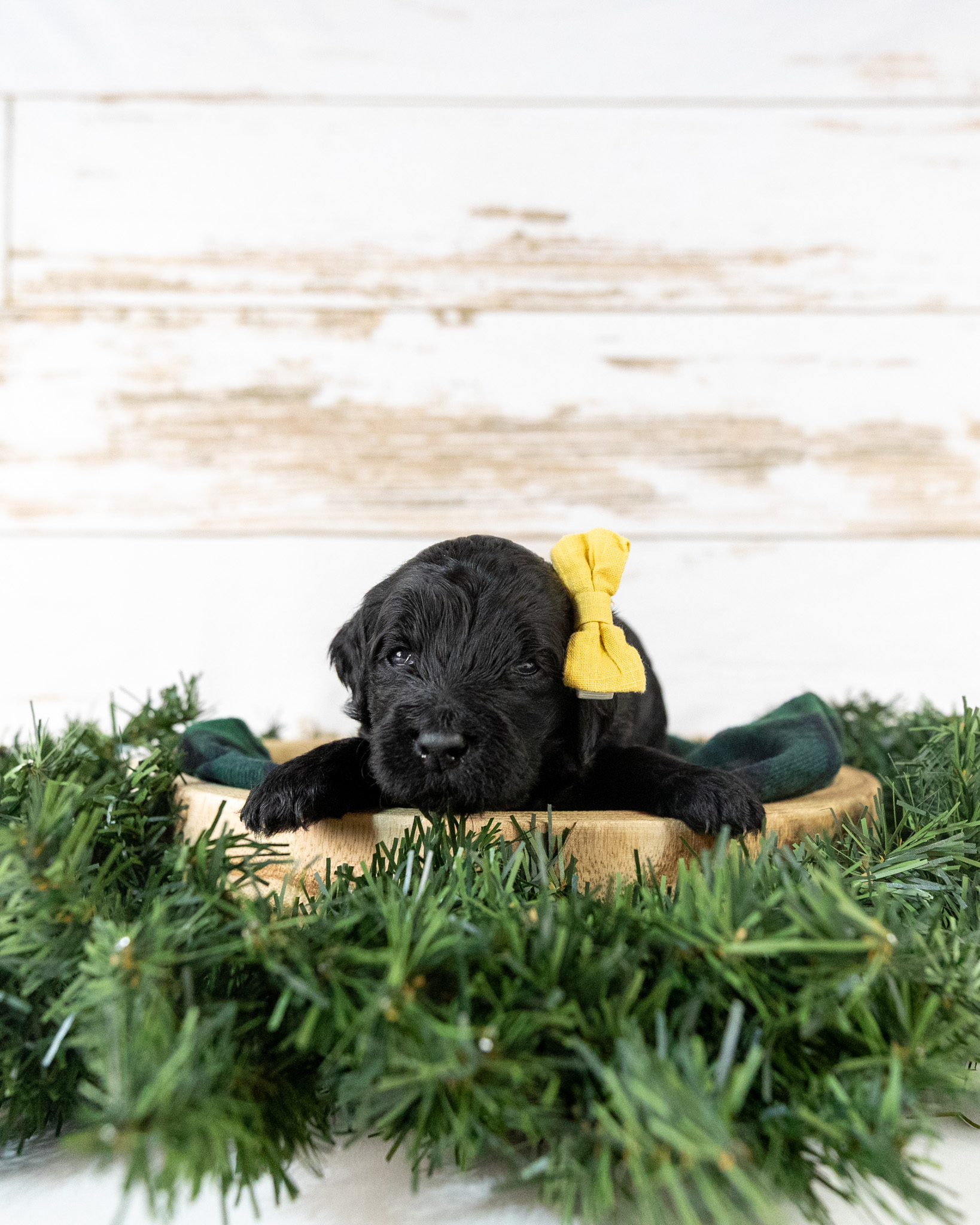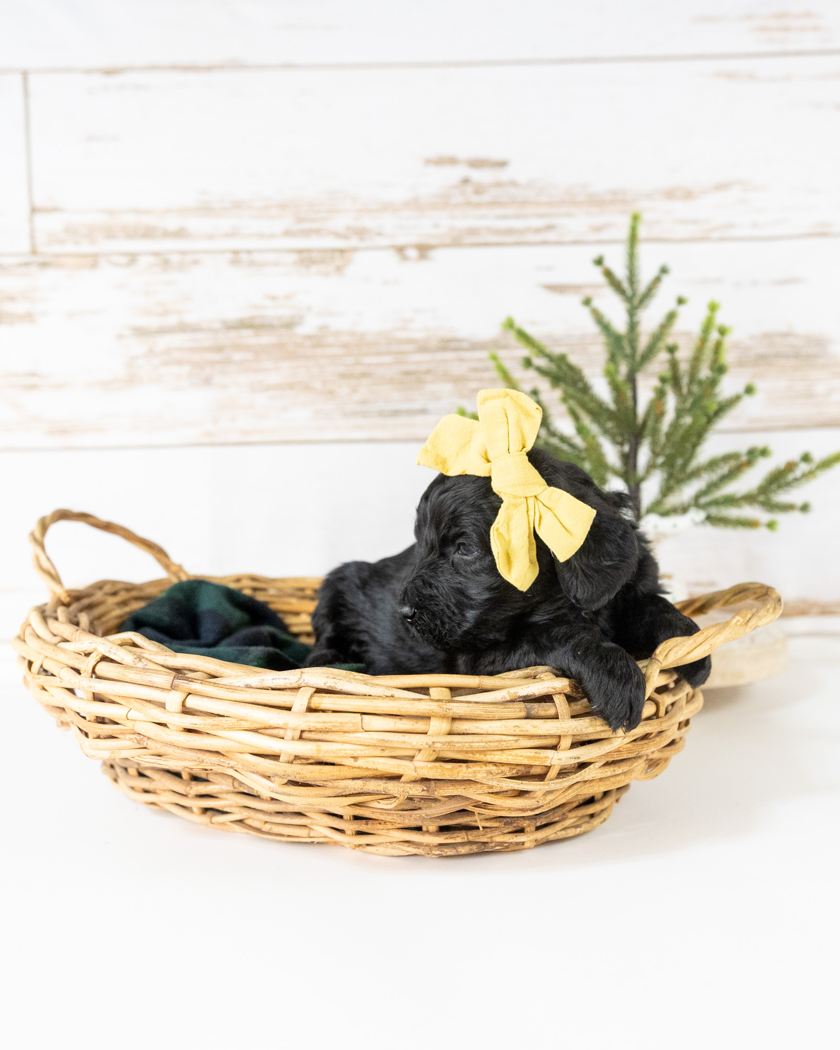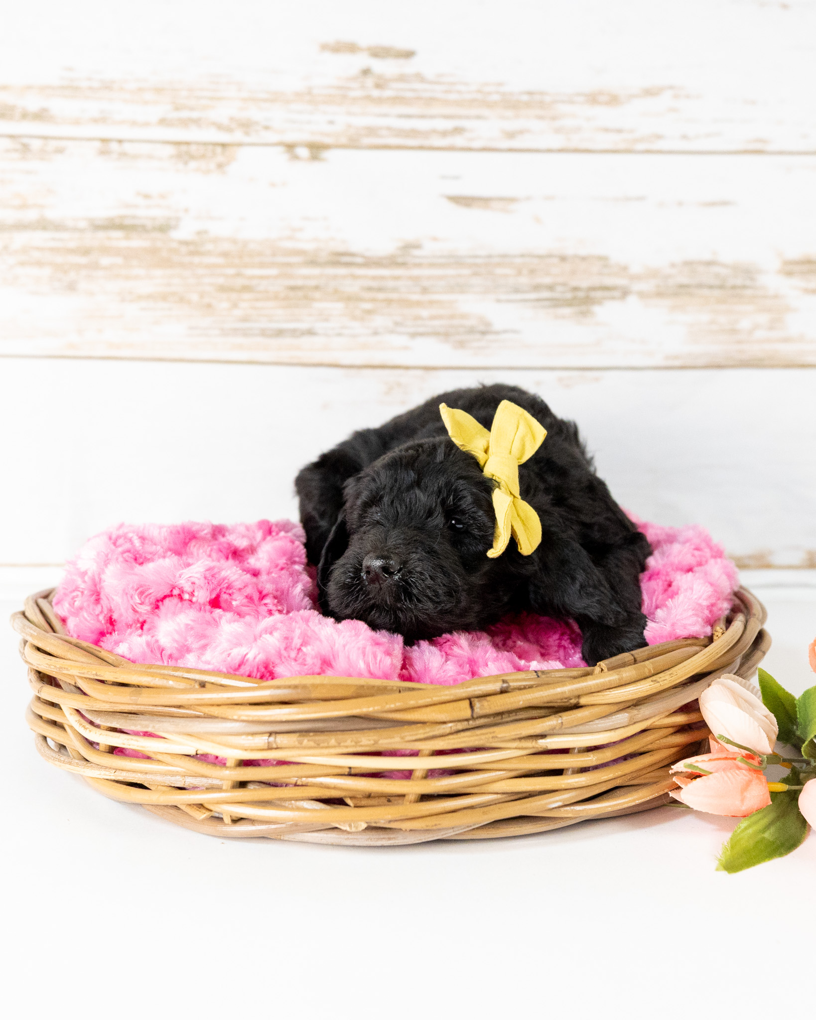 Godiva is a standard multigen Goldendoodle puppy who will be ready for her forever home February 4th! Her soft, fluffy coat is hypoallergenic and non-shedding, ensuring endless snuggles without fear of allergic reactions.
