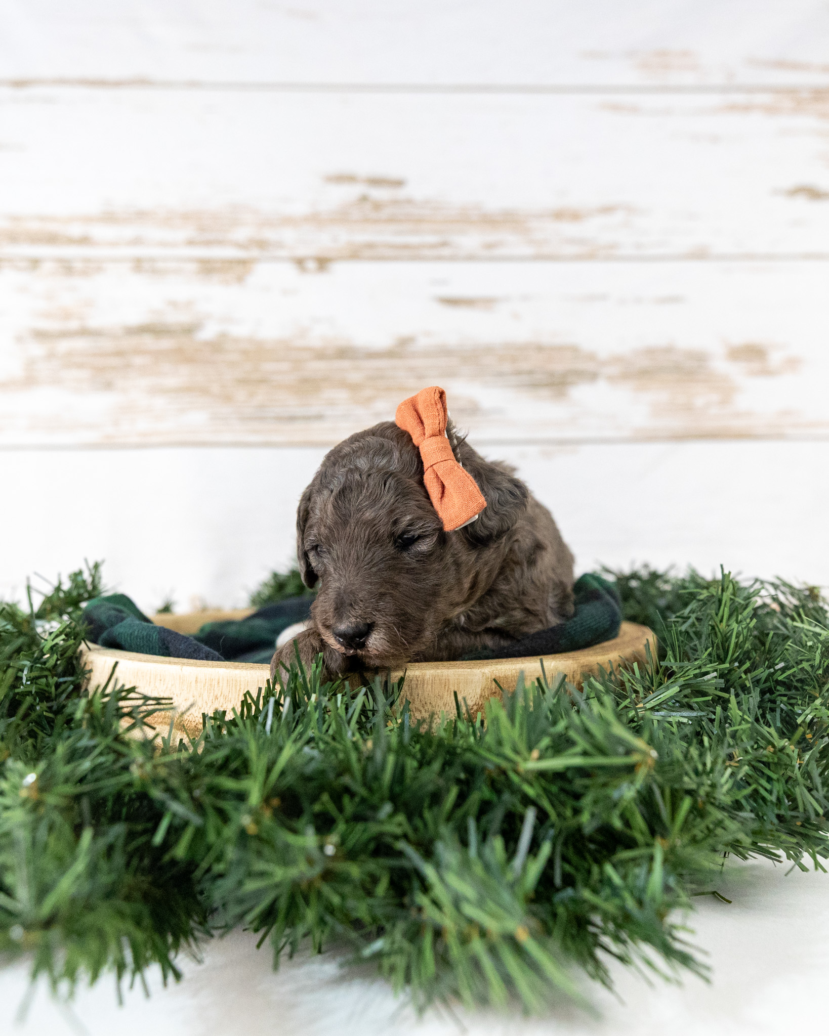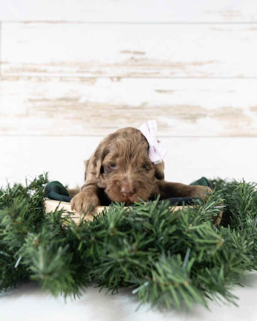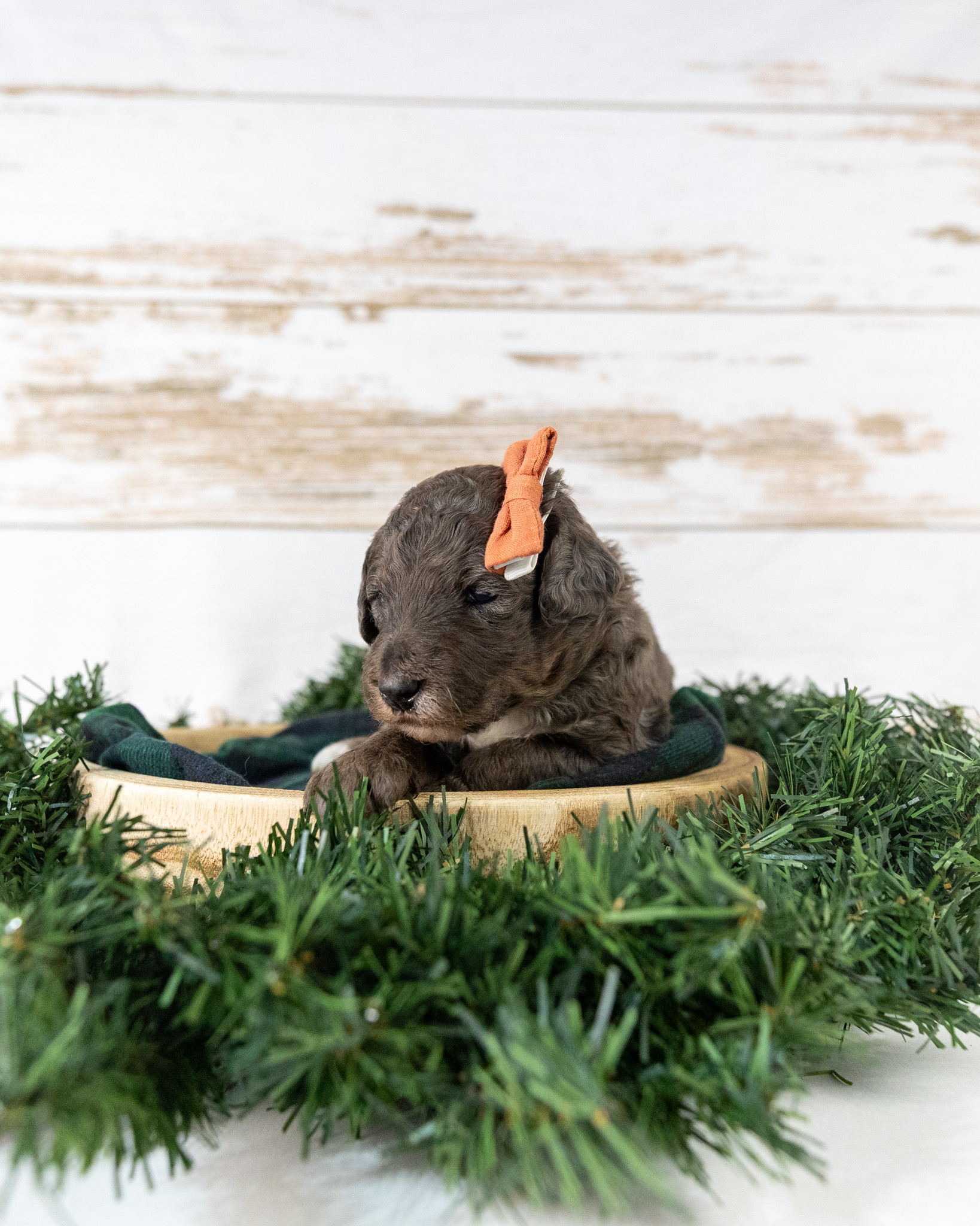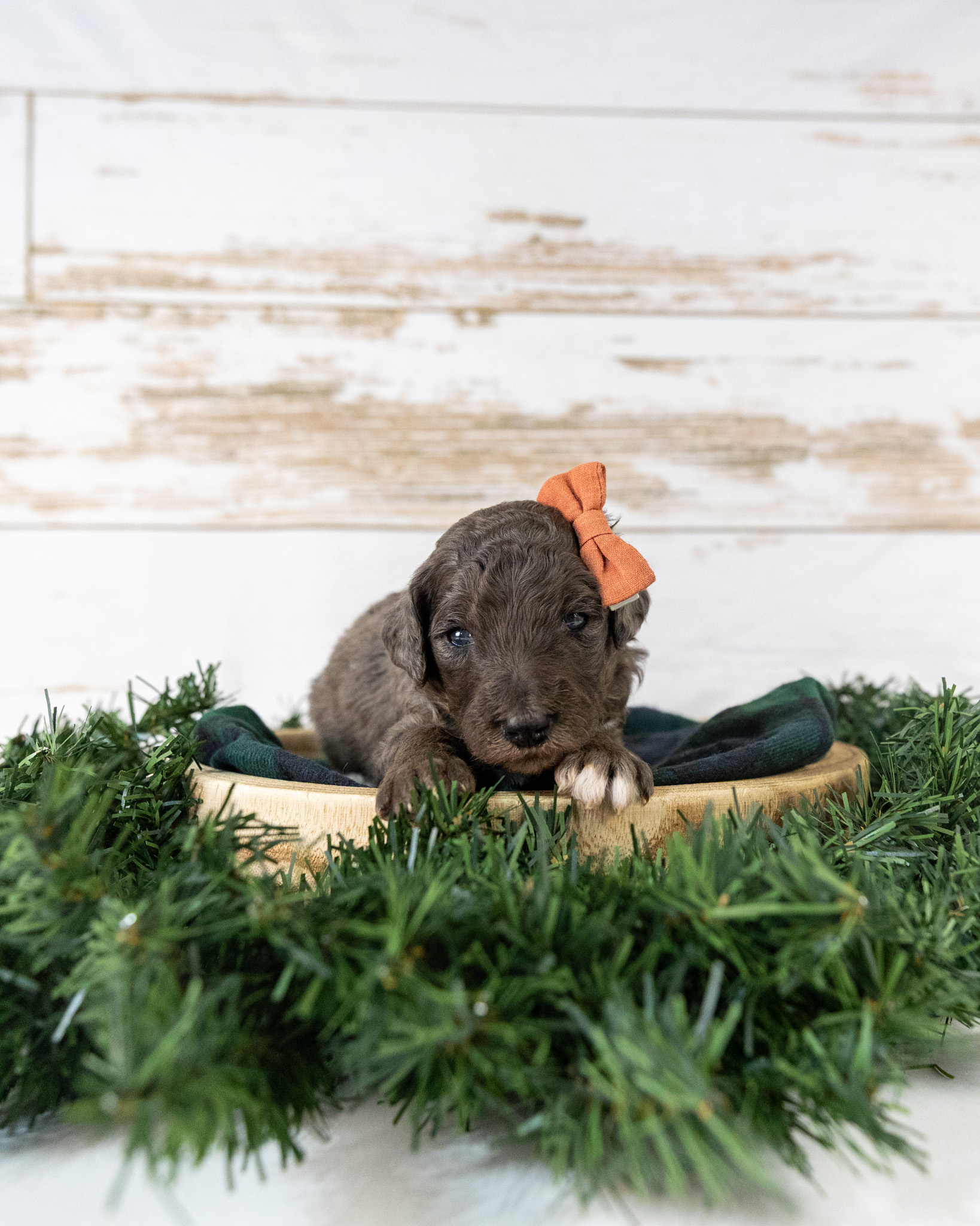 Tundra is a standard multigen Goldendoodle puppy who will be ready for his forever home February 4th! His soft, fluffy coat is hypoallergenic and non-shedding, ensuring endless snuggles without fear of allergic reactions.