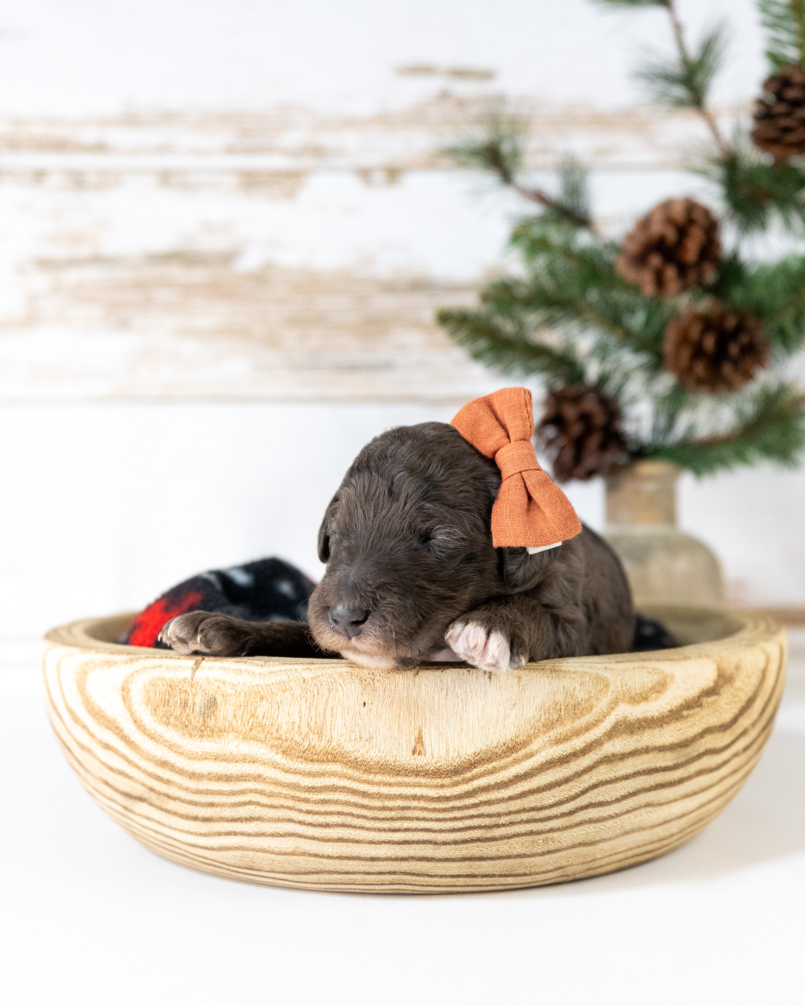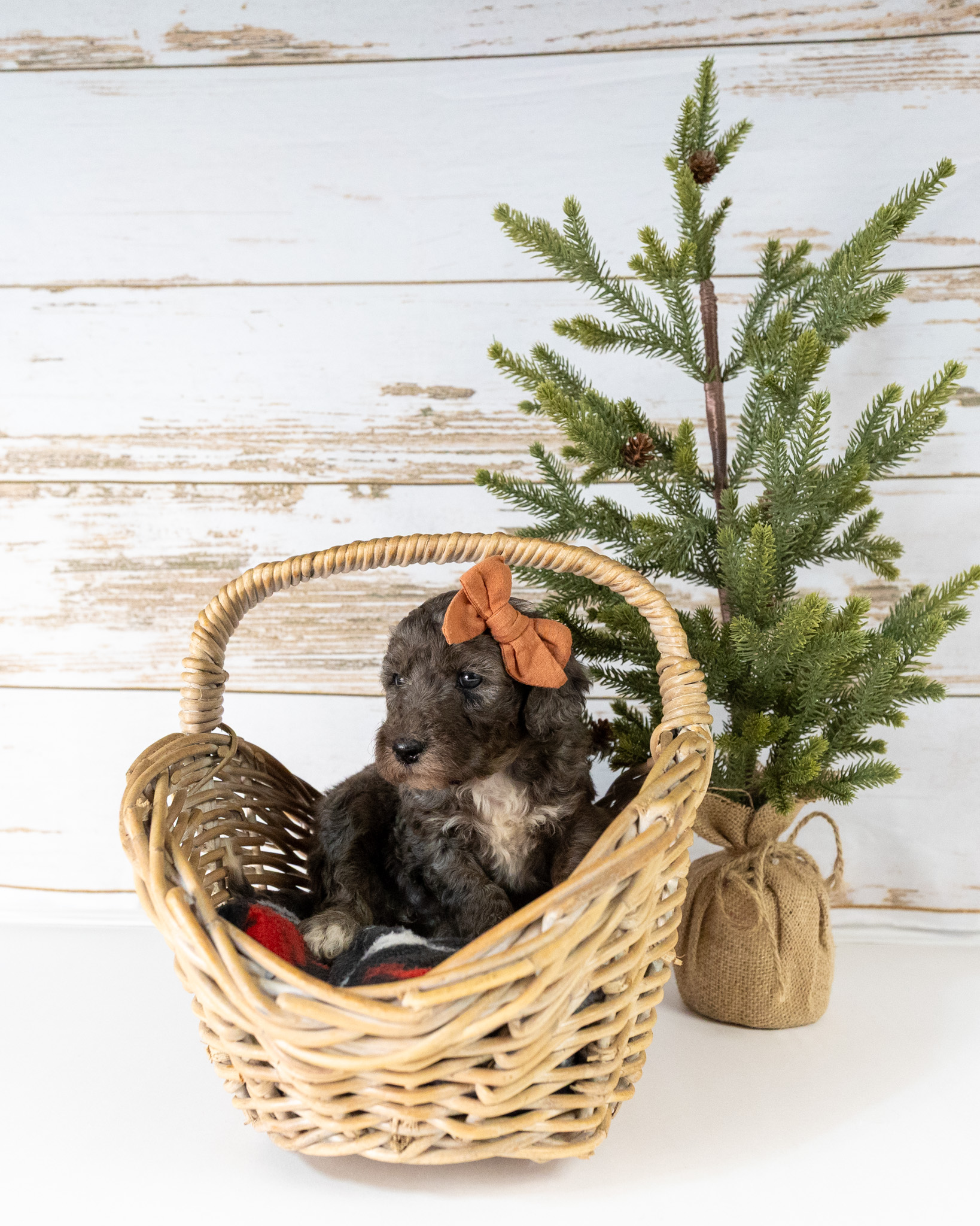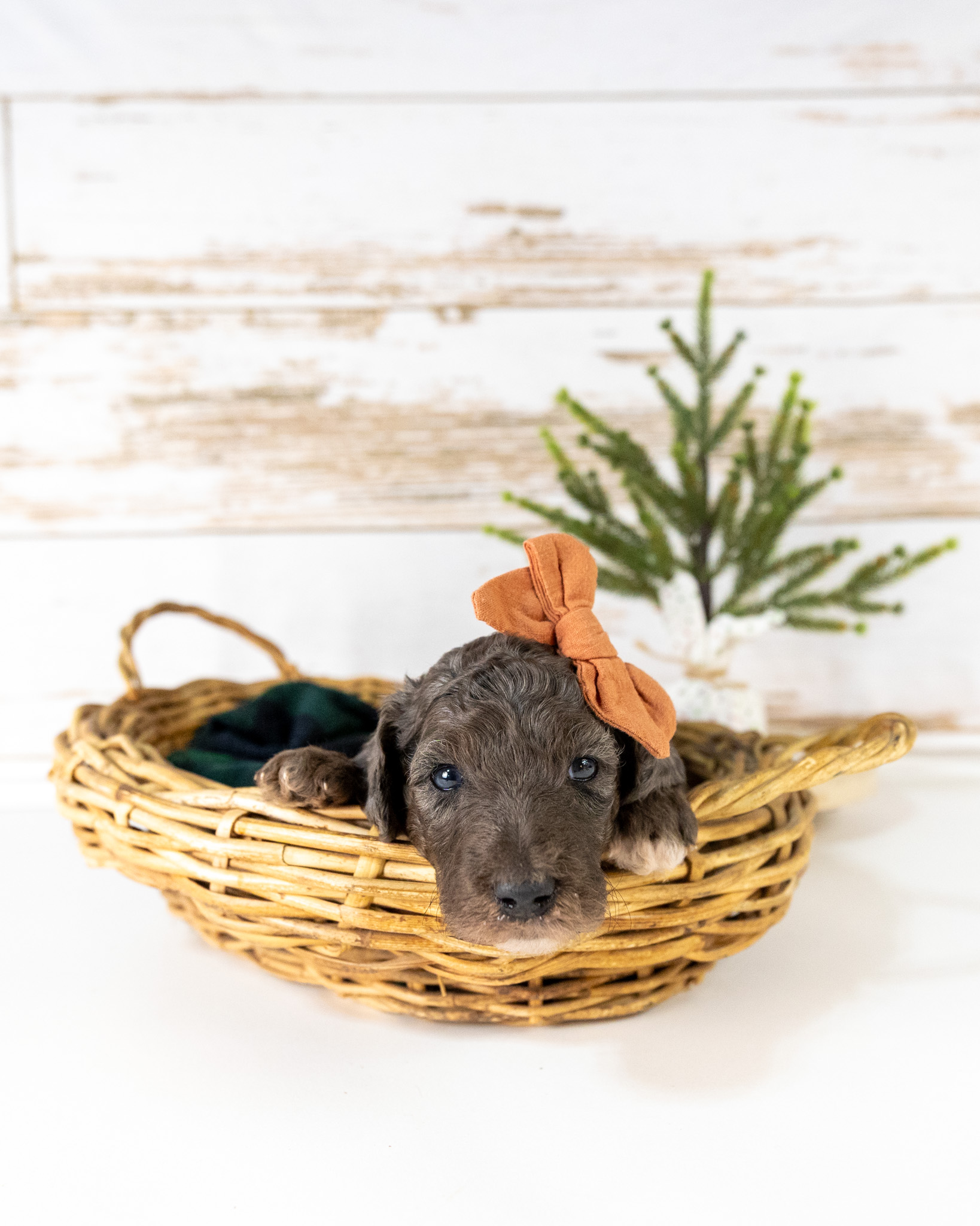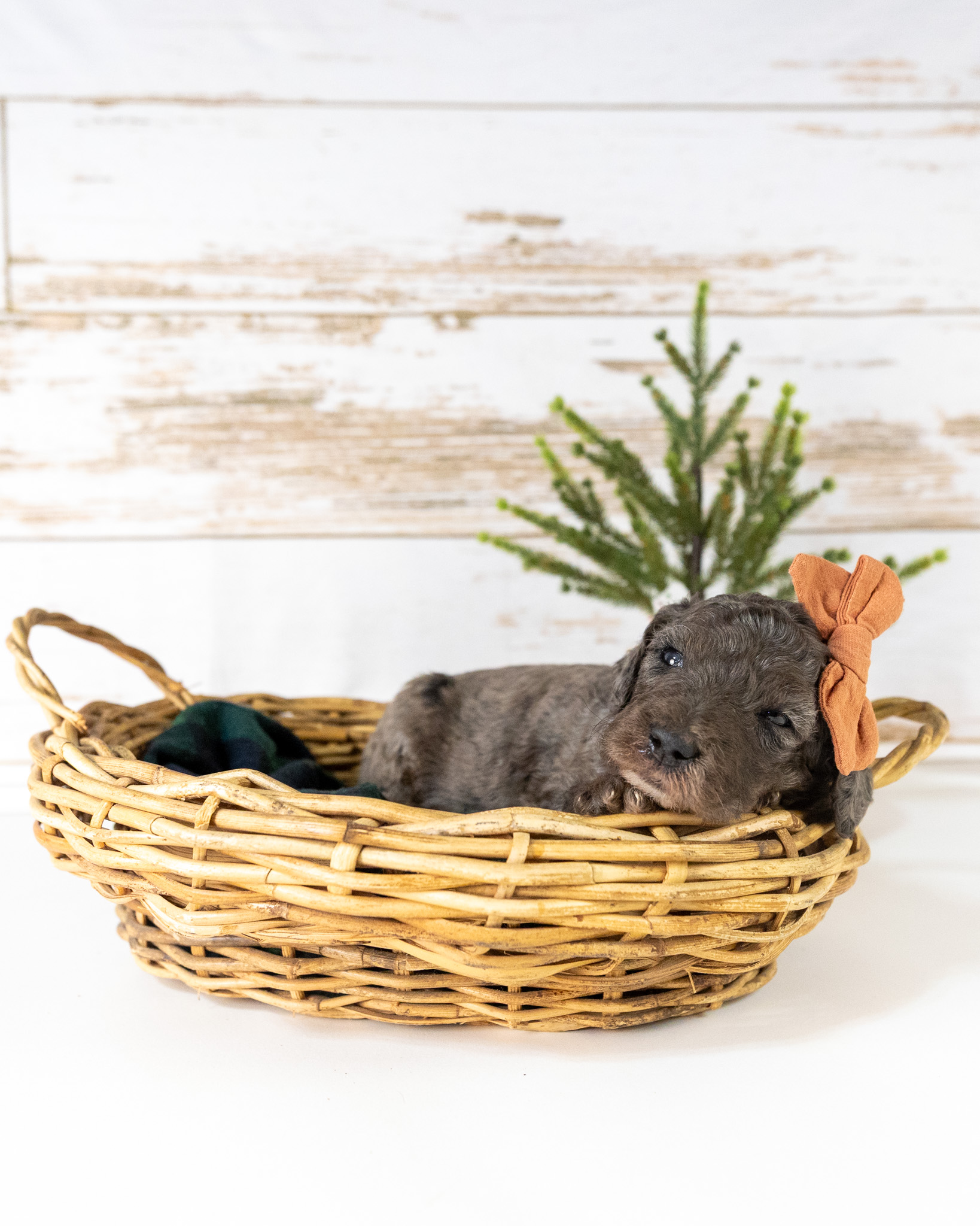 Tundra is a standard multigen Goldendoodle puppy who will be ready for his forever home February 4th! His soft, fluffy coat is hypoallergenic and non-shedding, ensuring endless snuggles without fear of allergic reactions.