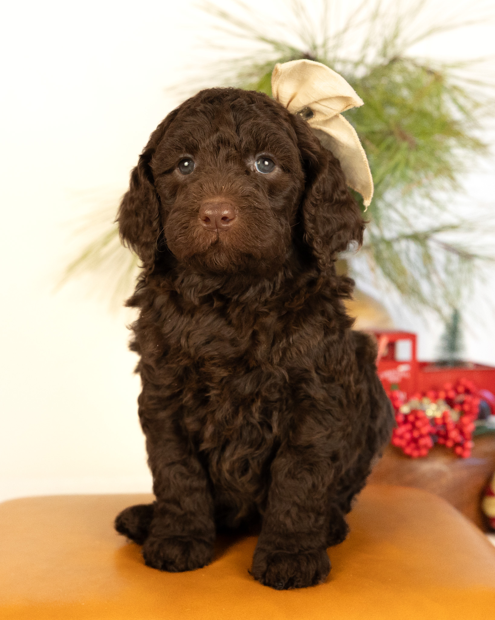 Celeste is a multigen standard Goldendoodle puppy who will be ready for her fur-ever home around December 23rd! Her soft, fluffy coat is hypoallergenic and non-shedding, ensuring endless snuggles without fear of allergic reactions. With a loyal and affectionate temperament, she is the perfect forever friend!
