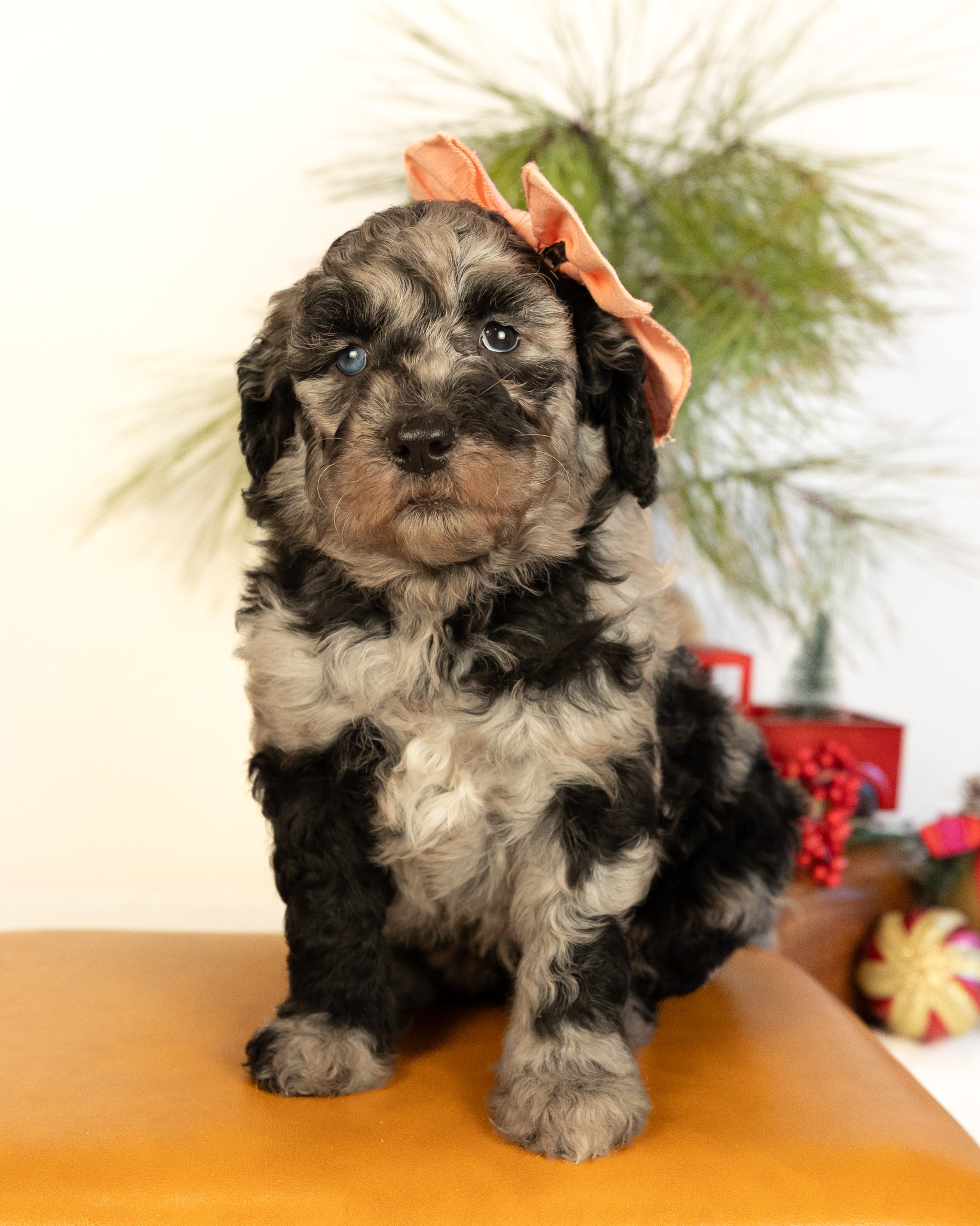 Noel is a multigen standard Goldendoodle puppy who will be ready for her fur-ever home around December 23rd! Her soft, fluffy coat is hypoallergenic and non-shedding, ensuring endless snuggles without fear of allergic reactions. With a loyal and affectionate temperament, she is the perfect forever friend!