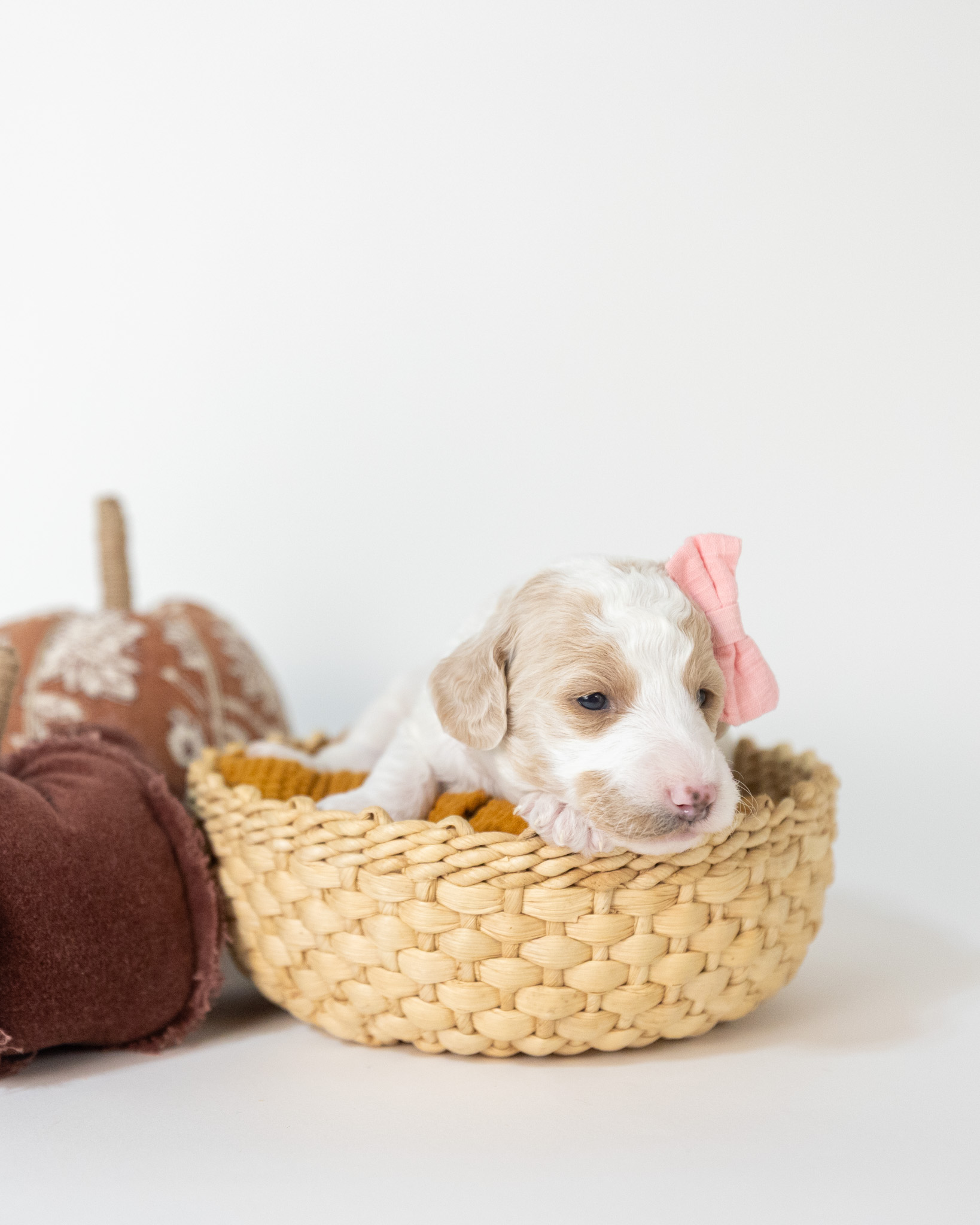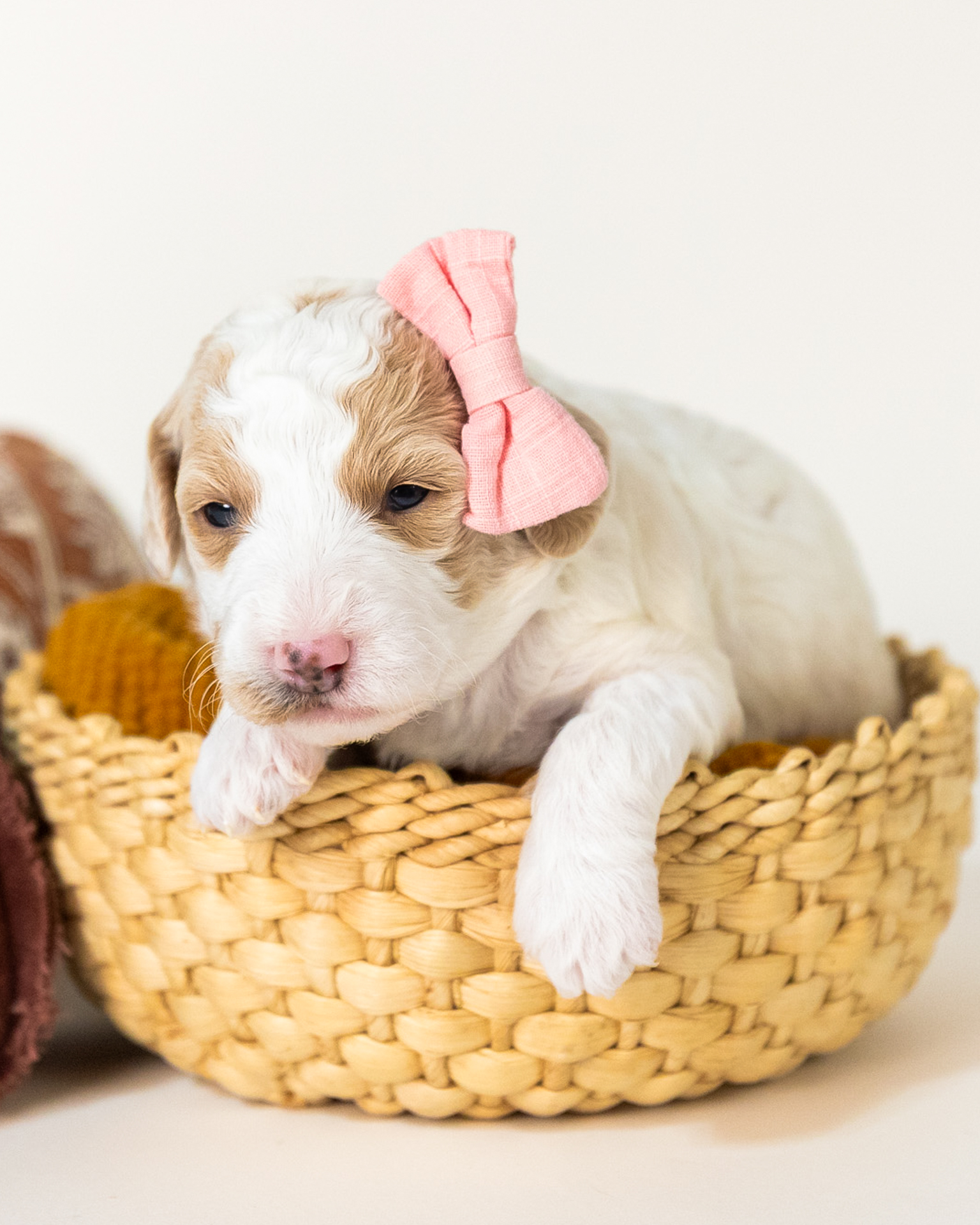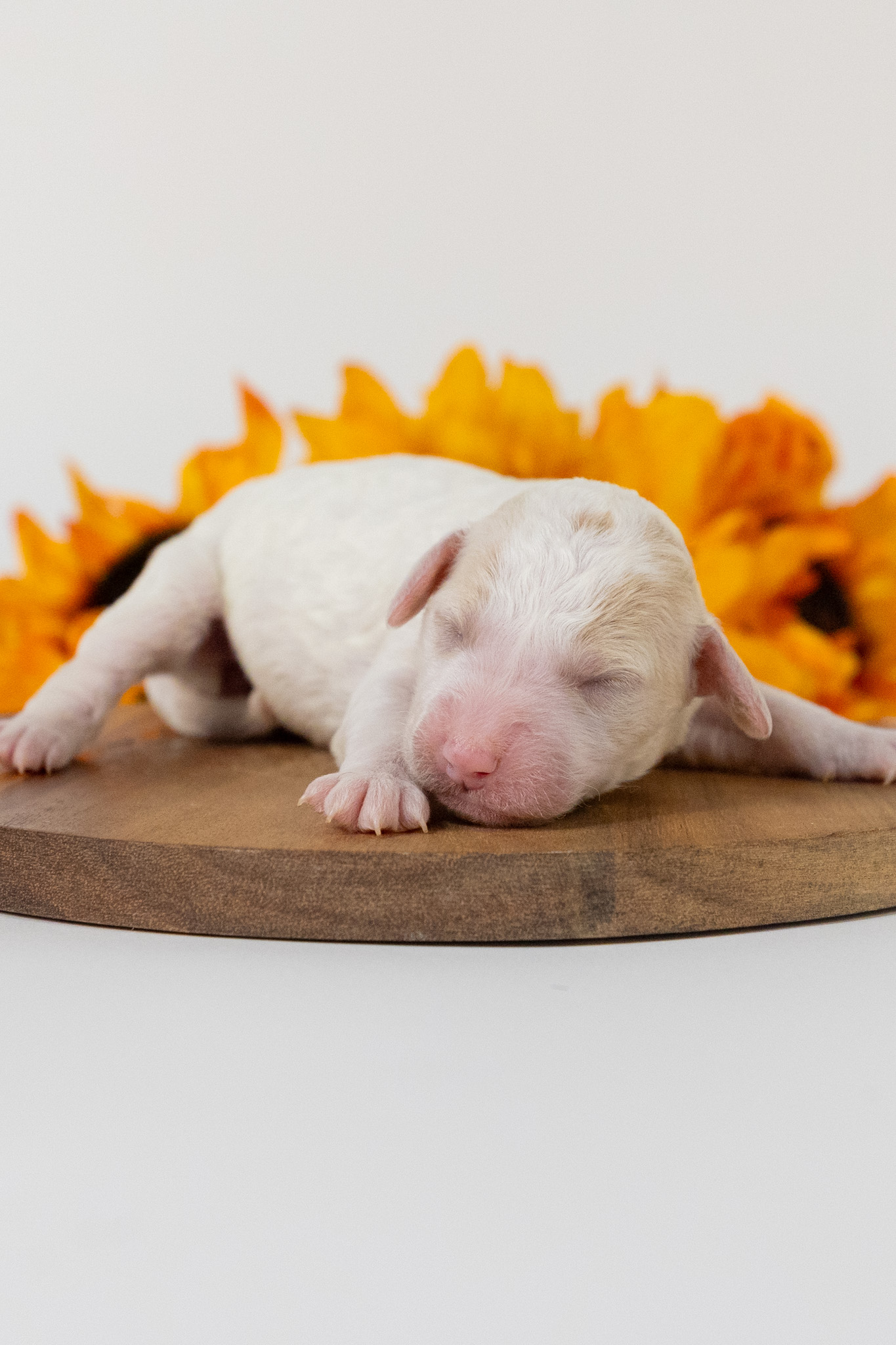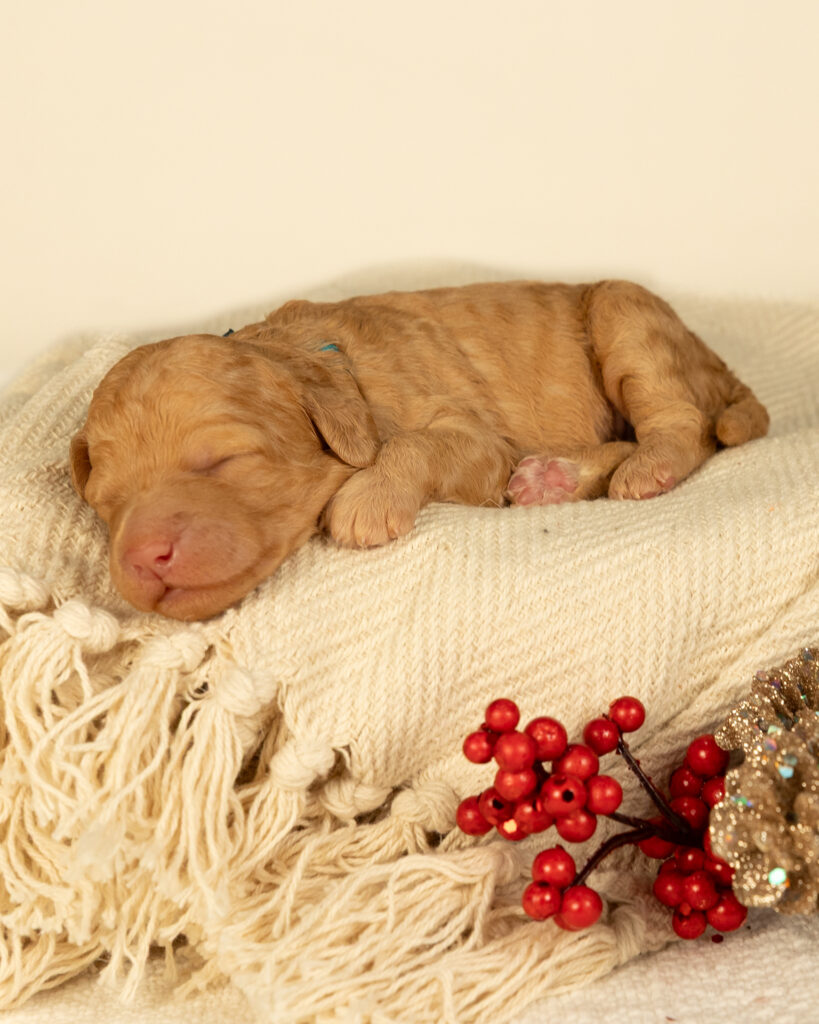 Anna is a multigen mini Goldendoodle puppy who will be ready for her fur-ever home December 24th! Her soft, fluffy coat is hypoallergenic and non-shedding, ensuring endless snuggles without fear of allergic reactions. With a loyal and affectionate temperament, she is the perfect forever friend!