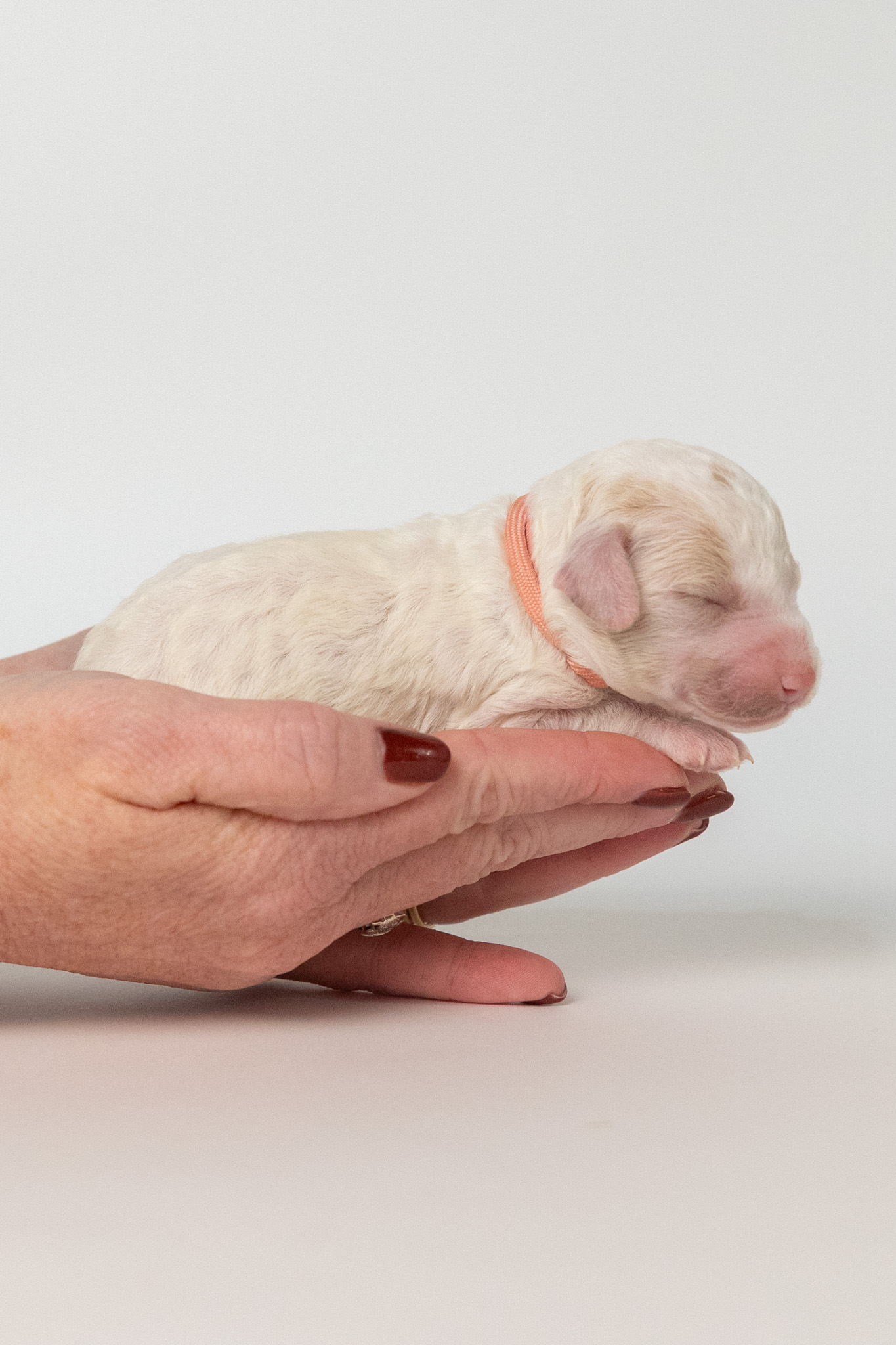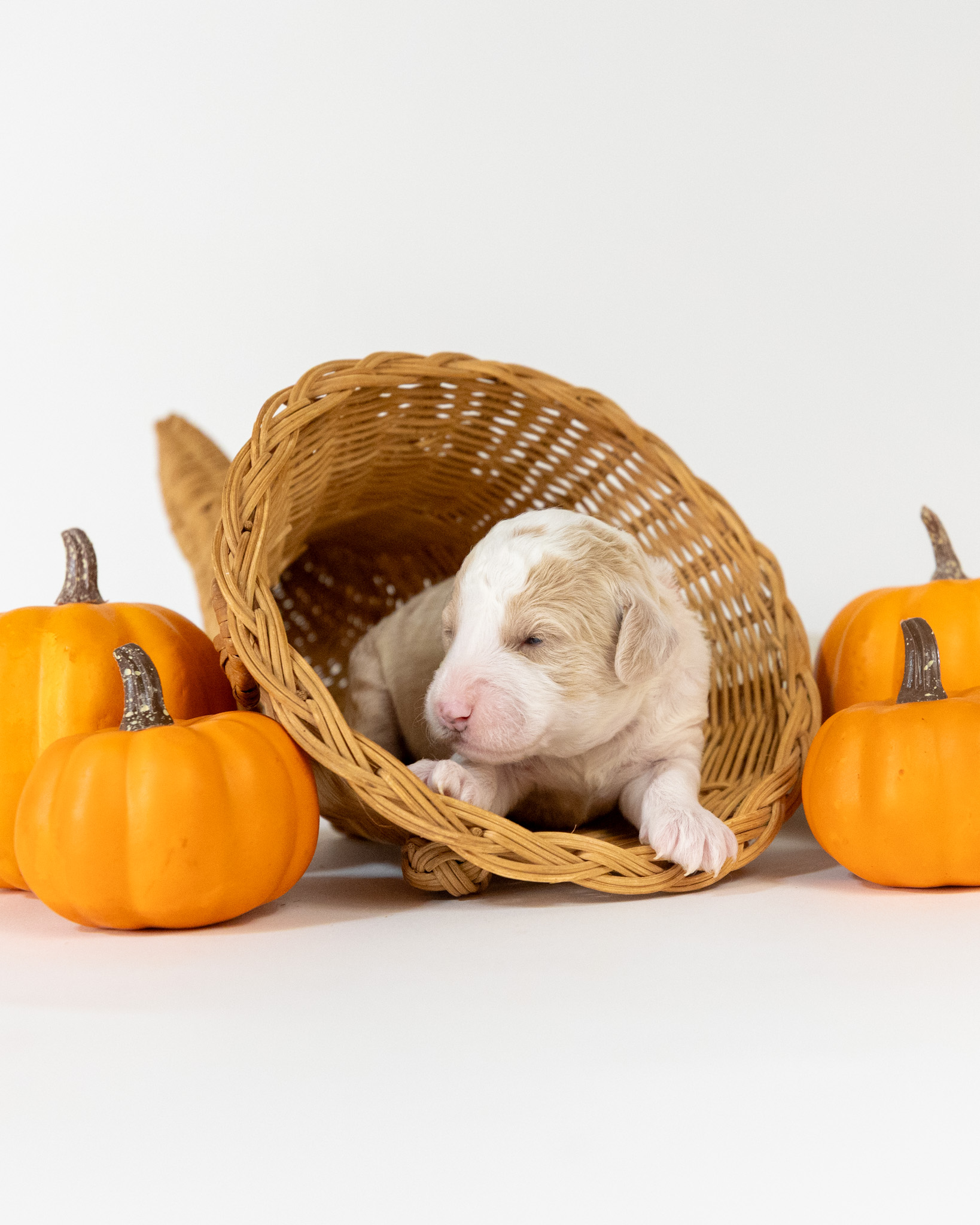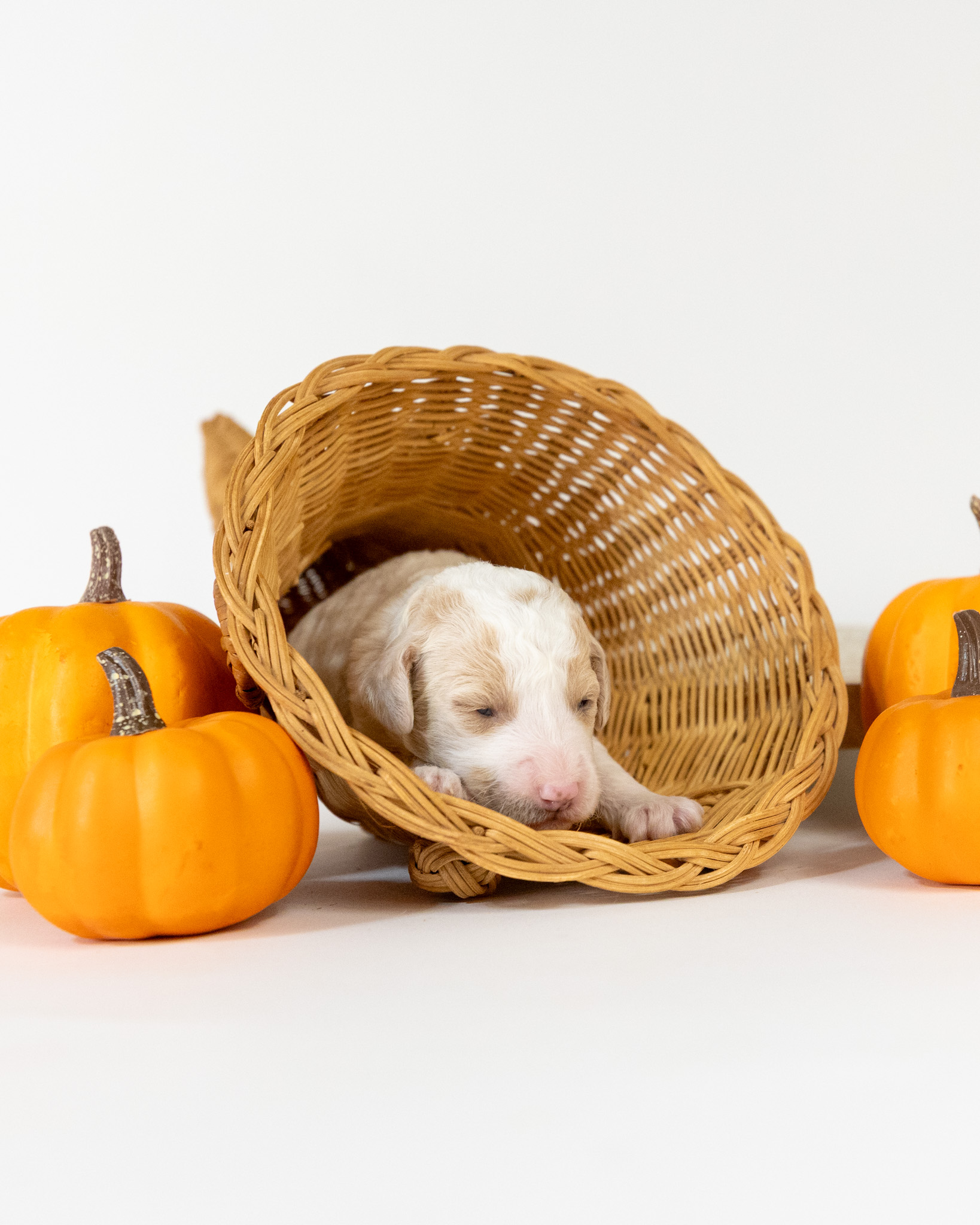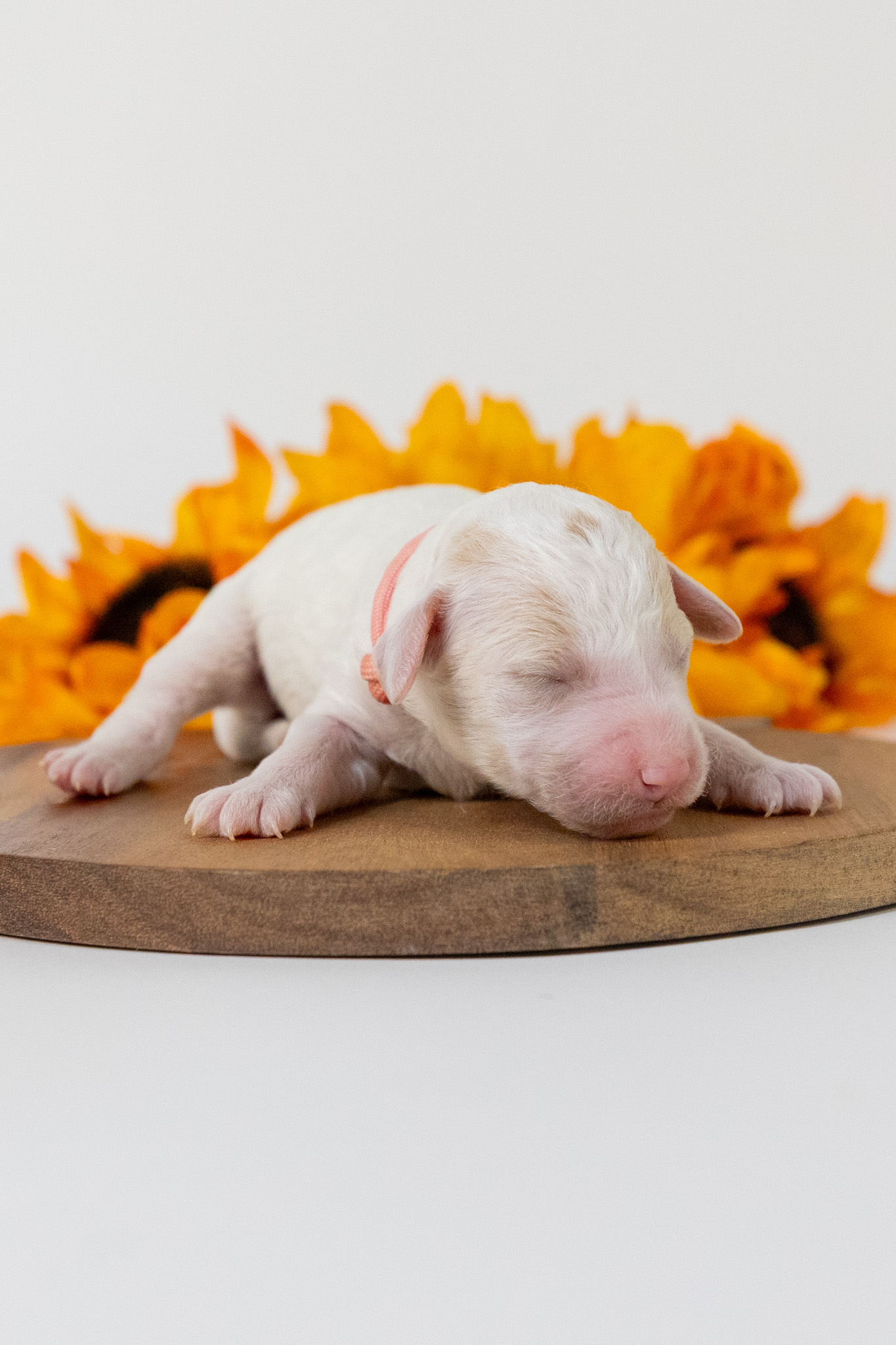 Anna is a multigen mini Goldendoodle puppy who will be ready for her fur-ever home December 24th! Her soft, fluffy coat is hypoallergenic and non-shedding, ensuring endless snuggles without fear of allergic reactions. With a loyal and affectionate temperament, she is the perfect forever friend!