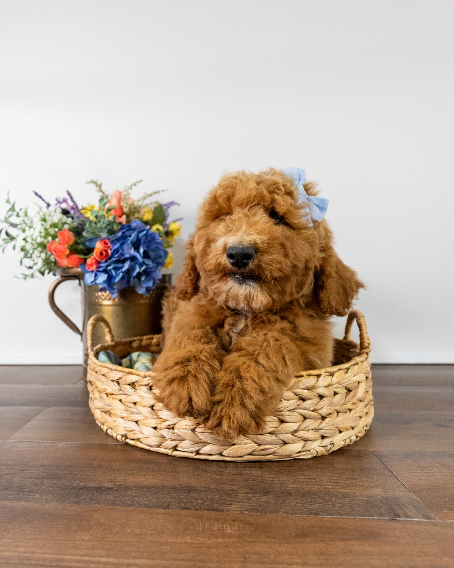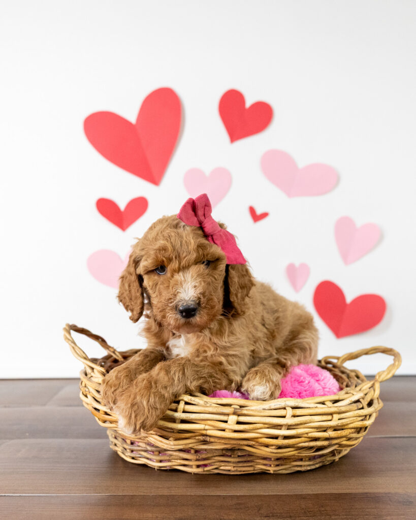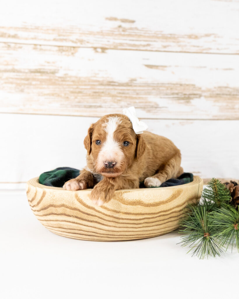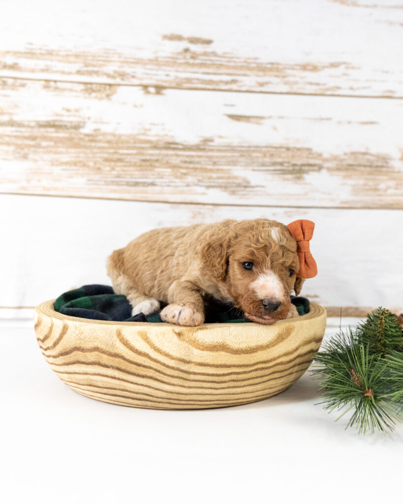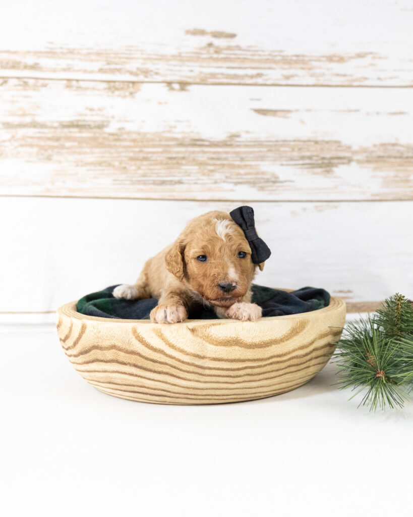 Anna is a standard multigen Goldendoodle puppy who will be ready for her forever home February 12th! Her soft, fluffy coat is hypoallergenic and non-shedding, ensuring endless snuggles without fear of allergic reactions.