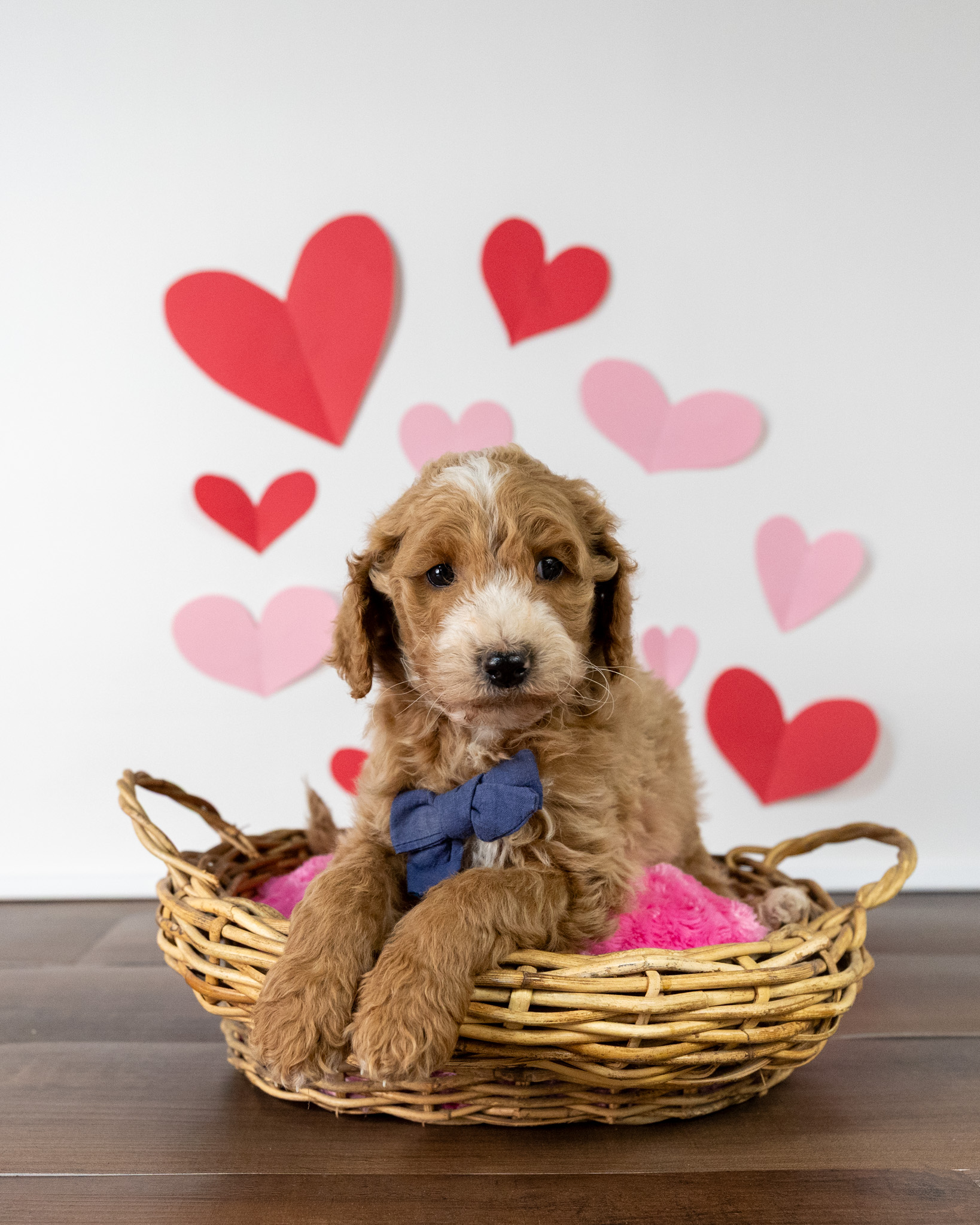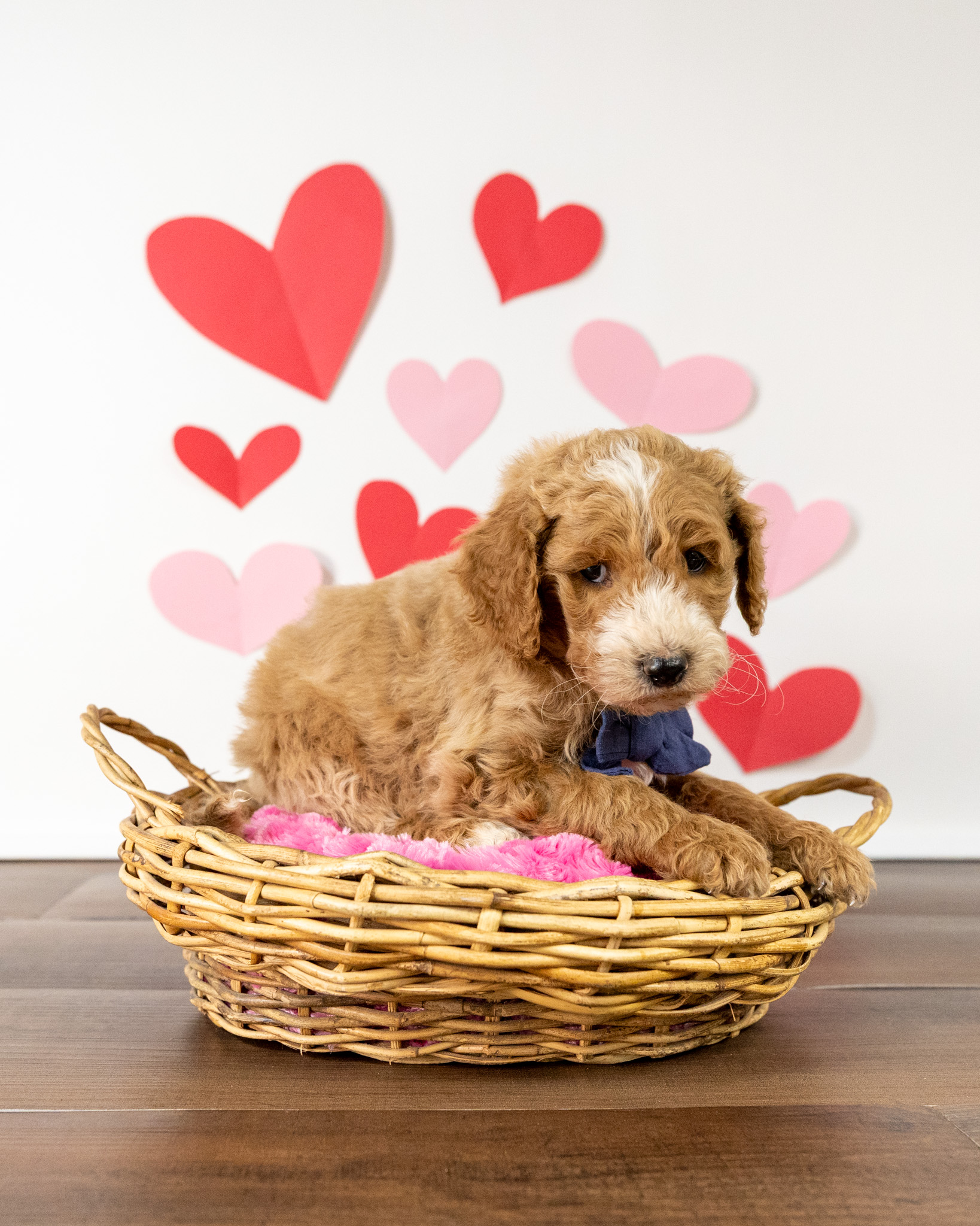 Timber is a red medium Goldendoodle puppy who will complete his second month of training on February 24th.