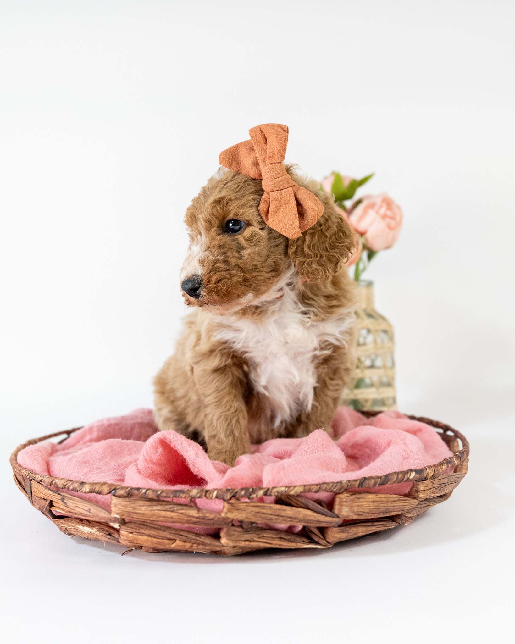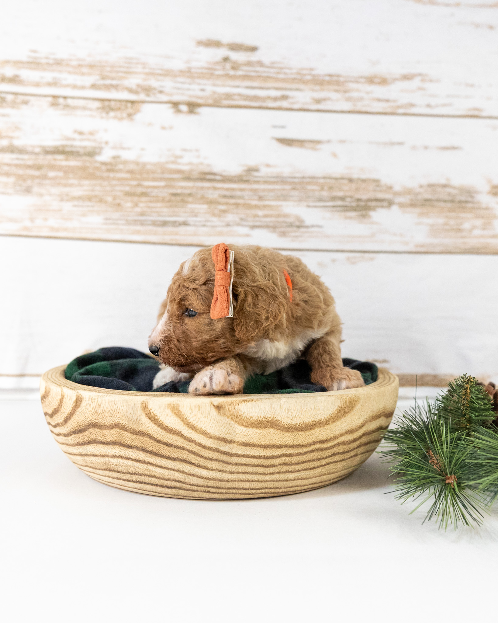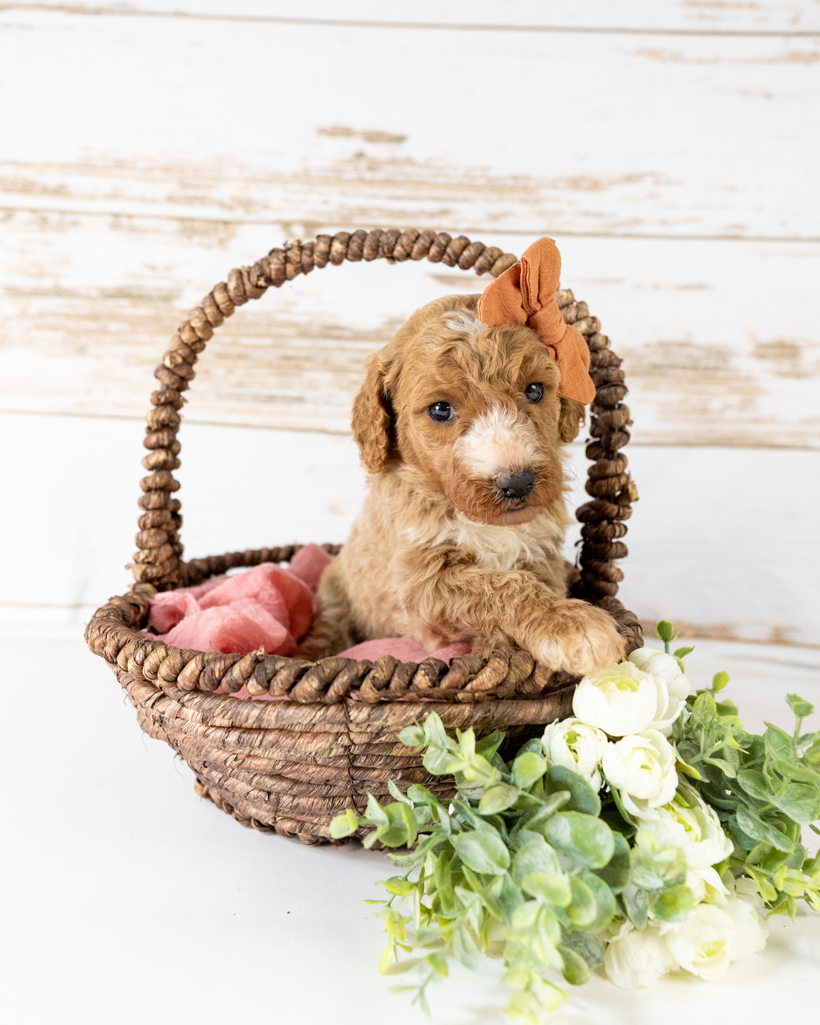 Twinkle is a standard multigen Goldendoodle puppy who will be ready for her forever home February 12th! Her soft, fluffy coat is hypoallergenic and non-shedding, ensuring endless snuggles without fear of allergic reactions.