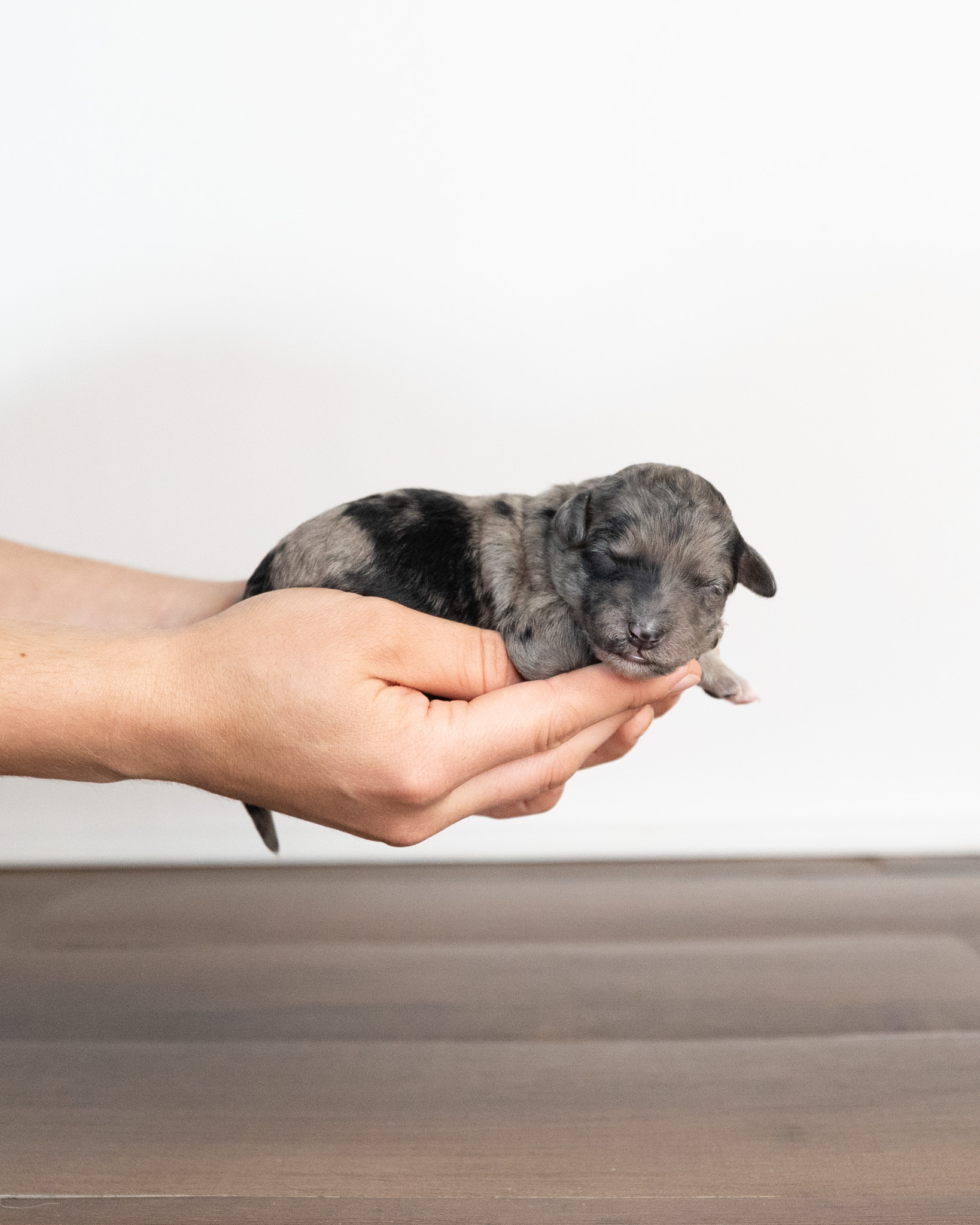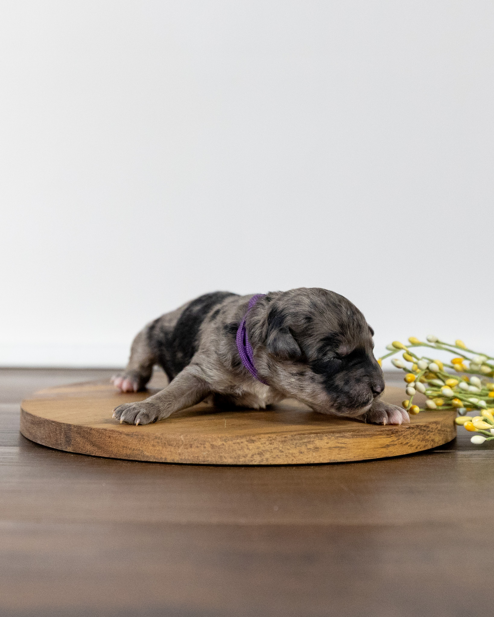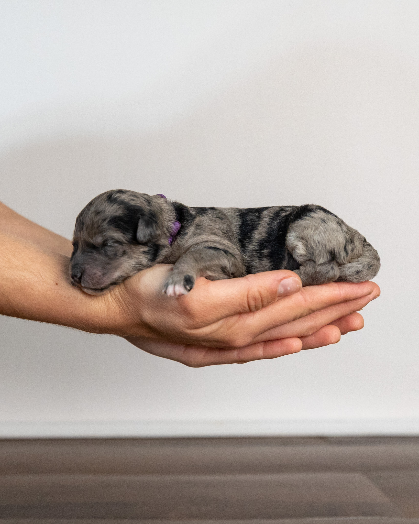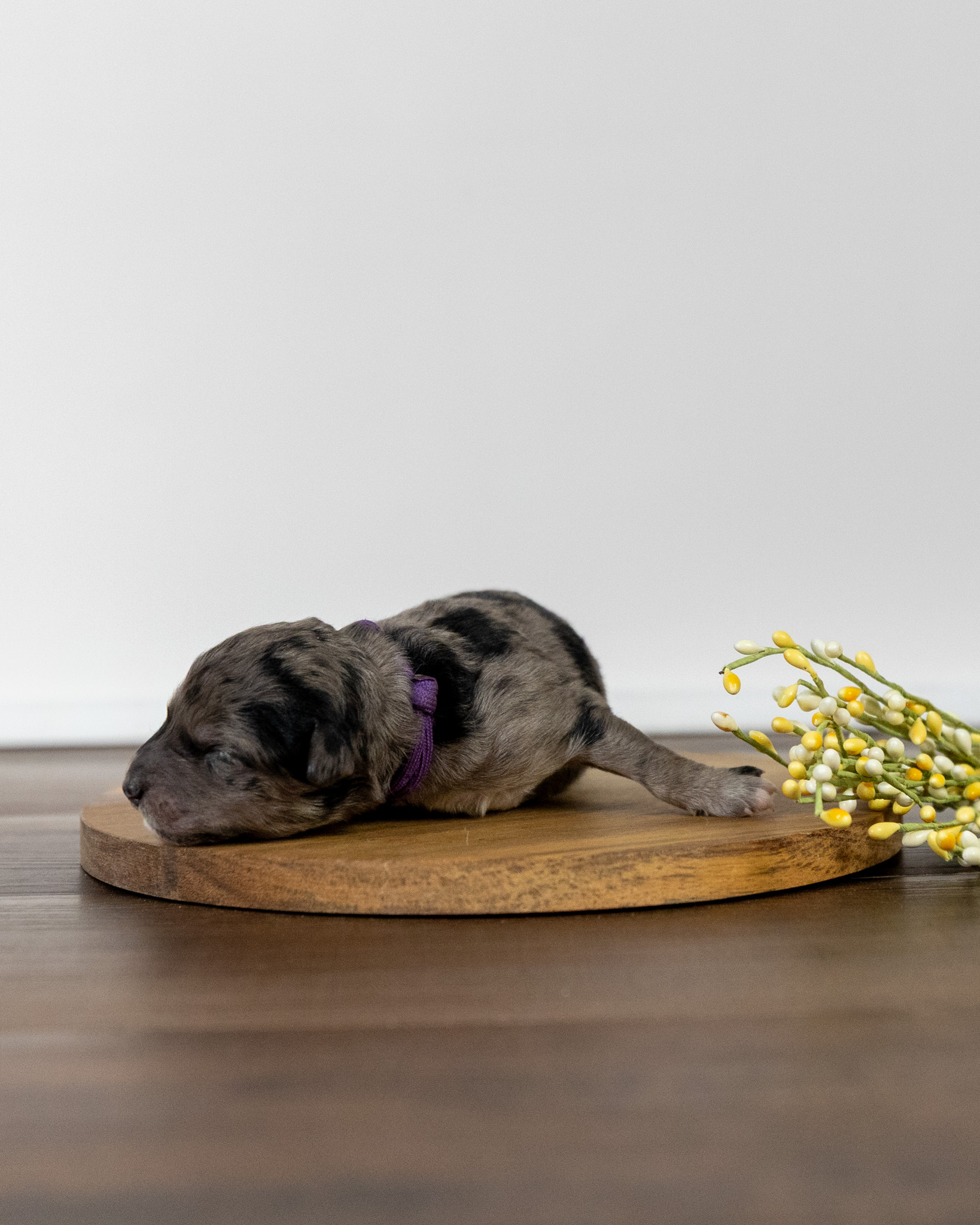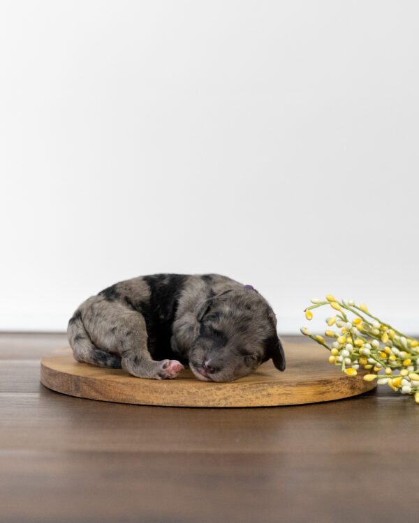 Zoe is a female multigen standard Goldendoodle puppy, born from our wonderful Goldendoodle parents Lady Lavinia and Sir Walter. As with all of our Goldendoodles, this puppy’s coat will be hypoallergenic and non-shedding, ensuring endless snuggles without fear of allergic reactions.