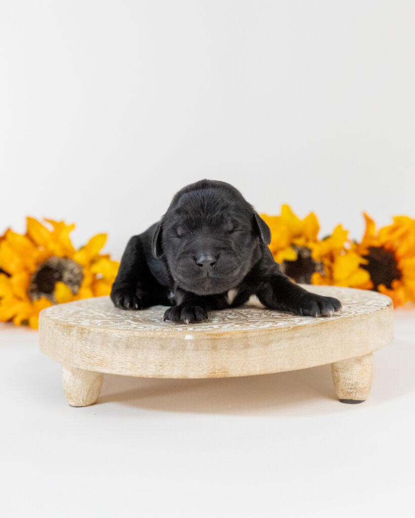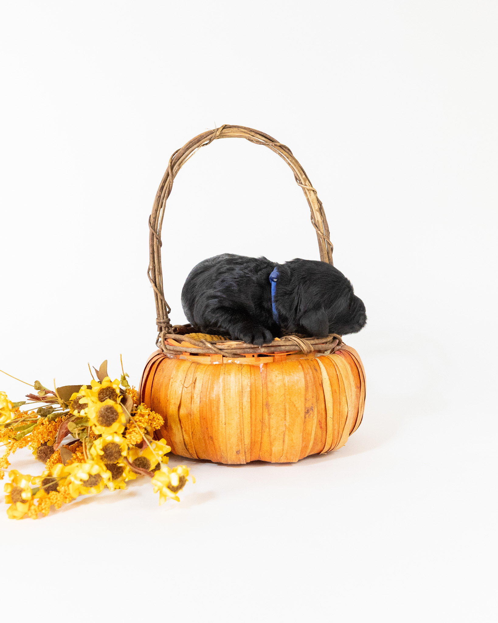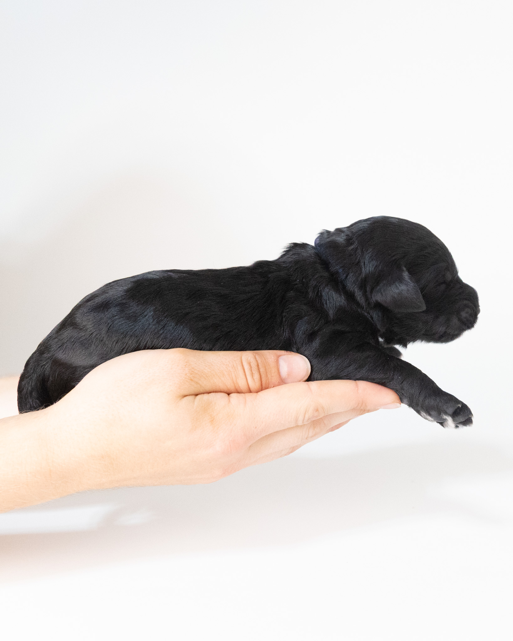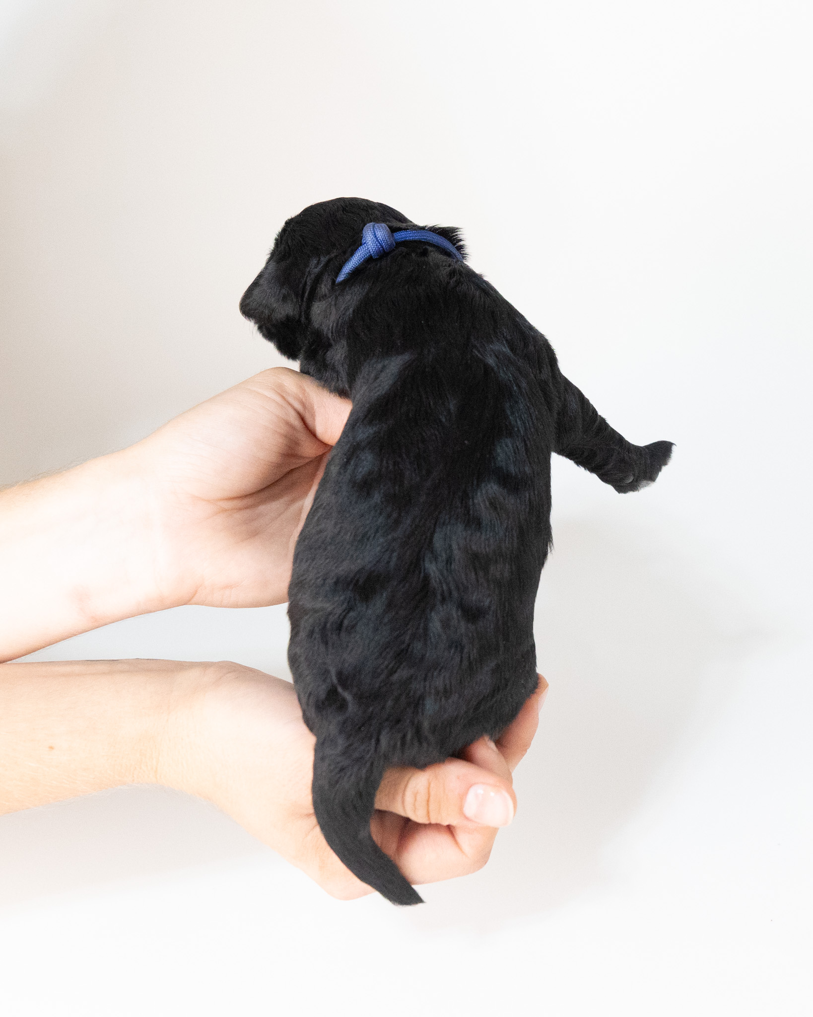 Gumdrop is a Black Goldendoodle puppy who will be ready for her forever home around December 11th.