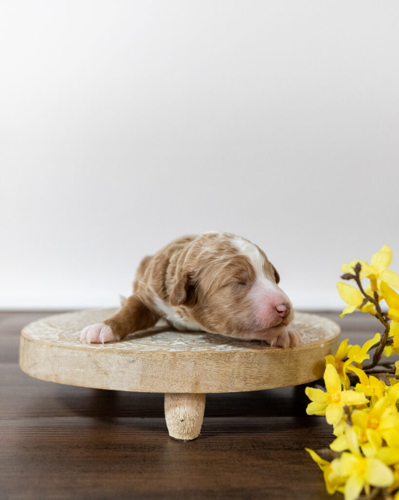 Affogato is a red male multigen standard Goldendoodle puppy who will be ready to go home May 26th!