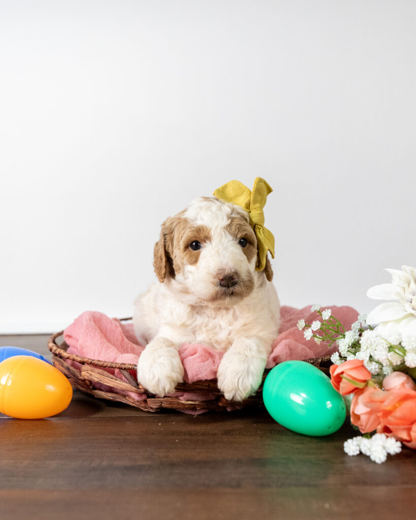 Lavinia/Walter #4 will be a standard multigen Goldendoodle puppy, born from our wonderful Goldendoodle parents Lavinia and Walter. This litter may include puppies in stunning black, chocolate, or merle coats — each with either a soft curly or flowing wavy texture. As with all of our Goldendoodles, this puppy’s coat will be hypoallergenic and non-shedding, ensuring endless snuggles without fear of allergic reactions.