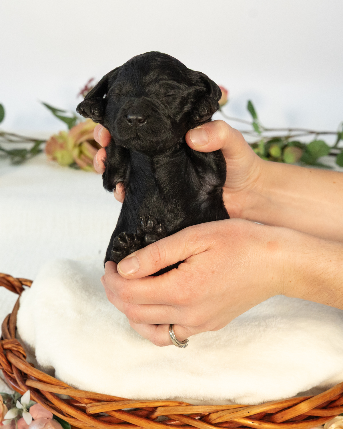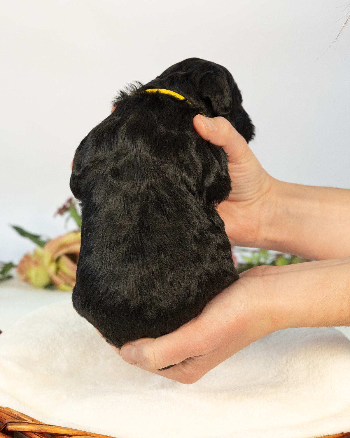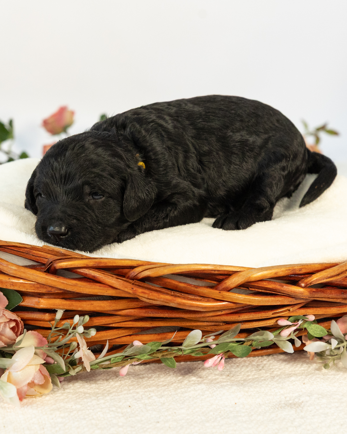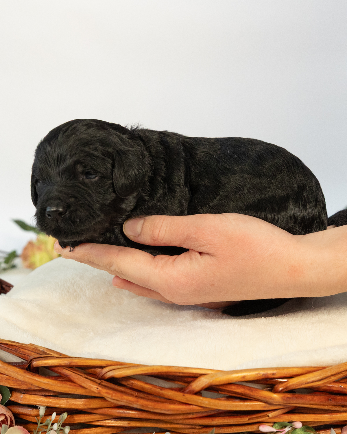 Diggory is a black multigen medium Goldendoodle puppy who will be ready for his fur-ever home around March 18th! His soft, fluffy coat is hypoallergenic and non-shedding, ensuring endless snuggles without fear of allergic reactions. With a loyal and affectionate temperament, he is the perfect forever friend!