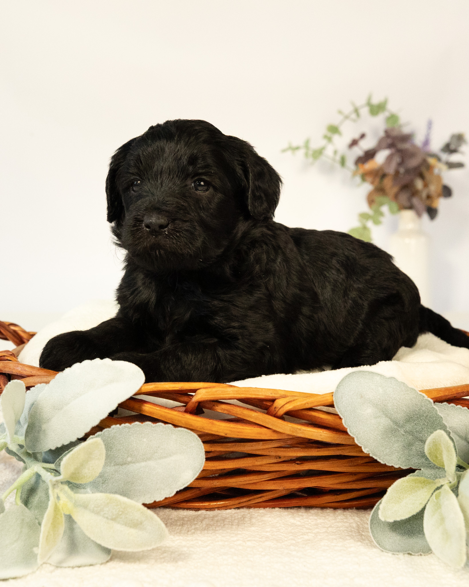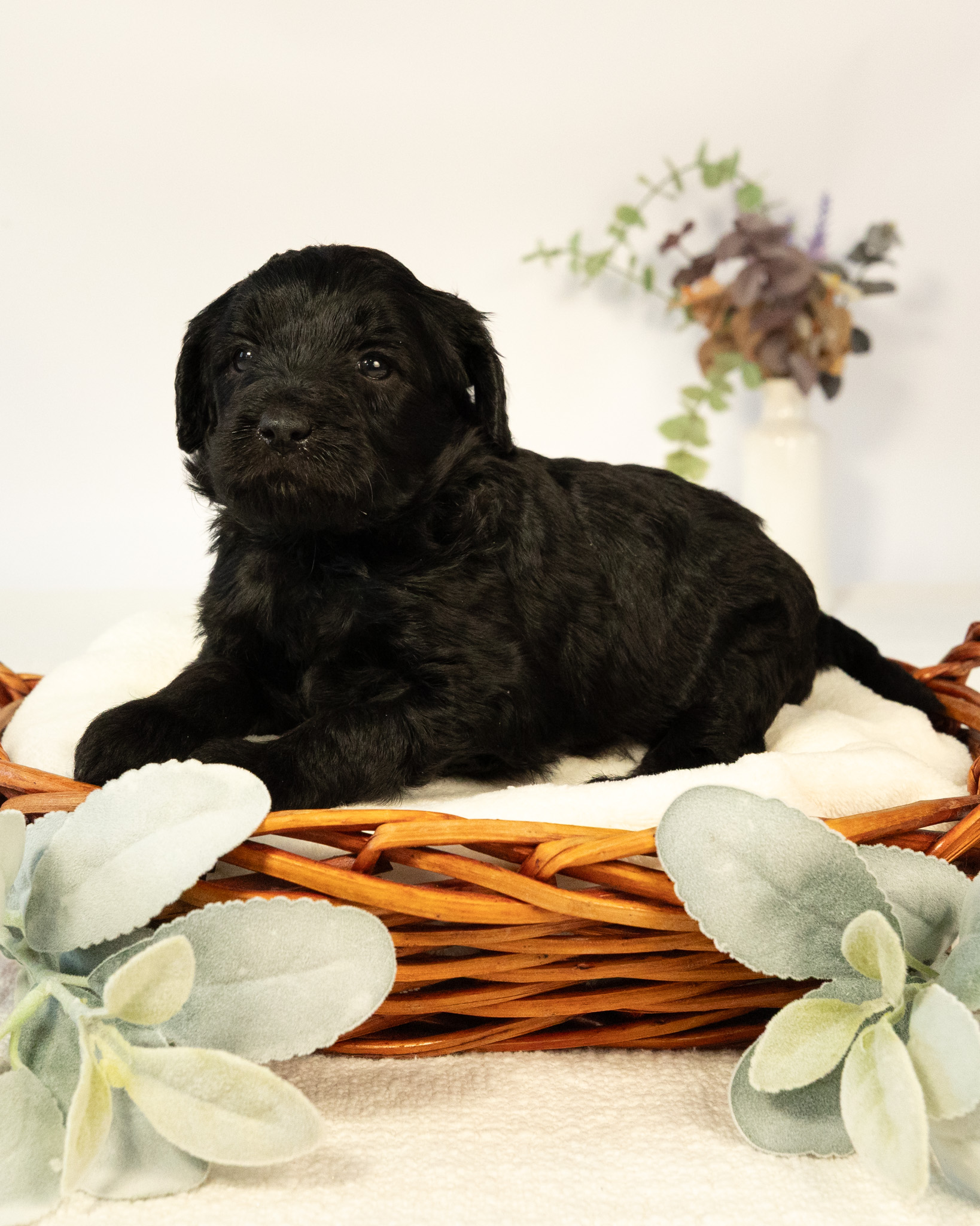 Lucy is a black multigen medium Goldendoodle puppy who will be ready for her fur-ever home around March 18th! Her soft, fluffy coat is hypoallergenic and non-shedding, ensuring endless snuggles without fear of allergic reactions. With a loyal and affectionate temperament, she is the perfect forever friend!