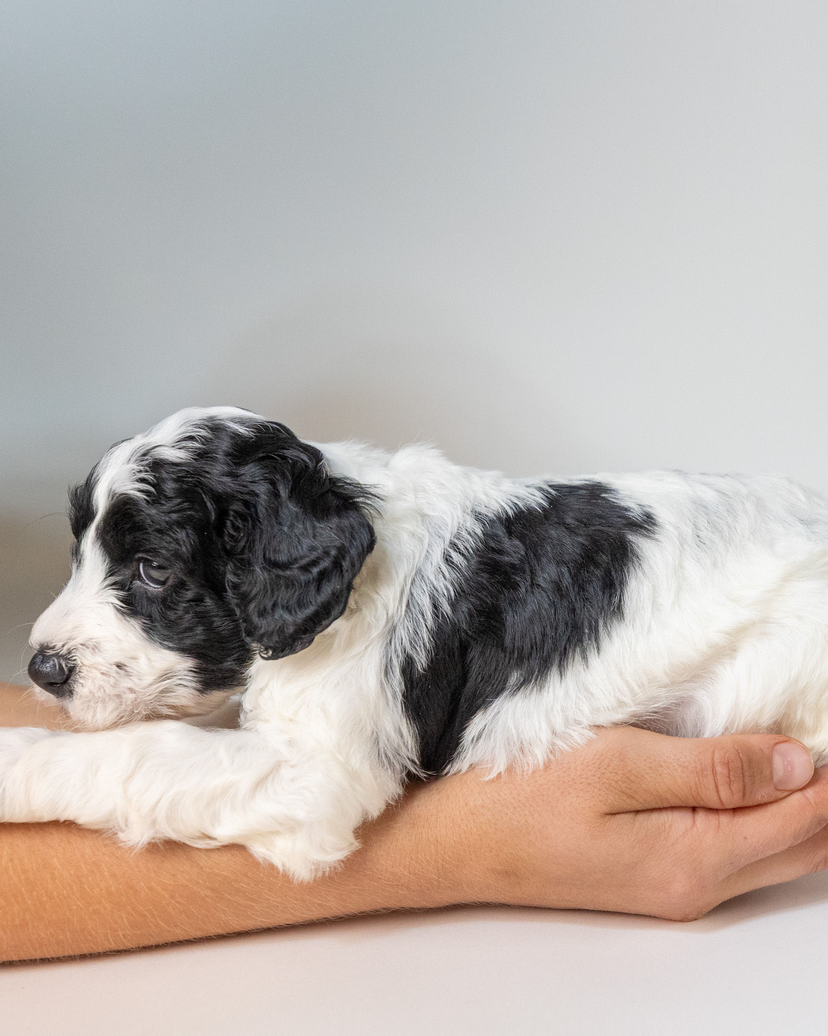 Ebony is a multigen mini Goldendoodle puppy who will be ready for his fur-ever home around October 14th! His soft, fluffy coat is hypoallergenic and non-shedding, ensuring endless snuggles without fear of allergic reactions. With a loyal and affectionate temperament, he is the perfect forever friend!
