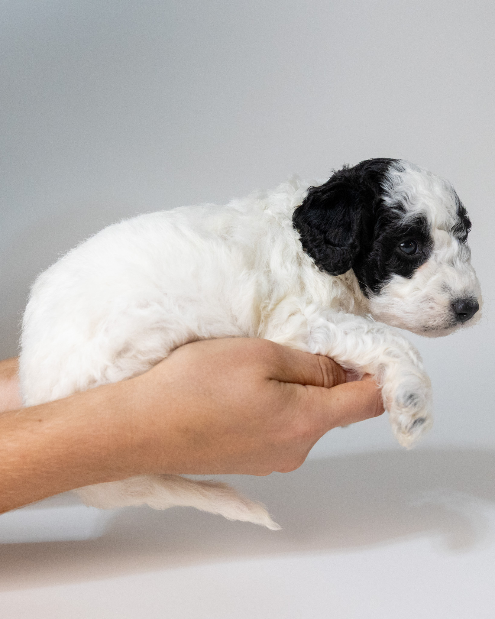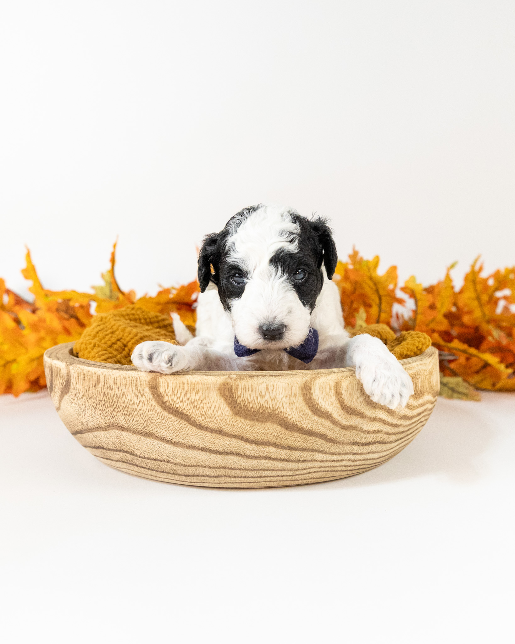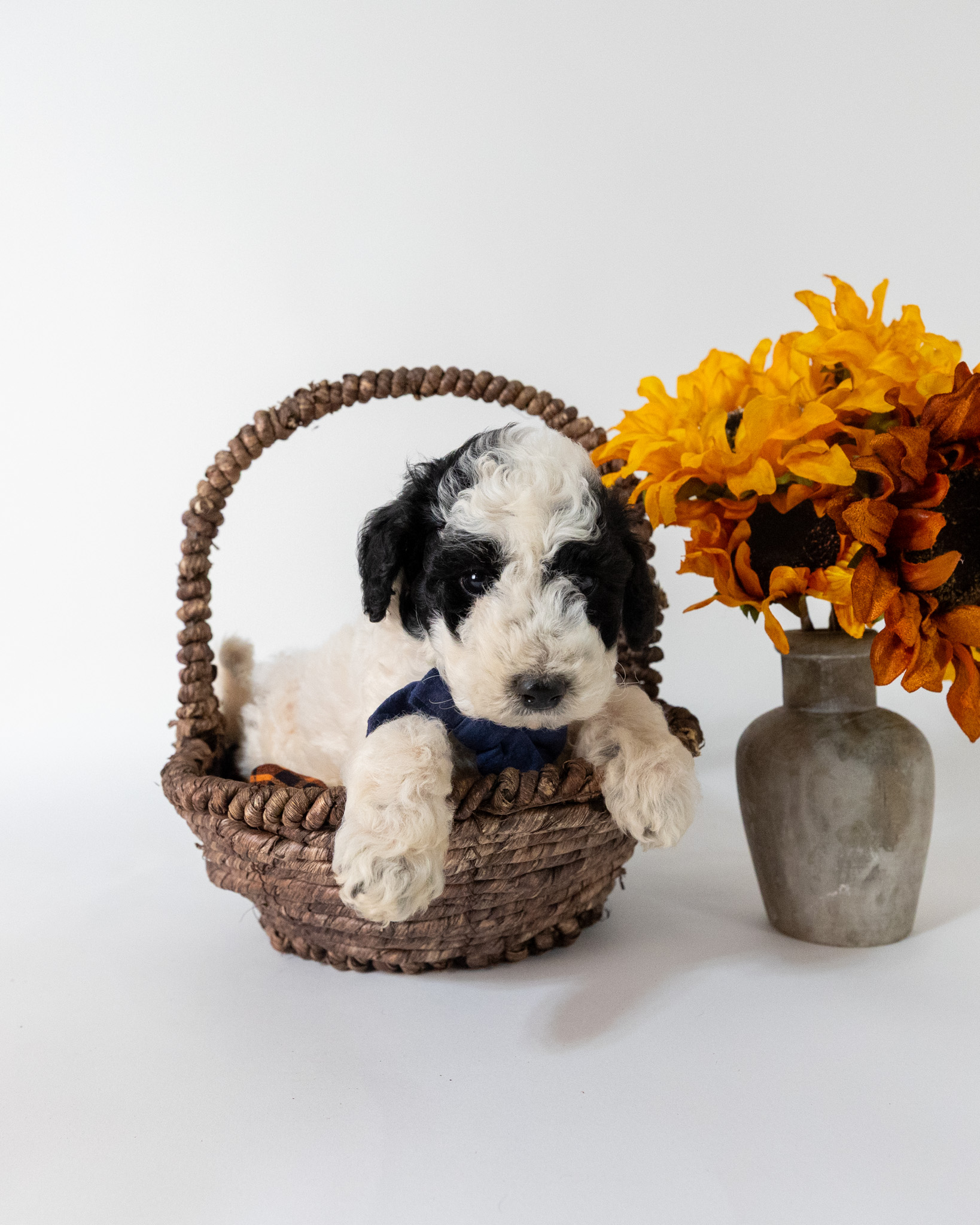 Sterling is a multigen mini Goldendoodle puppy who will be ready for his fur-ever home around October 14th! His soft, fluffy coat is hypoallergenic and non-shedding, ensuring endless snuggles without fear of allergic reactions. With a loyal and affectionate temperament, he is the perfect forever friend!