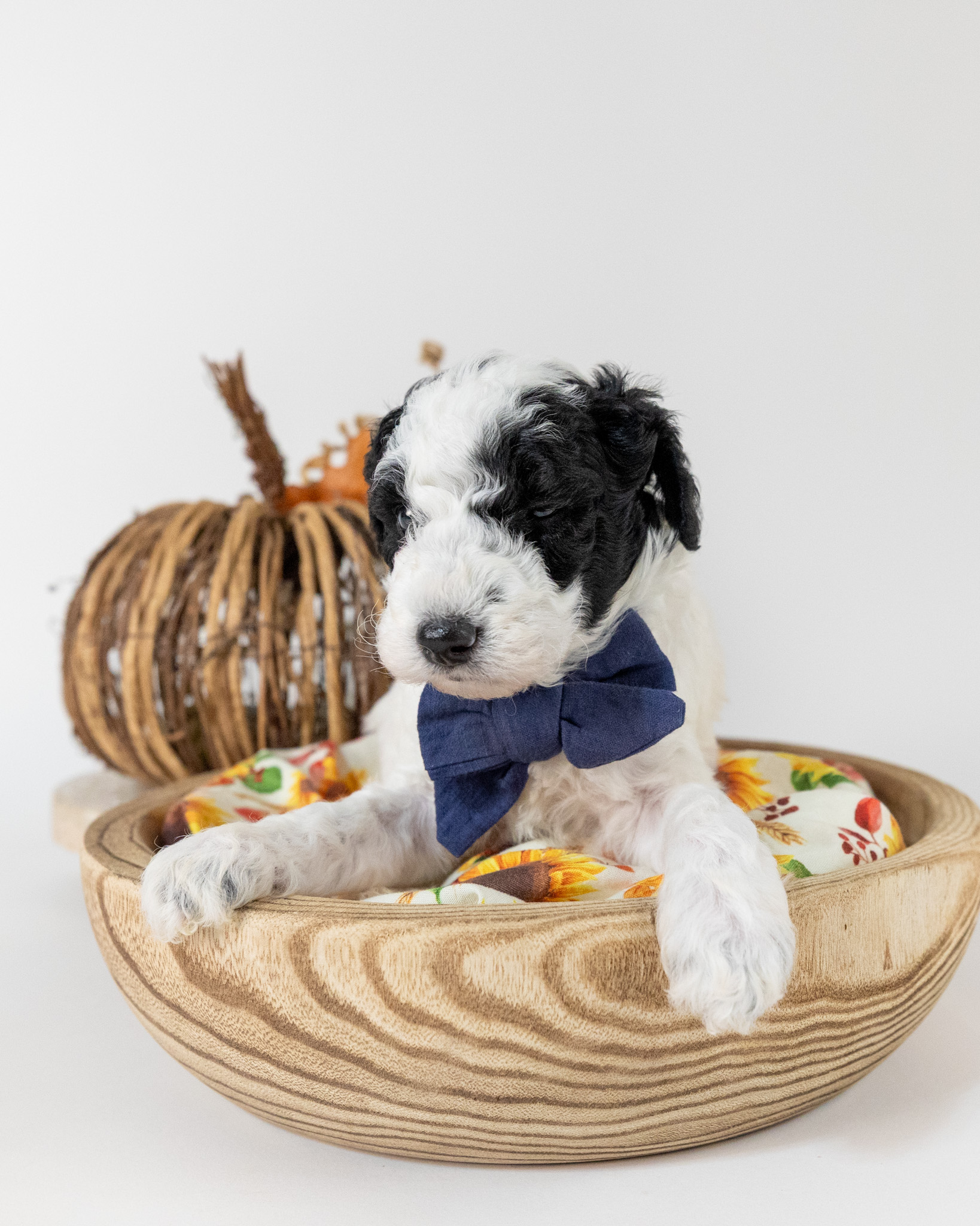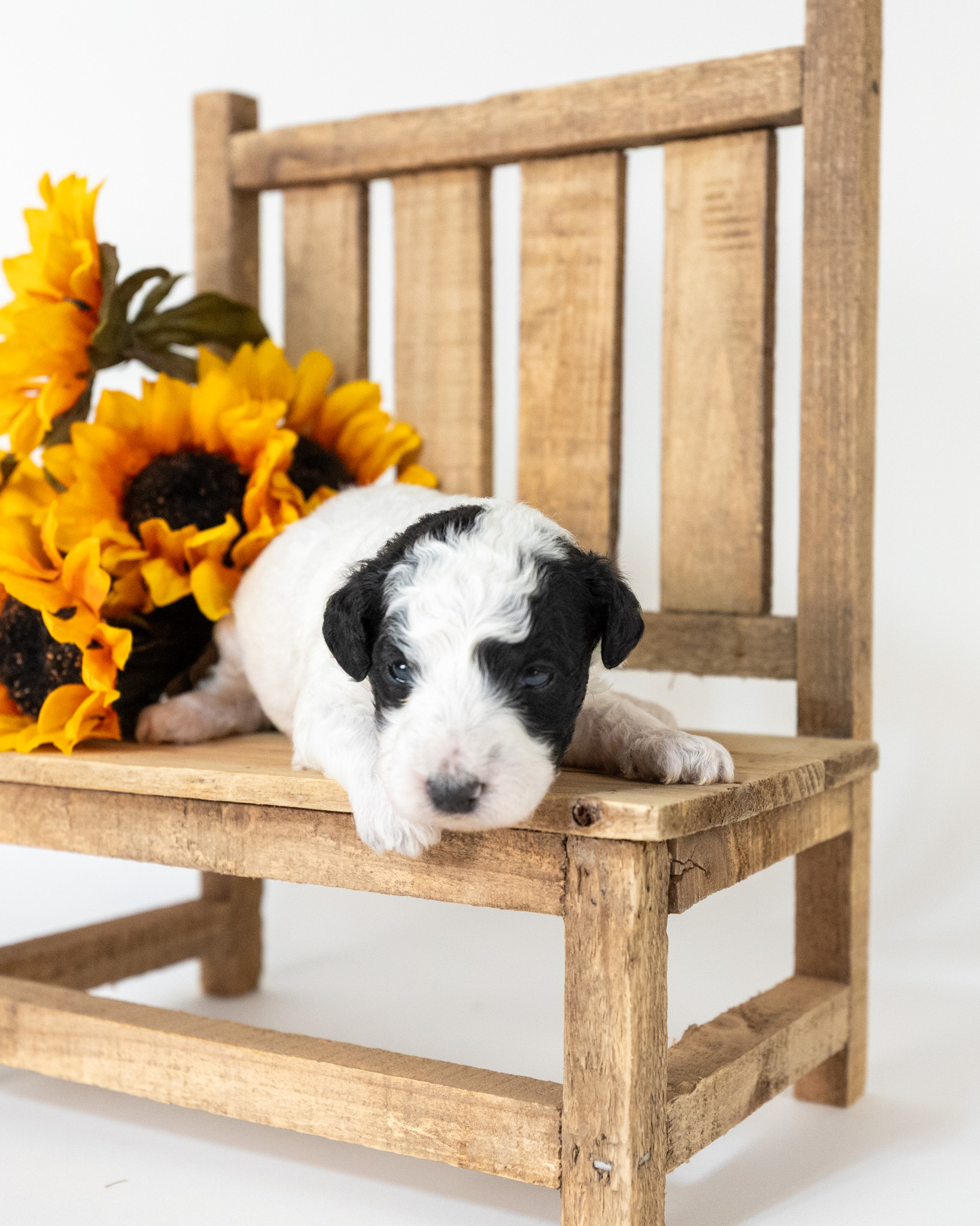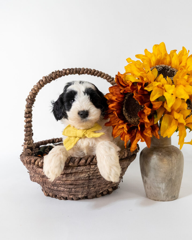 Sterling is a multigen mini Goldendoodle puppy who will be ready for his fur-ever home around October 14th! His soft, fluffy coat is hypoallergenic and non-shedding, ensuring endless snuggles without fear of allergic reactions. With a loyal and affectionate temperament, he is the perfect forever friend!