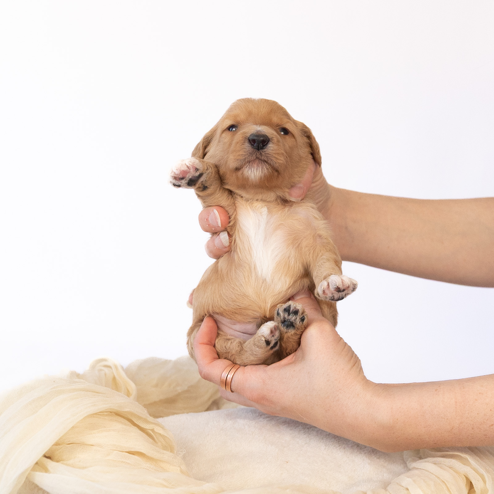 Nibs is a multigen Goldendoodle puppy who will be ready for his fur-ever home around April 21st! His soft, fluffy coat is hypoallergenic and non-shedding, ensuring endless snuggles without fear of allergic reactions. With a loyal and affectionate temperament, he is the perfect forever friend!