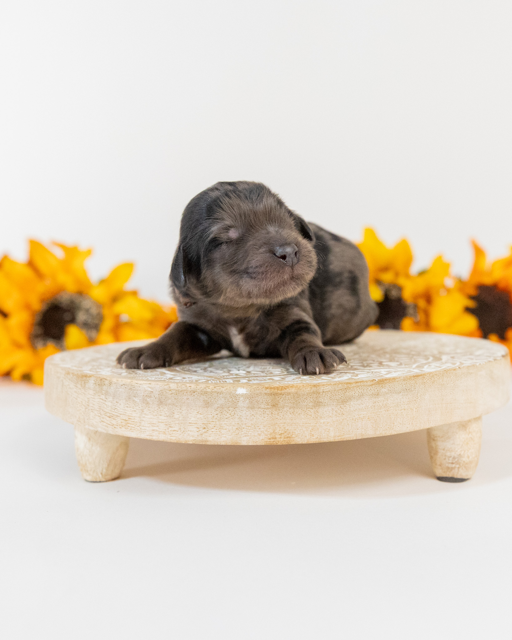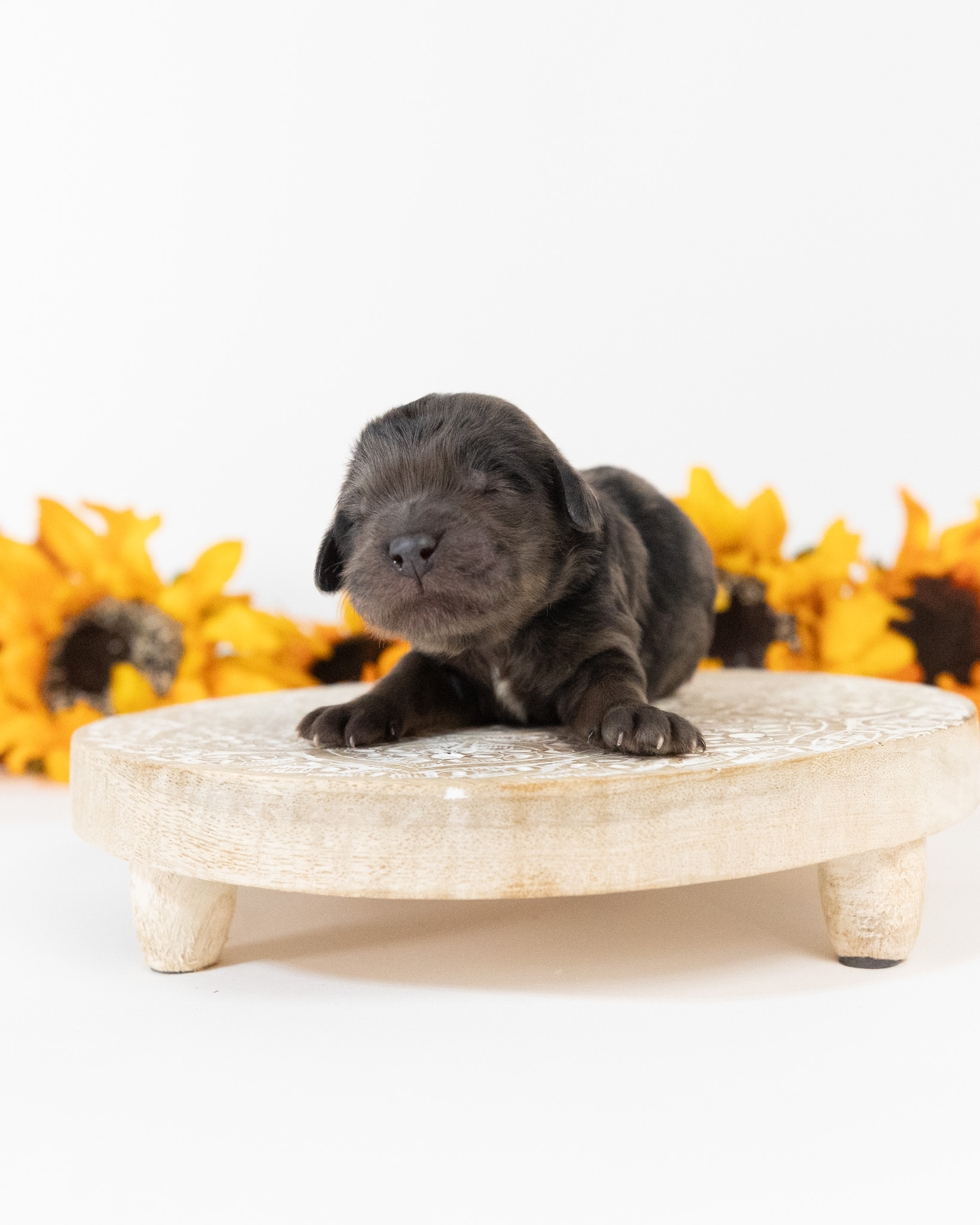 Chestnut is a multigen Goldendoodle puppy who will be ready for his fur-ever home around December 11th! His soft, fluffy coat is hypoallergenic and non-shedding, ensuring endless snuggles without fear of allergic reactions. With a loyal and affectionate temperament, he is the perfect forever friend!