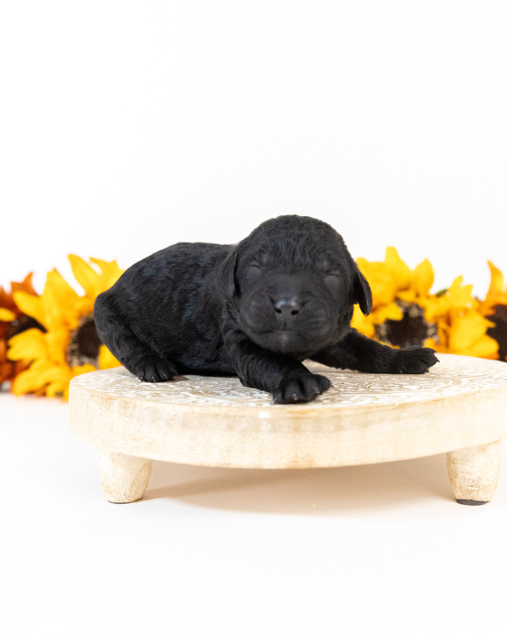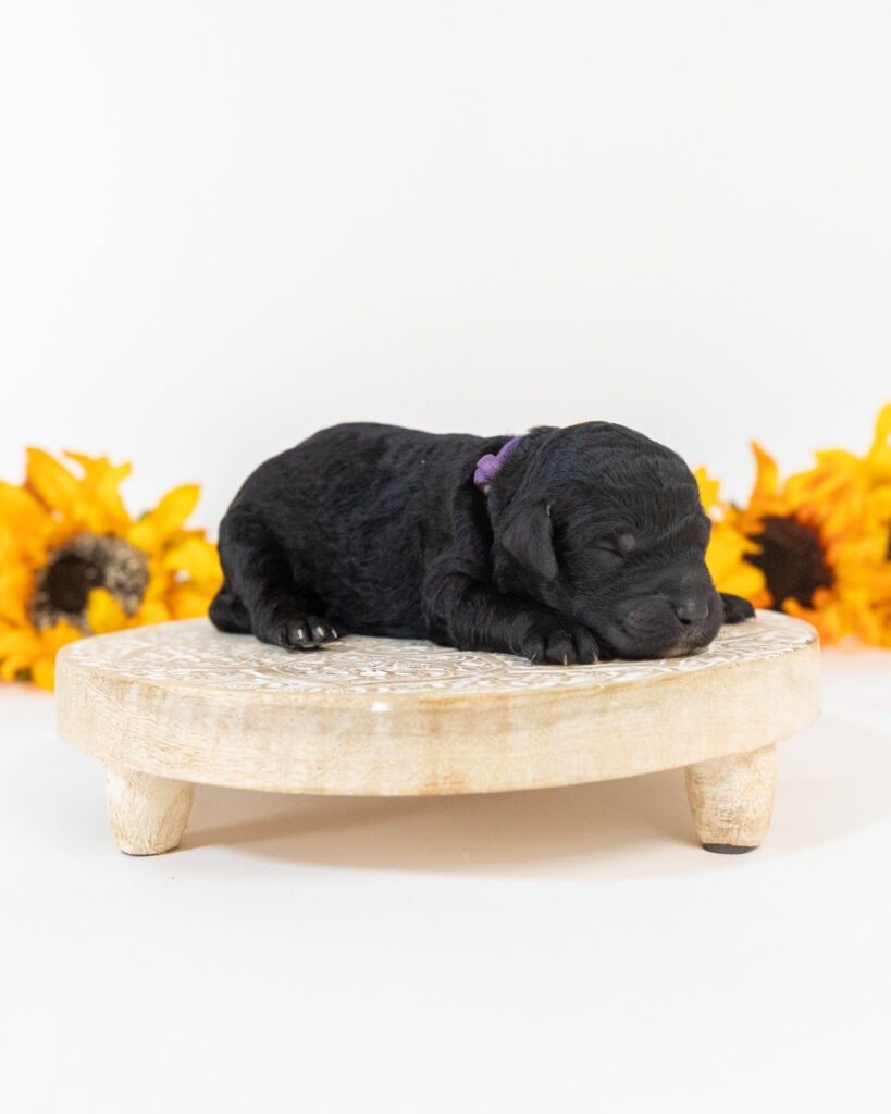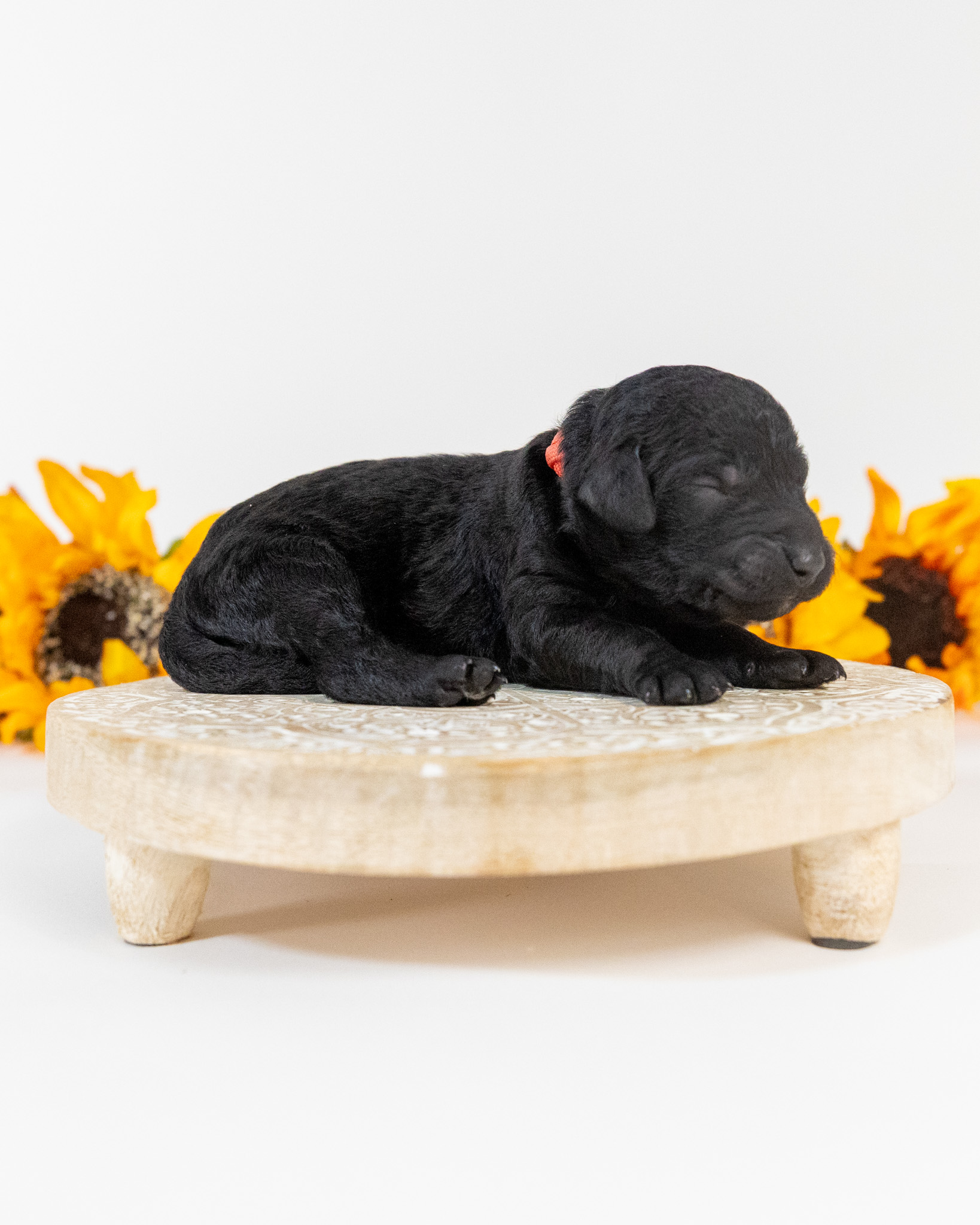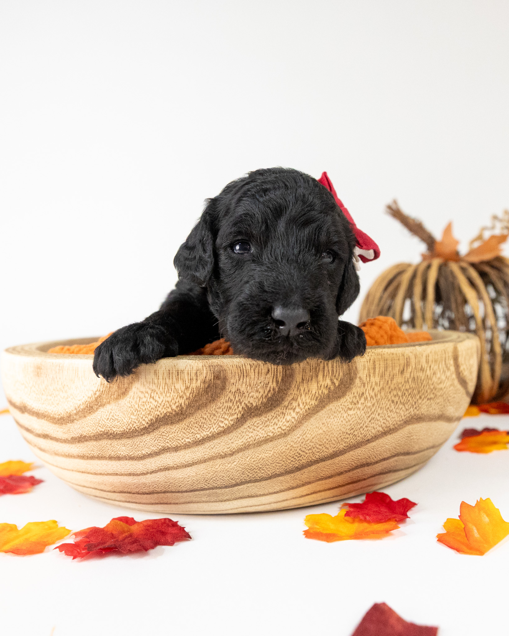 Ribbon is a multigen Goldendoodle puppy who will be ready for her fur-ever home around December 11th! Her soft, fluffy coat is hypoallergenic and non-shedding, ensuring endless snuggles without fear of allergic reactions. With a loyal and affectionate temperament, she is the perfect forever friend!