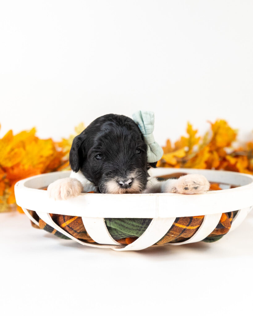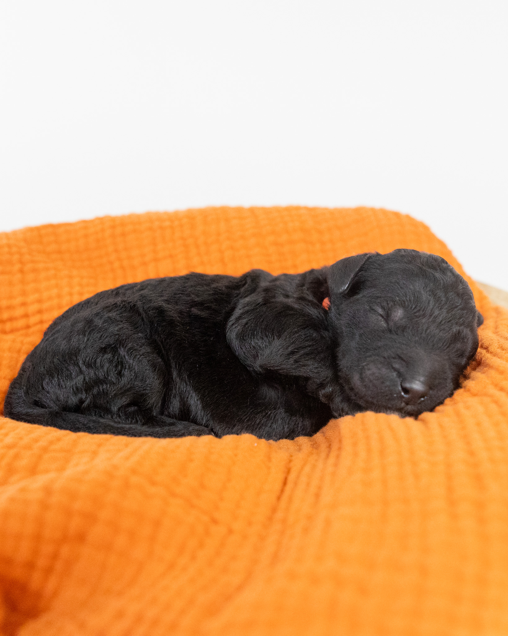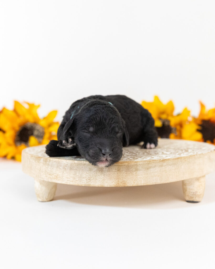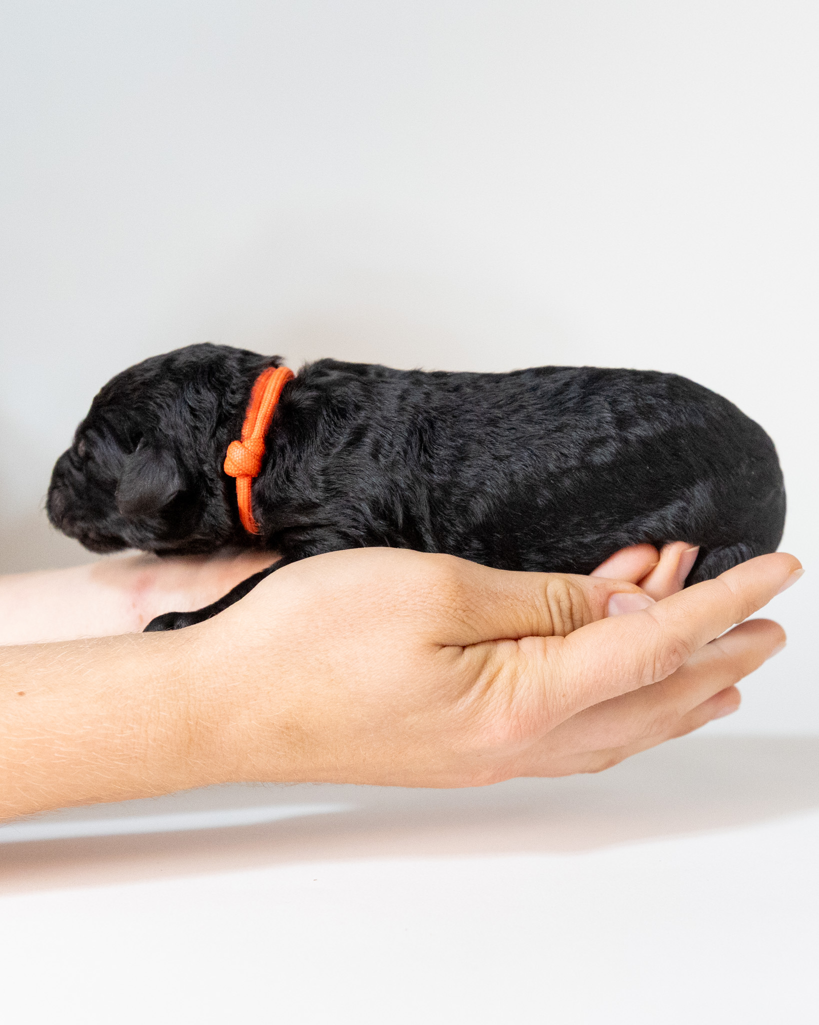 Ribbon is a multigen Goldendoodle puppy who will be ready for her fur-ever home around December 11th! Her soft, fluffy coat is hypoallergenic and non-shedding, ensuring endless snuggles without fear of allergic reactions. With a loyal and affectionate temperament, she is the perfect forever friend!