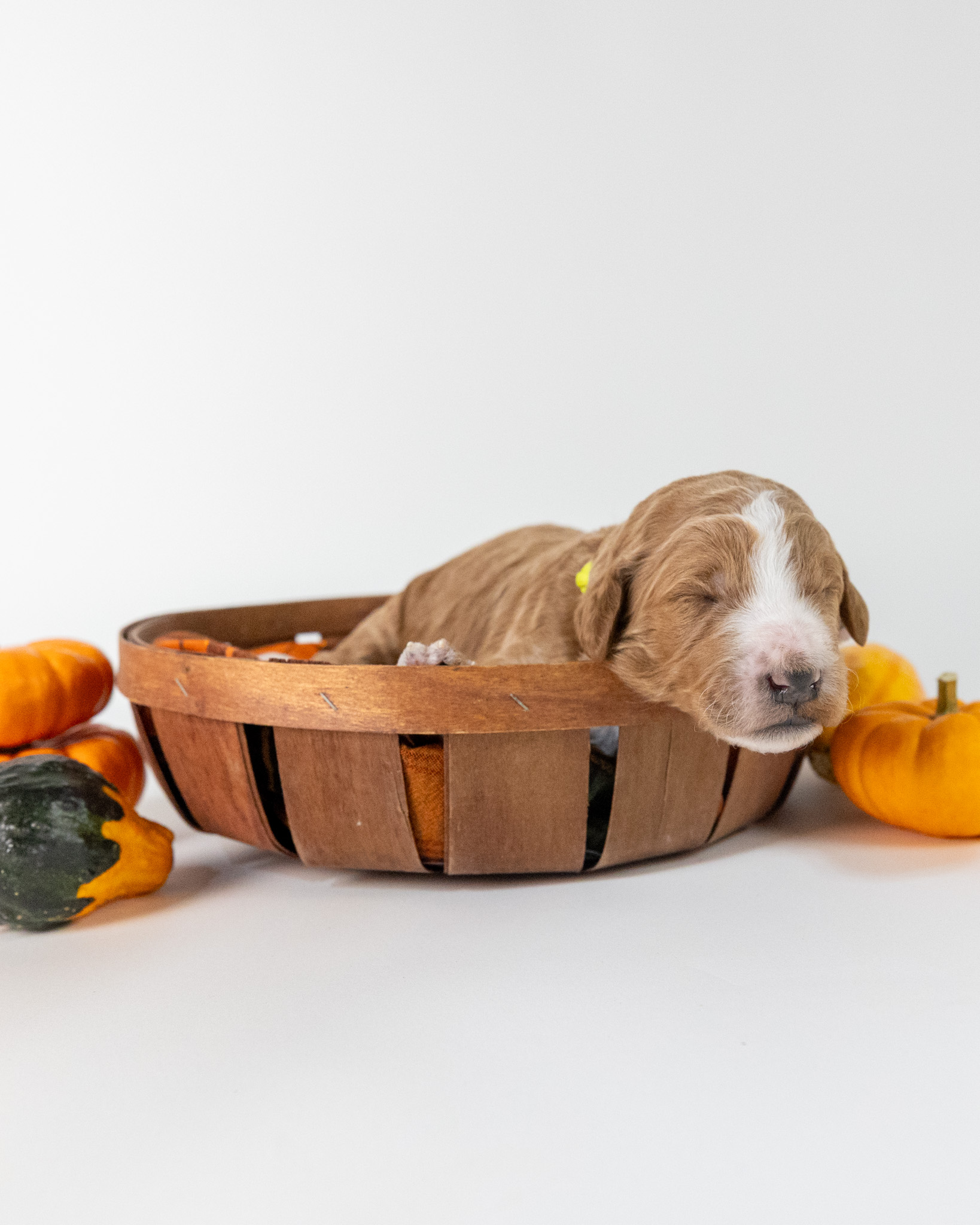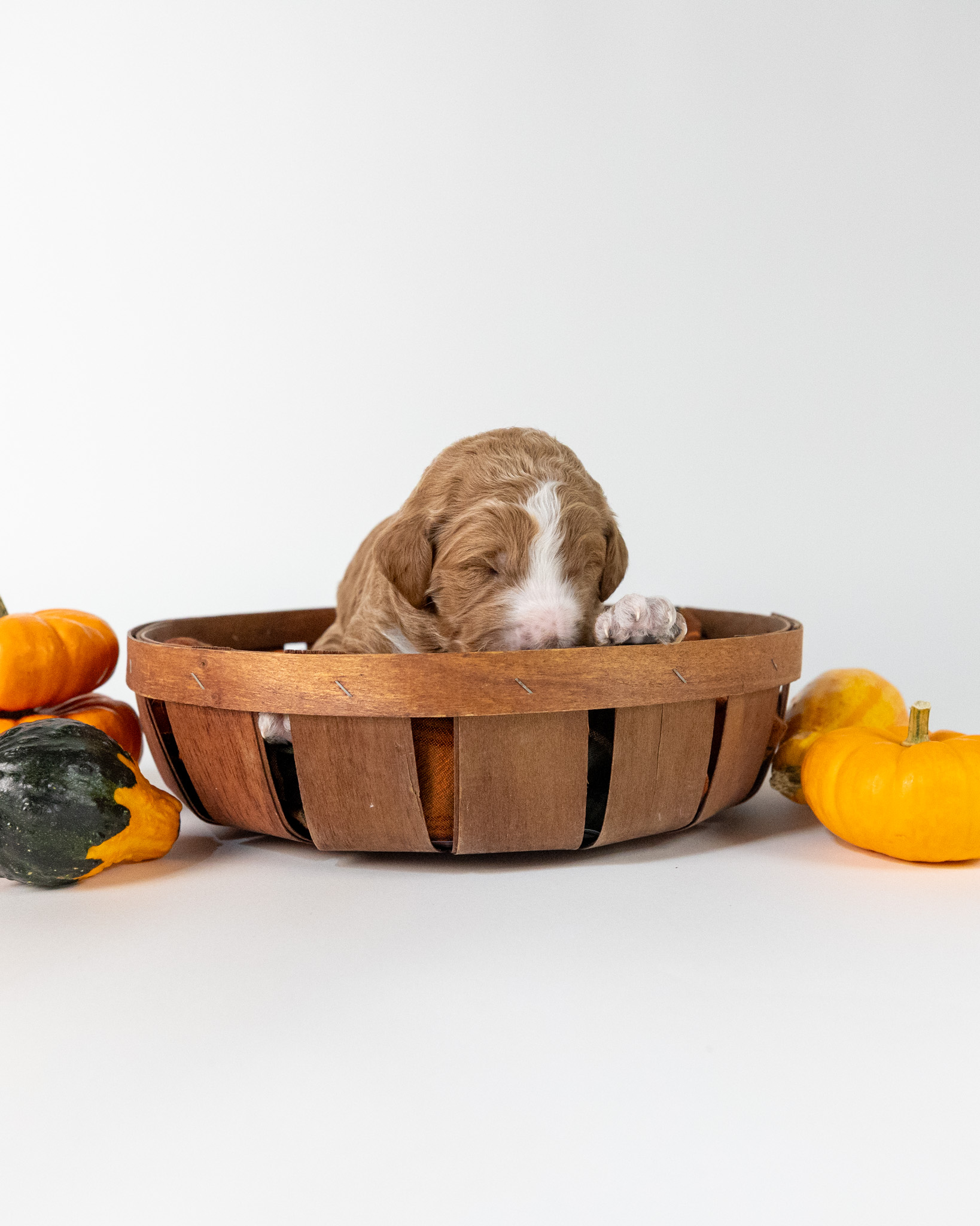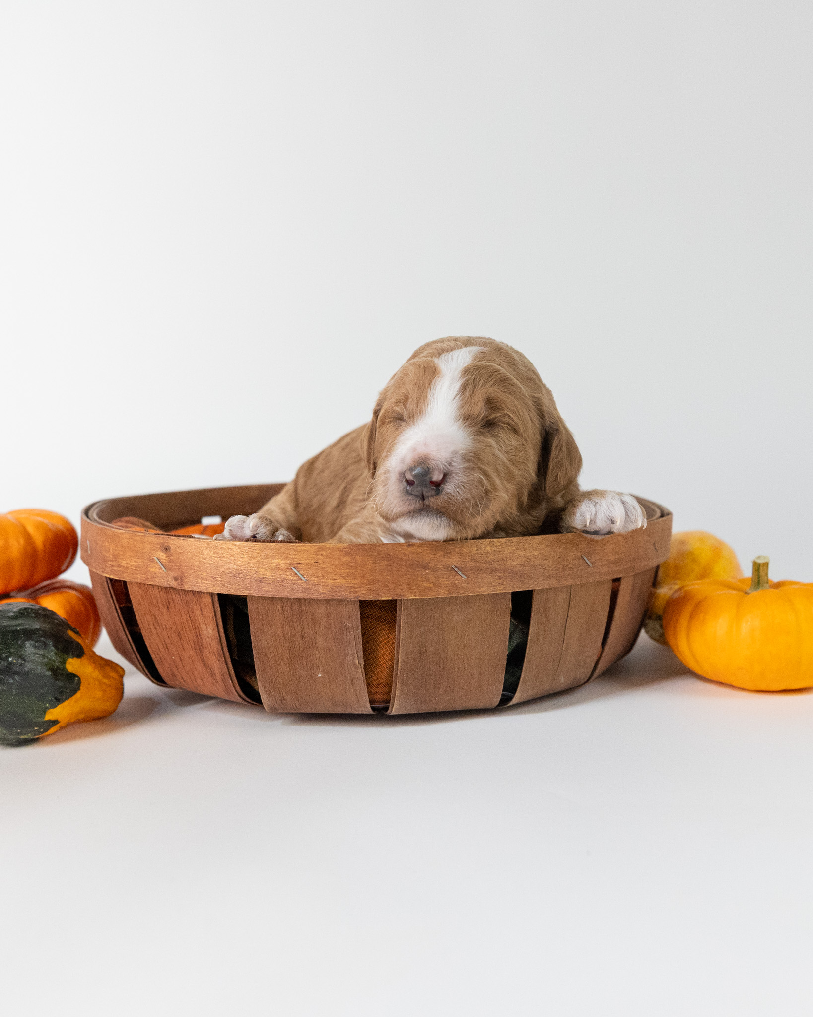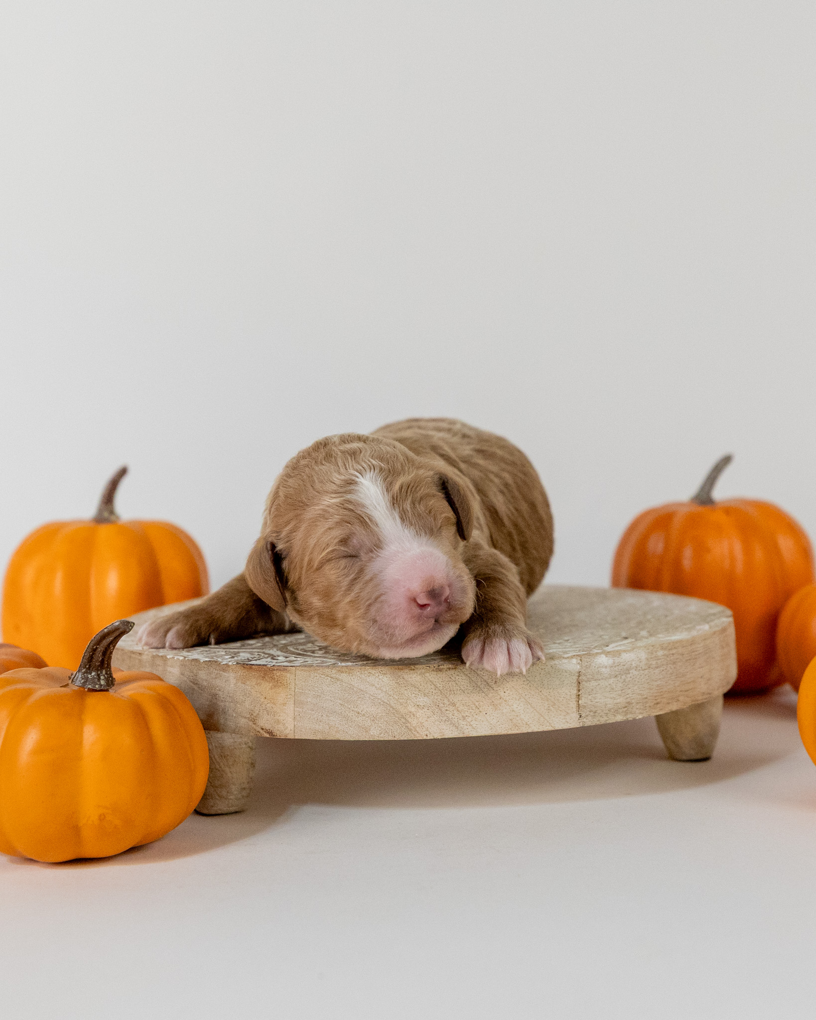Pepper is a red Goldendoodle puppy who will be ready for his forever home around September 9th.
