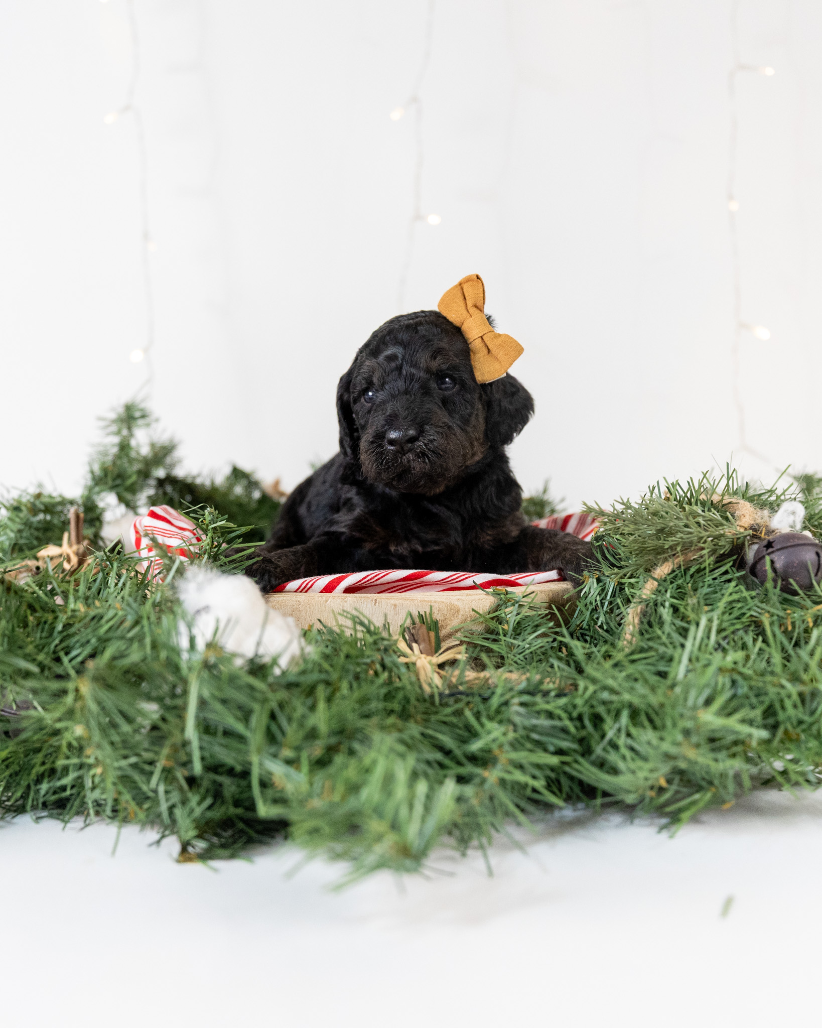 Cookie is a standard multigen Goldendoodle puppy who will be ready for her forever home January 7th! Her soft, fluffy coat is hypoallergenic and non-shedding, ensuring endless snuggles without fear of allergic reactions.