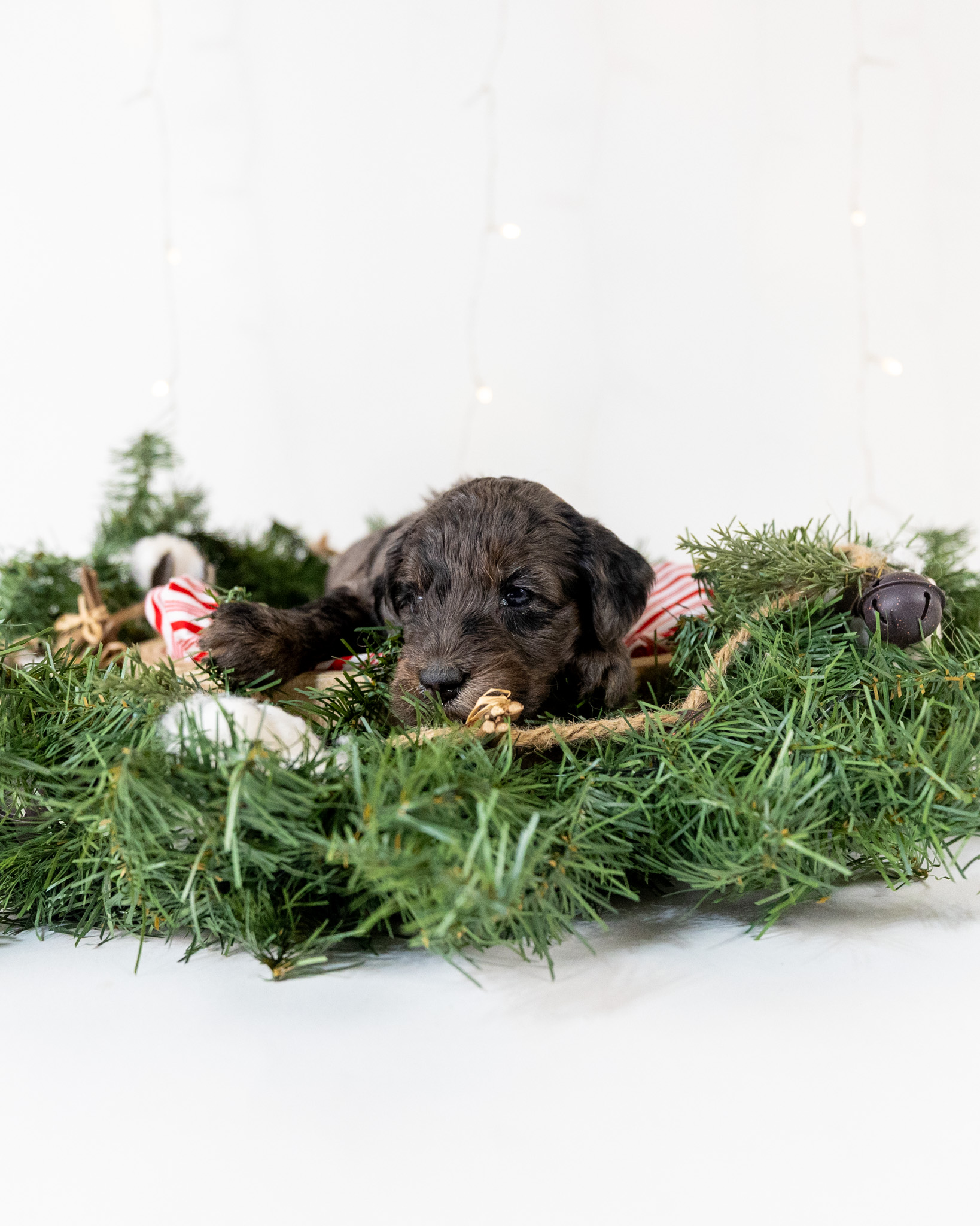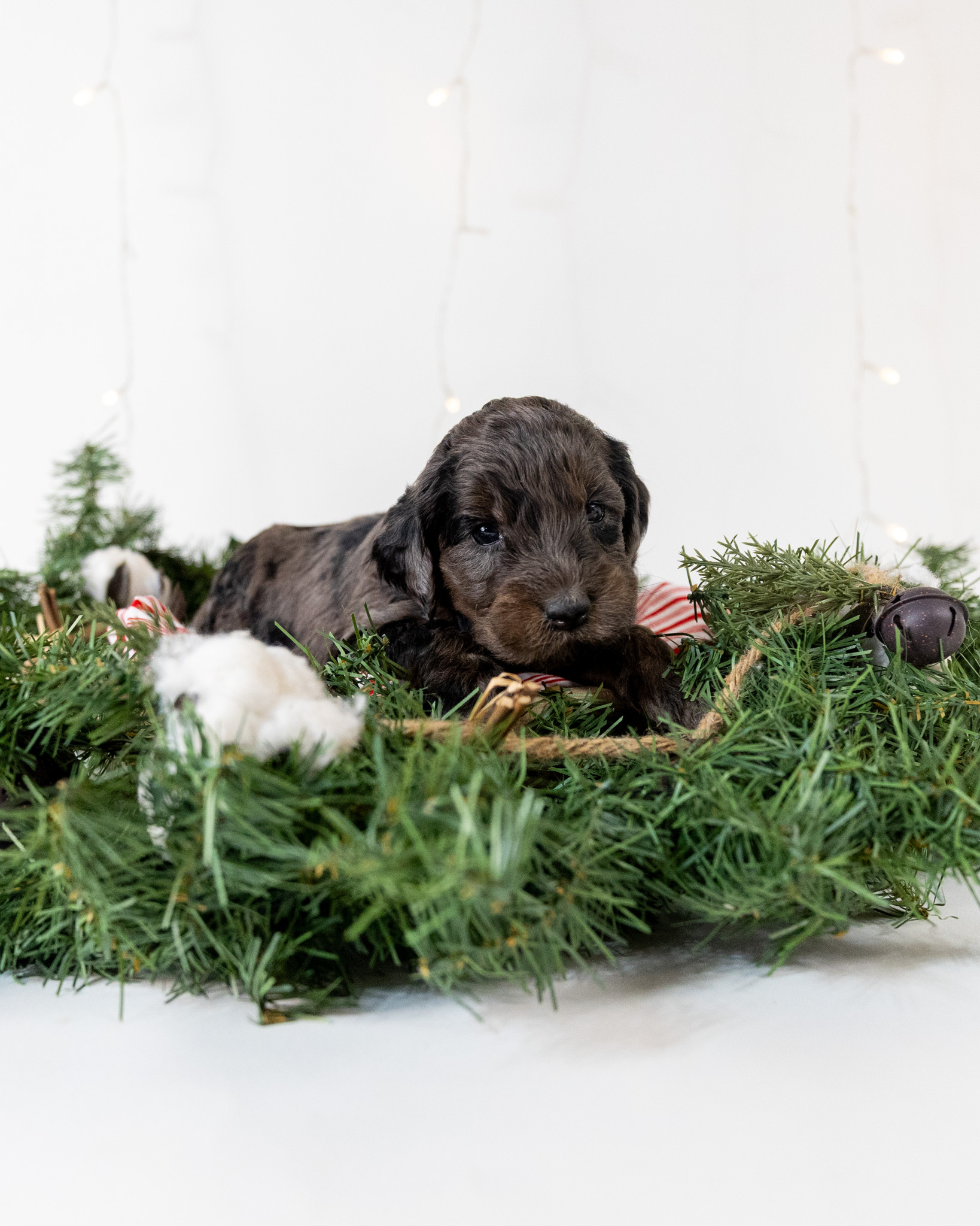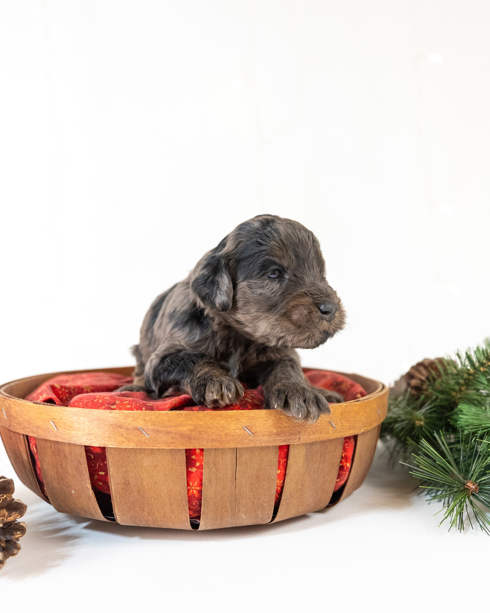Nimbus is a standard multigen Goldendoodle puppy who will be ready for his forever home January 7th! His soft, fluffy coat is hypoallergenic and non-shedding, ensuring endless snuggles without fear of allergic reactions.