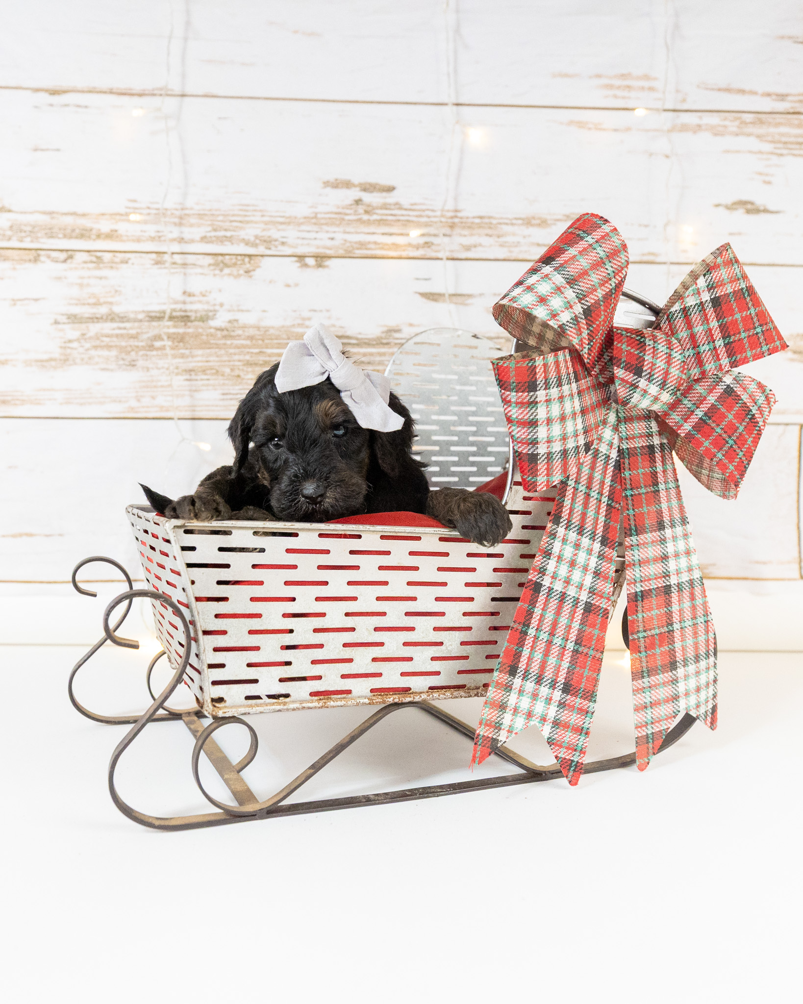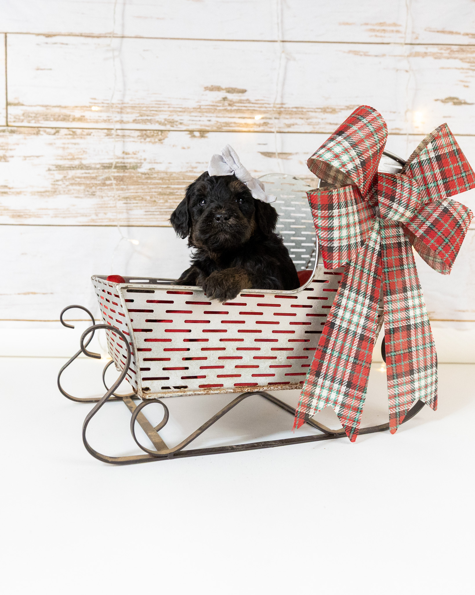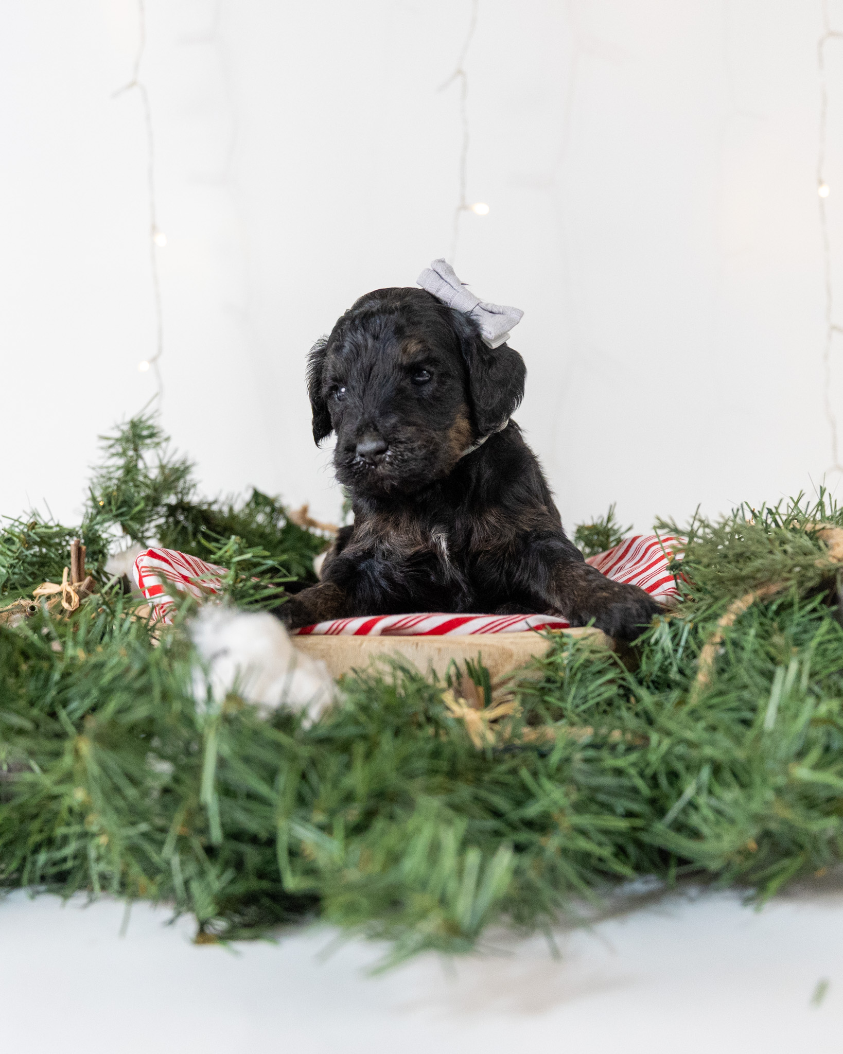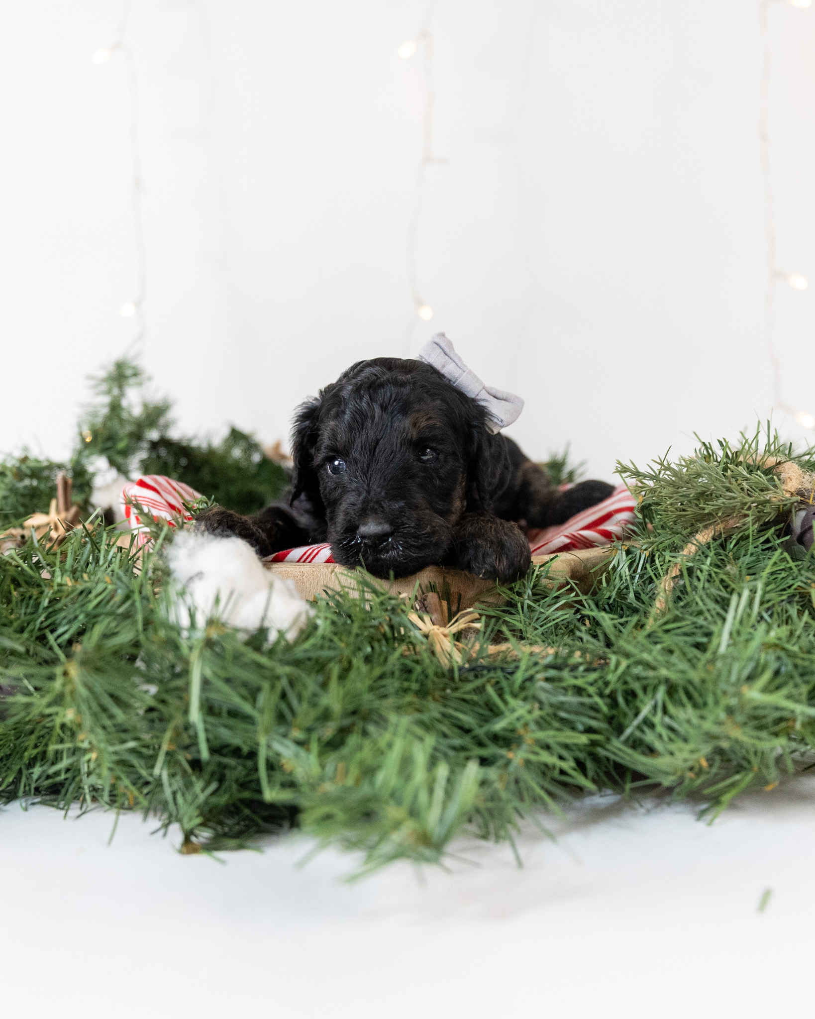 Vixen is a black Goldendoodle puppy who will be ready for her forever home around December 16th.