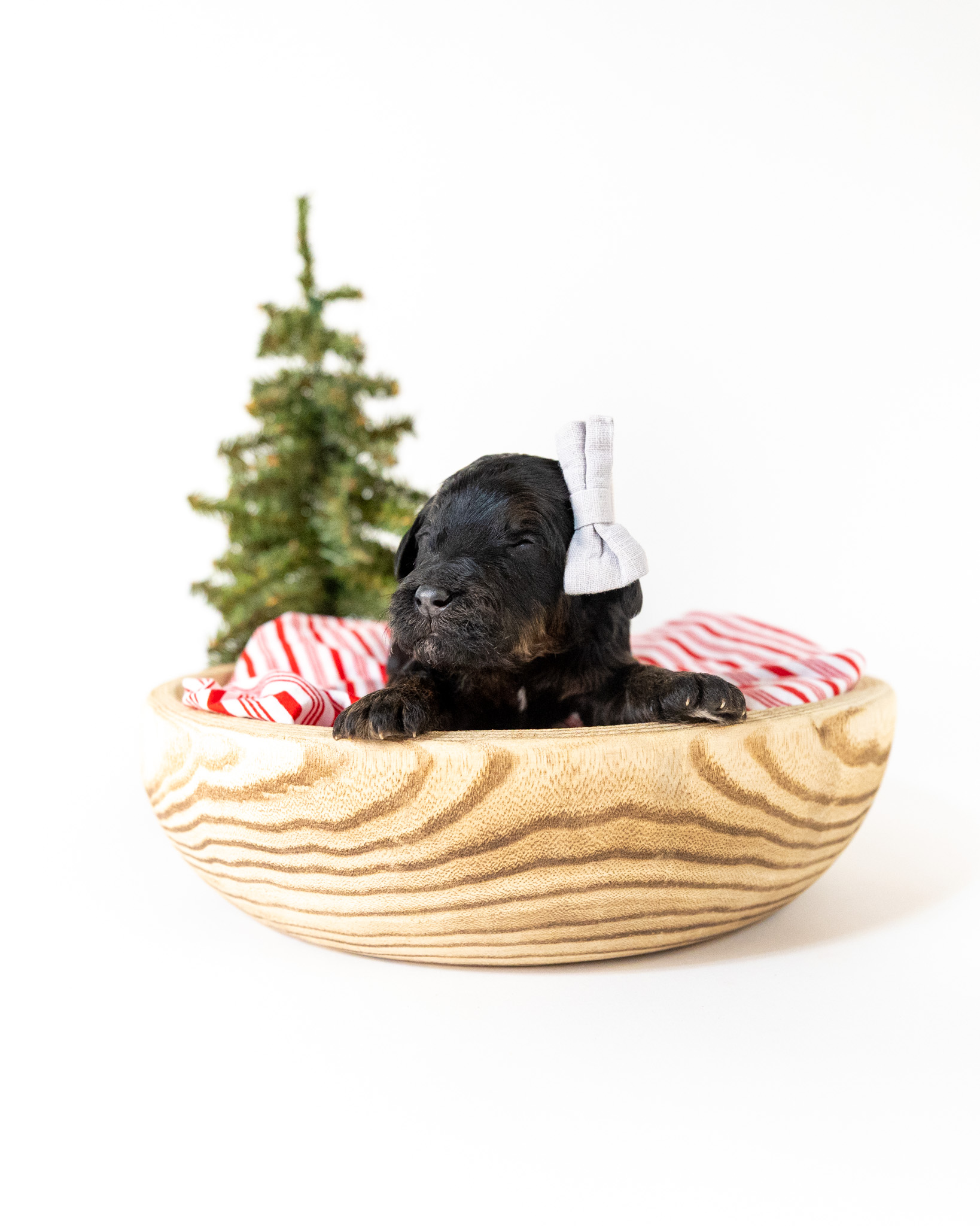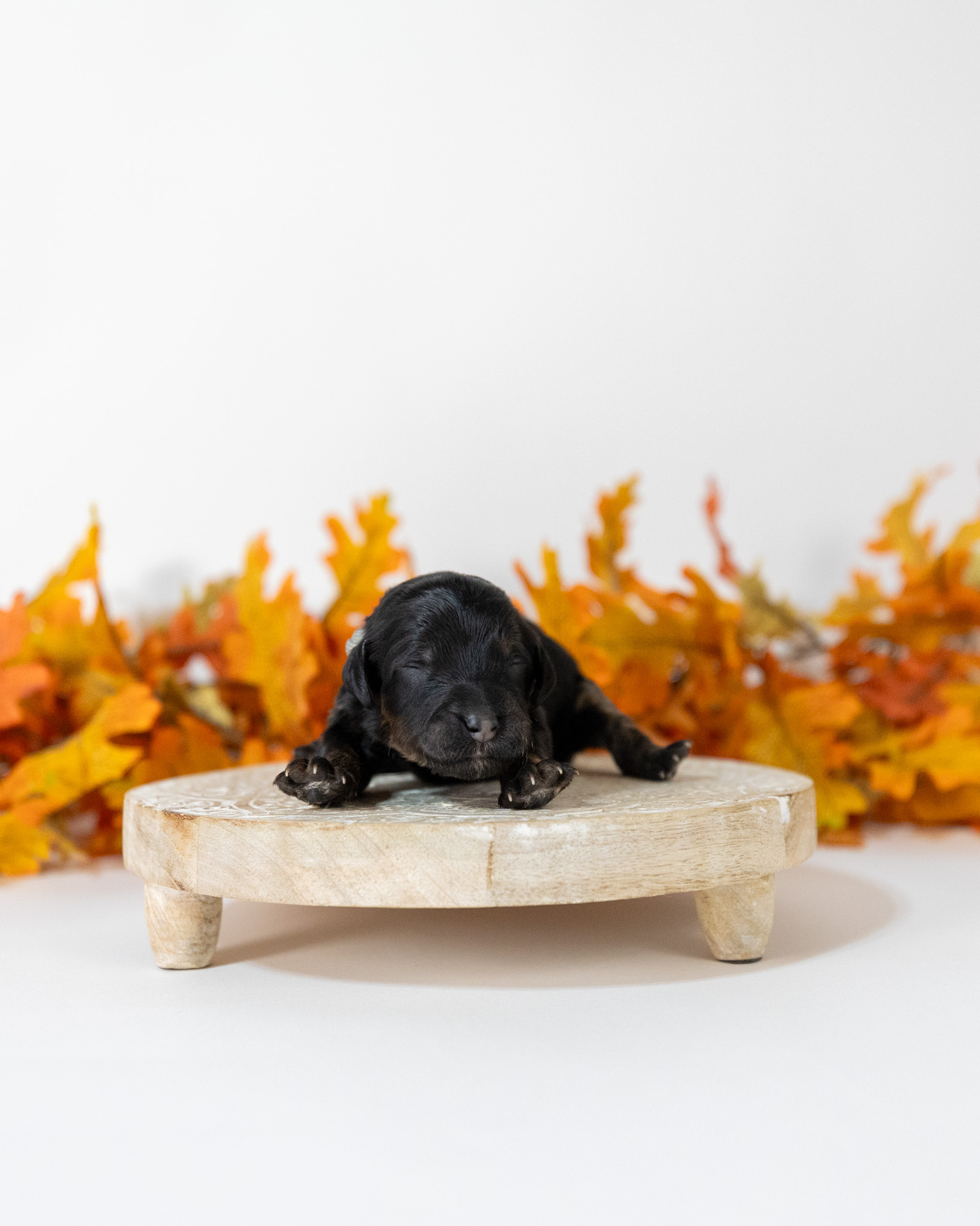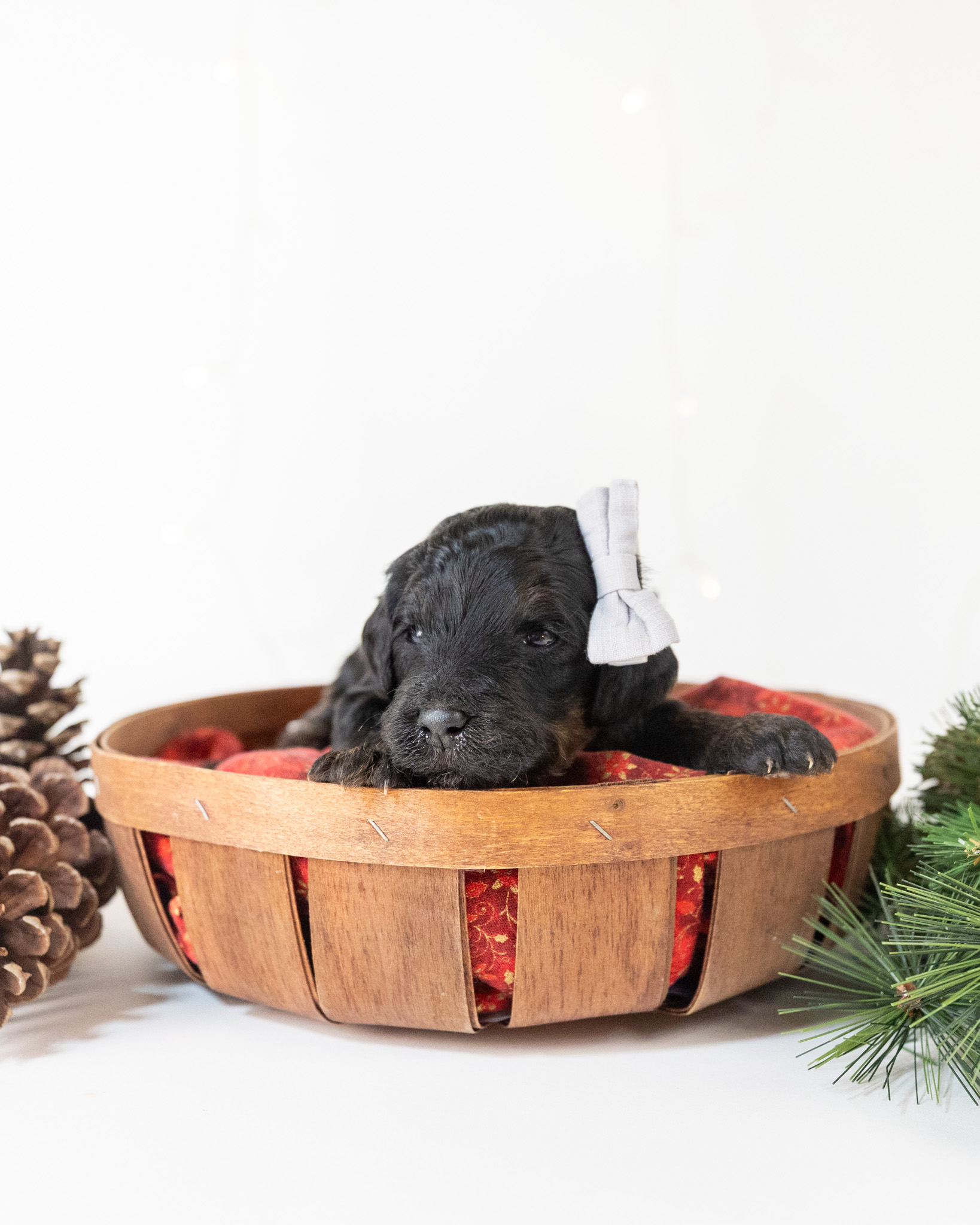 Vixen is a black Goldendoodle puppy who will be ready for her forever home around December 16th.