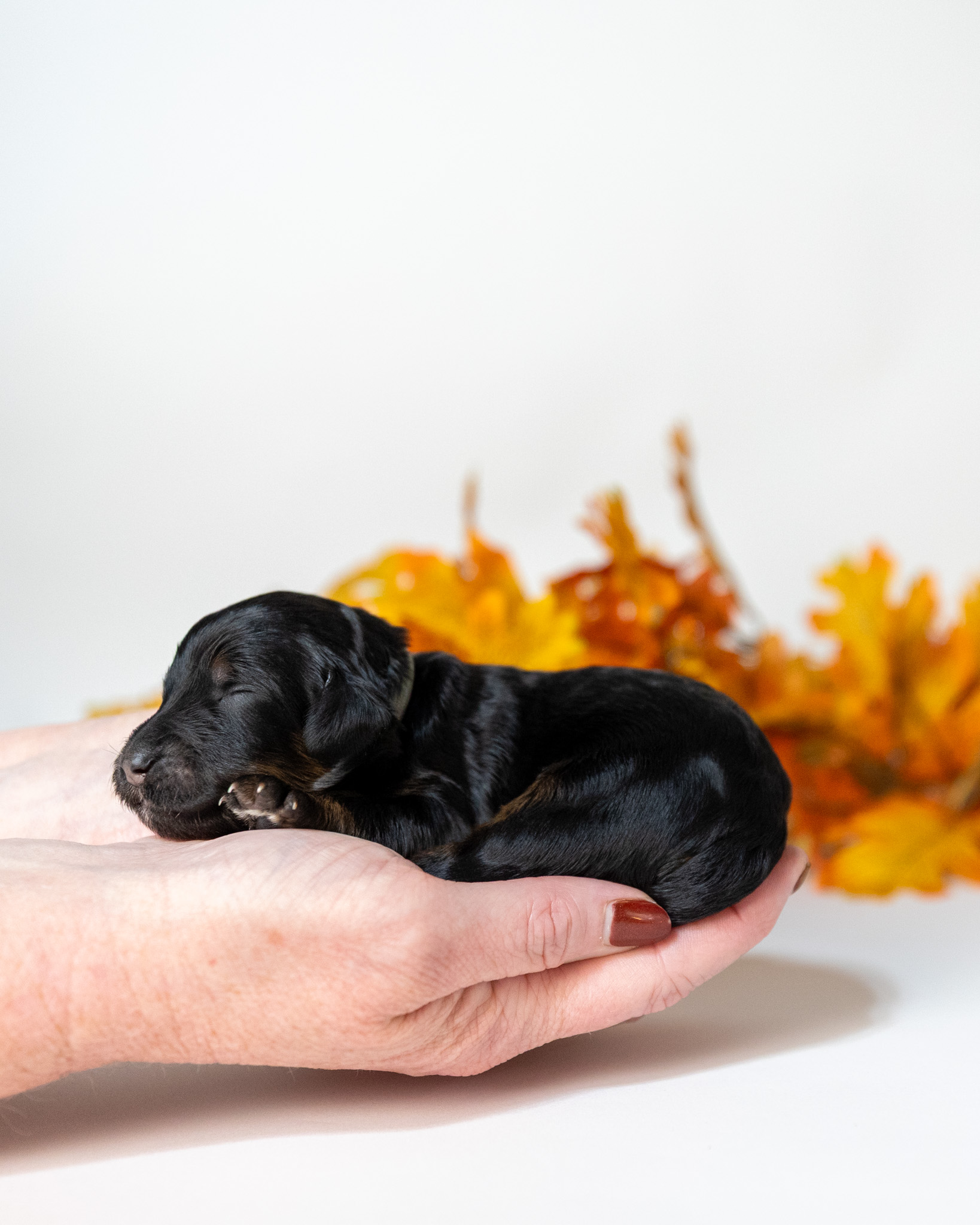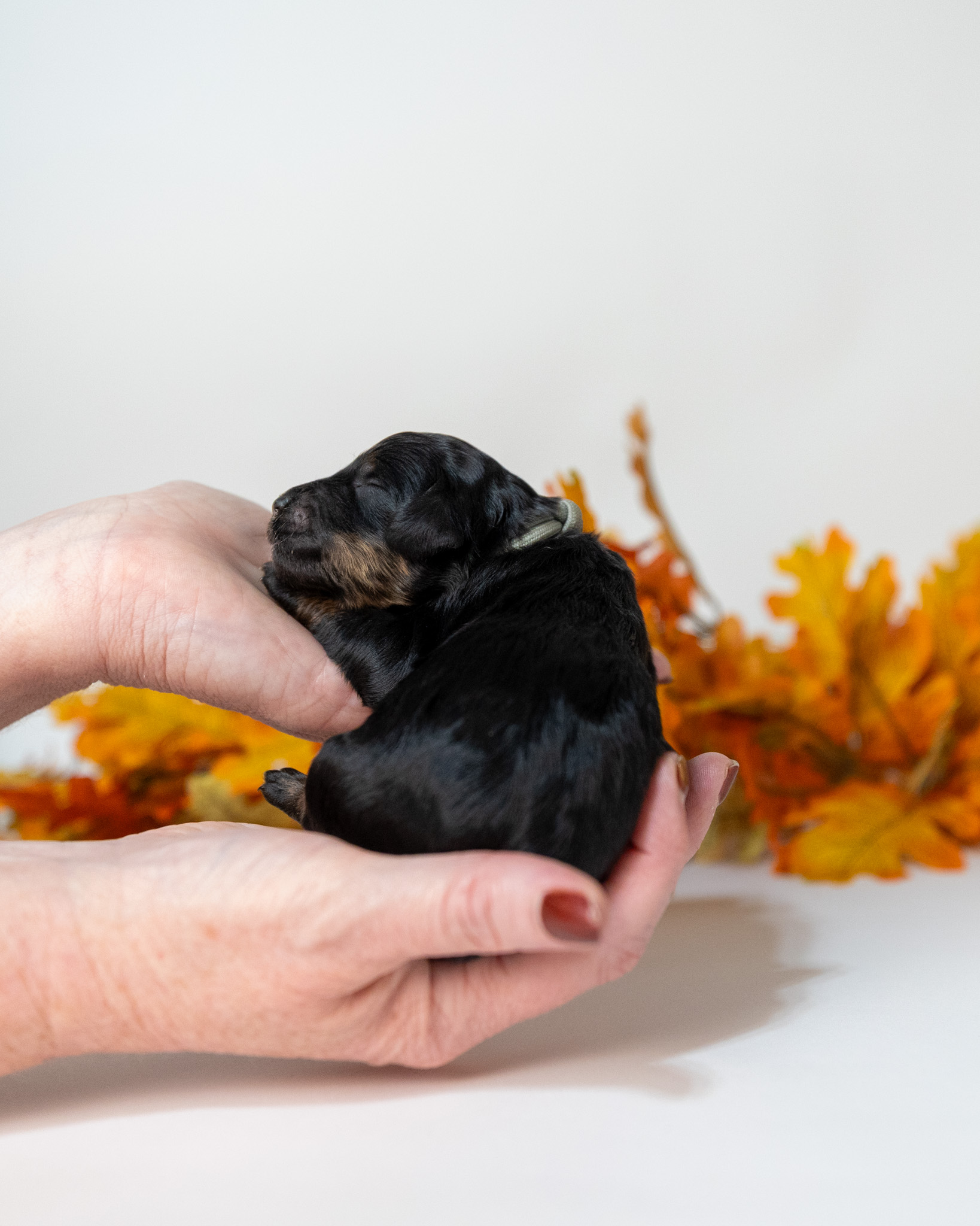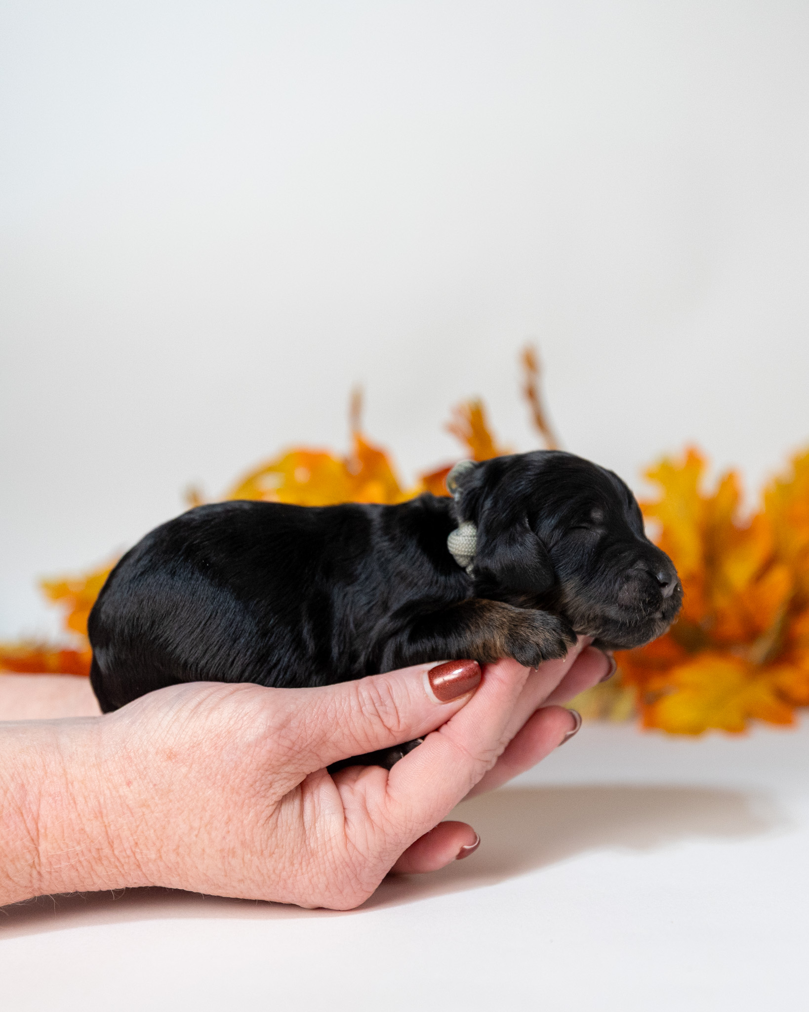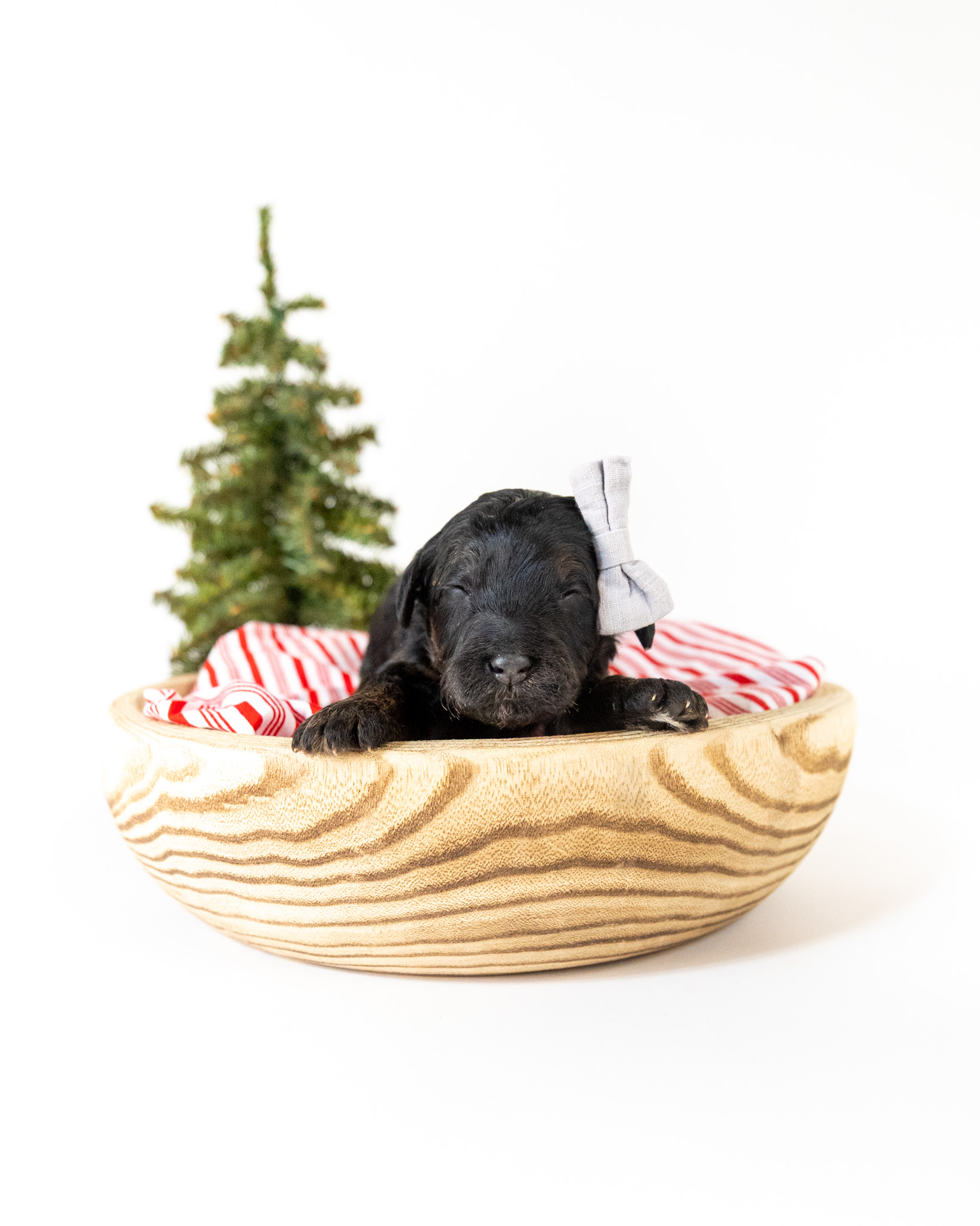 Vixen is a black Goldendoodle puppy who will be ready for her forever home around December 16th.