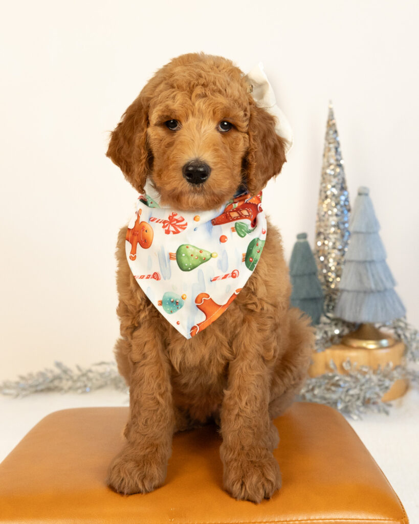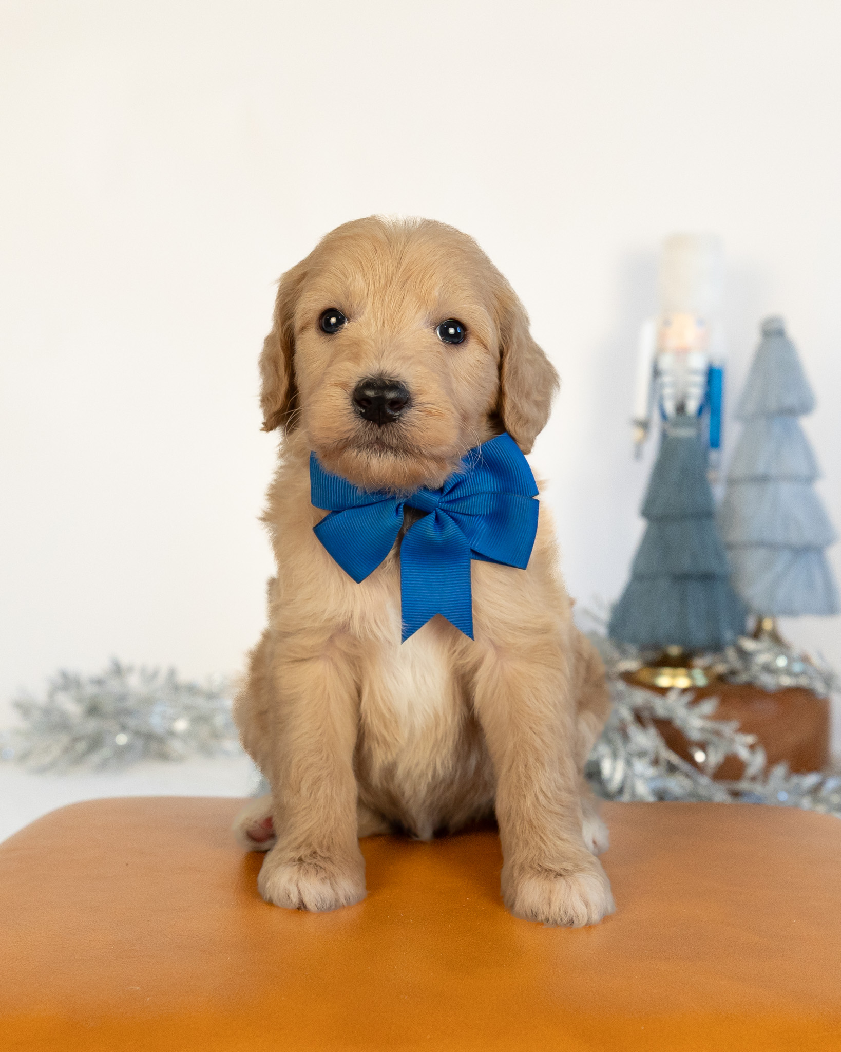 Nutcracker is a multigen standard Goldendoodle puppy who will be ready for his fur-ever home around December 19th! His soft, fluffy coat is hypoallergenic and non-shedding, ensuring endless snuggles without fear of allergic reactions. With a loyal and affectionate temperament, he is the perfect forever friend!