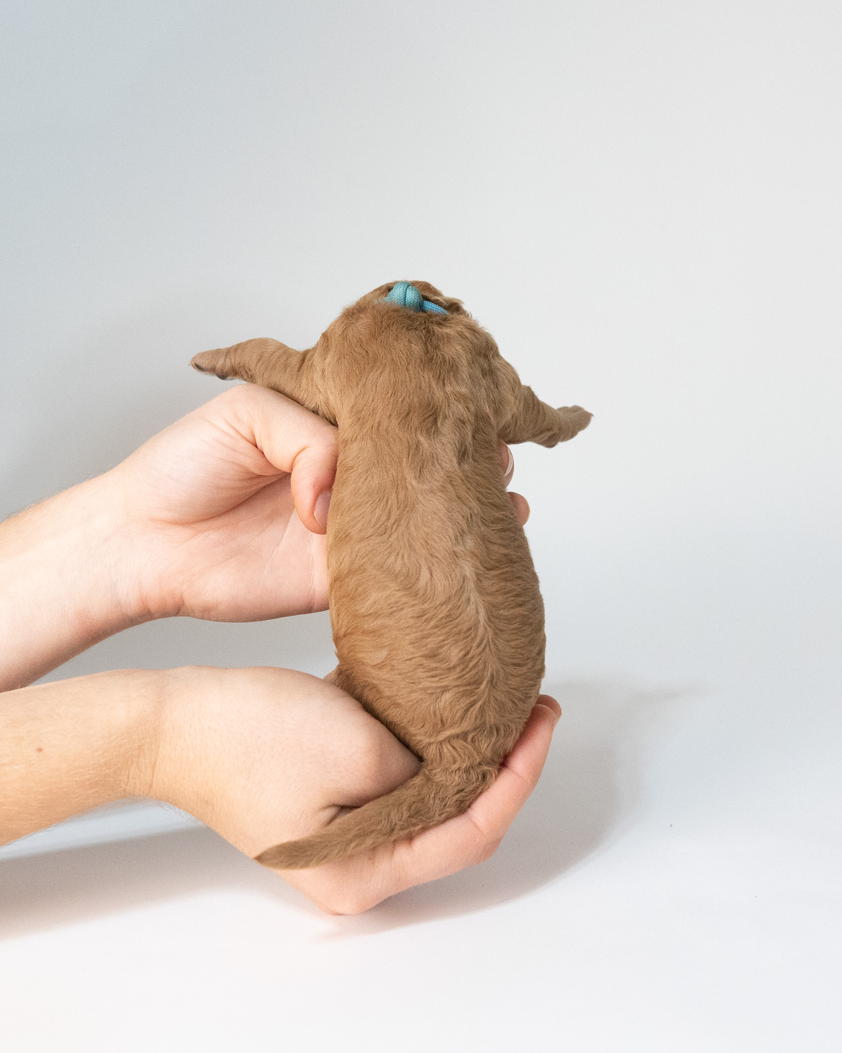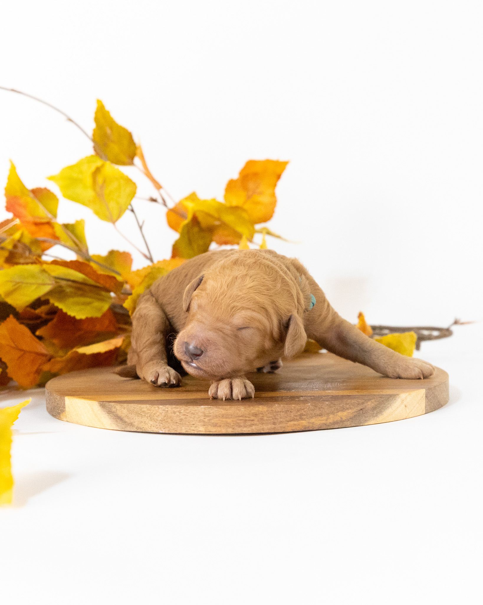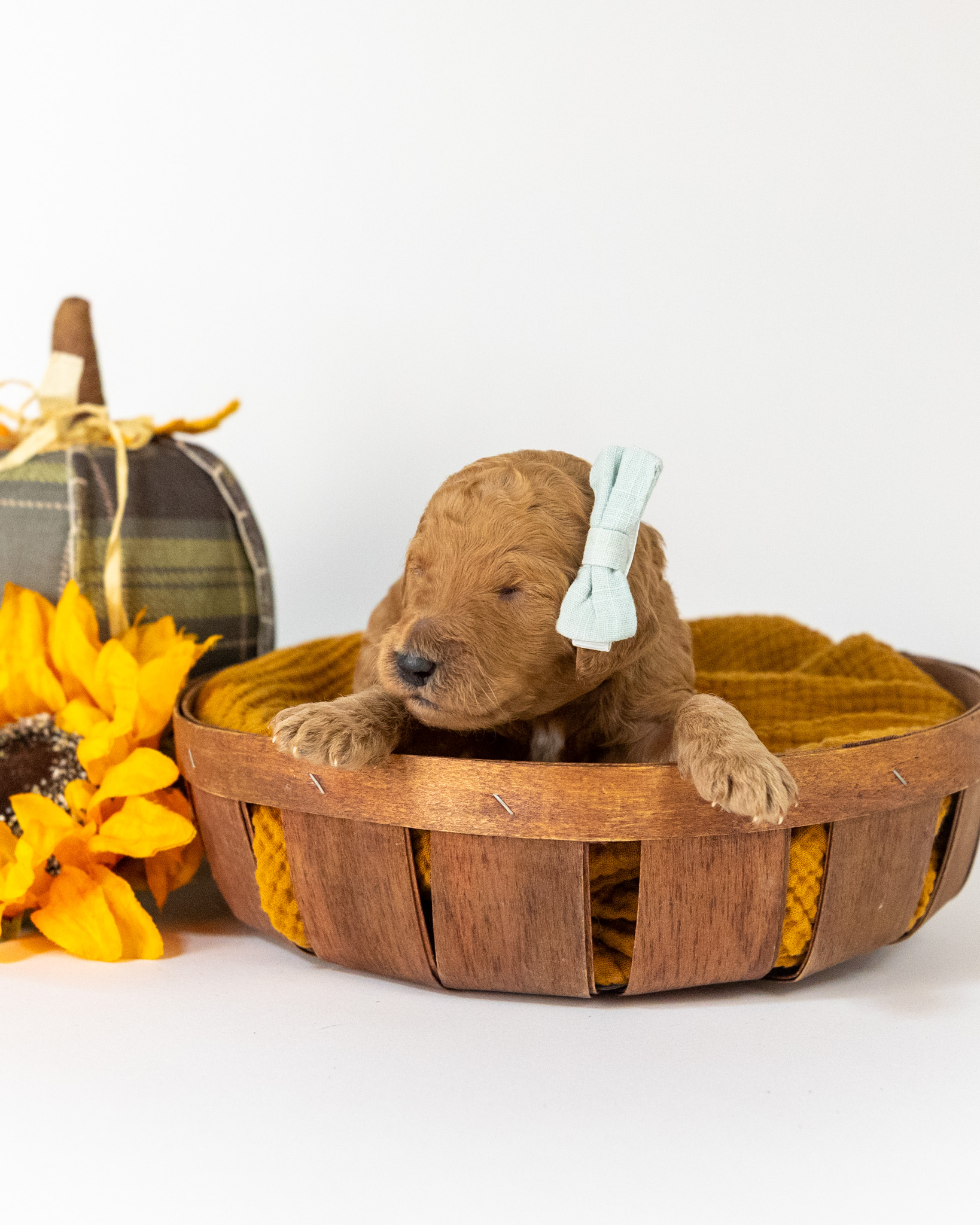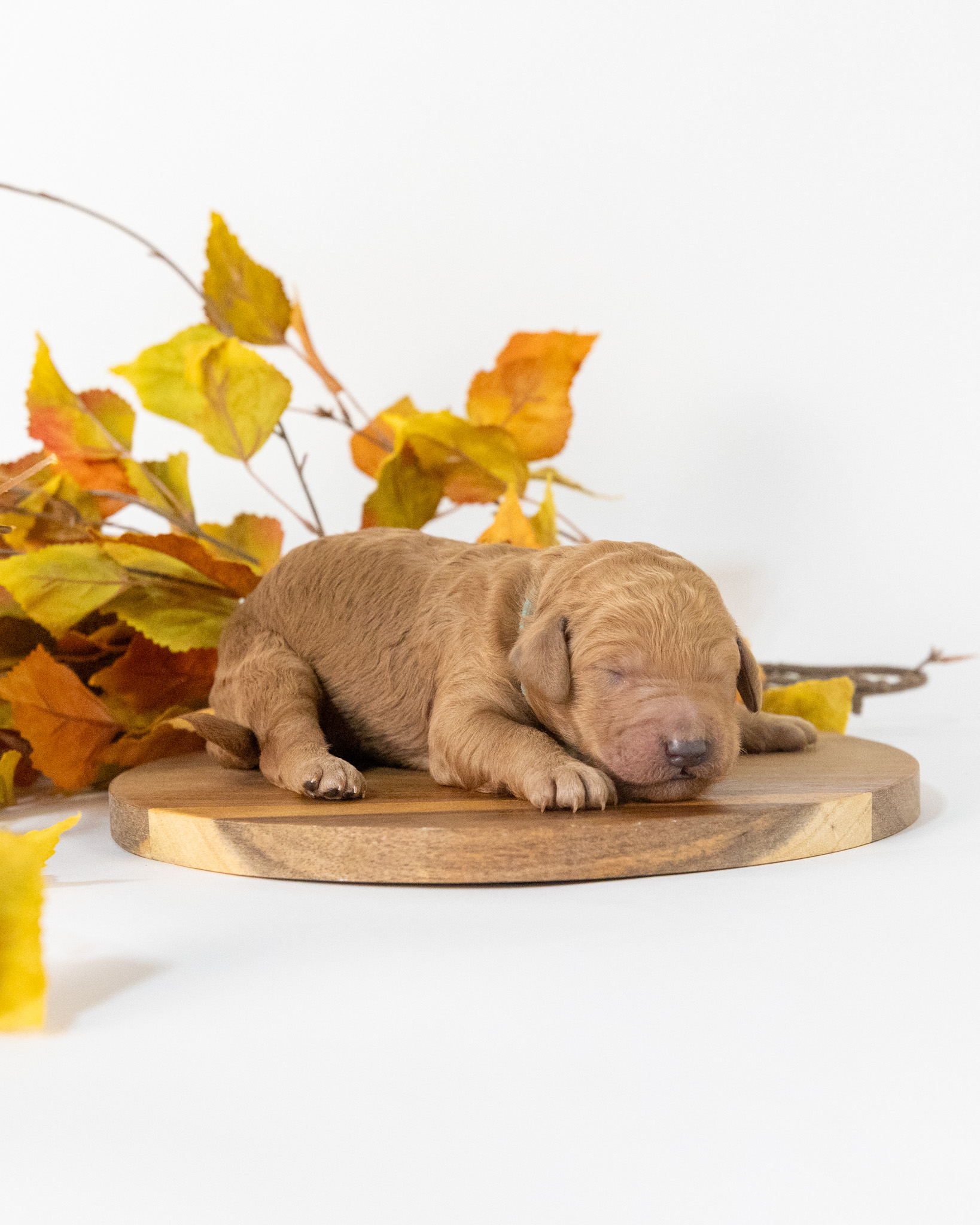 Aspen is a red multigen Goldendoodle puppy who will be ready for her fur-ever home around December 16th! Her soft, fluffy coat is hypoallergenic and non-shedding, ensuring endless snuggles without fear of allergic reactions. With a loyal and affectionate temperament, she is the perfect forever friend!