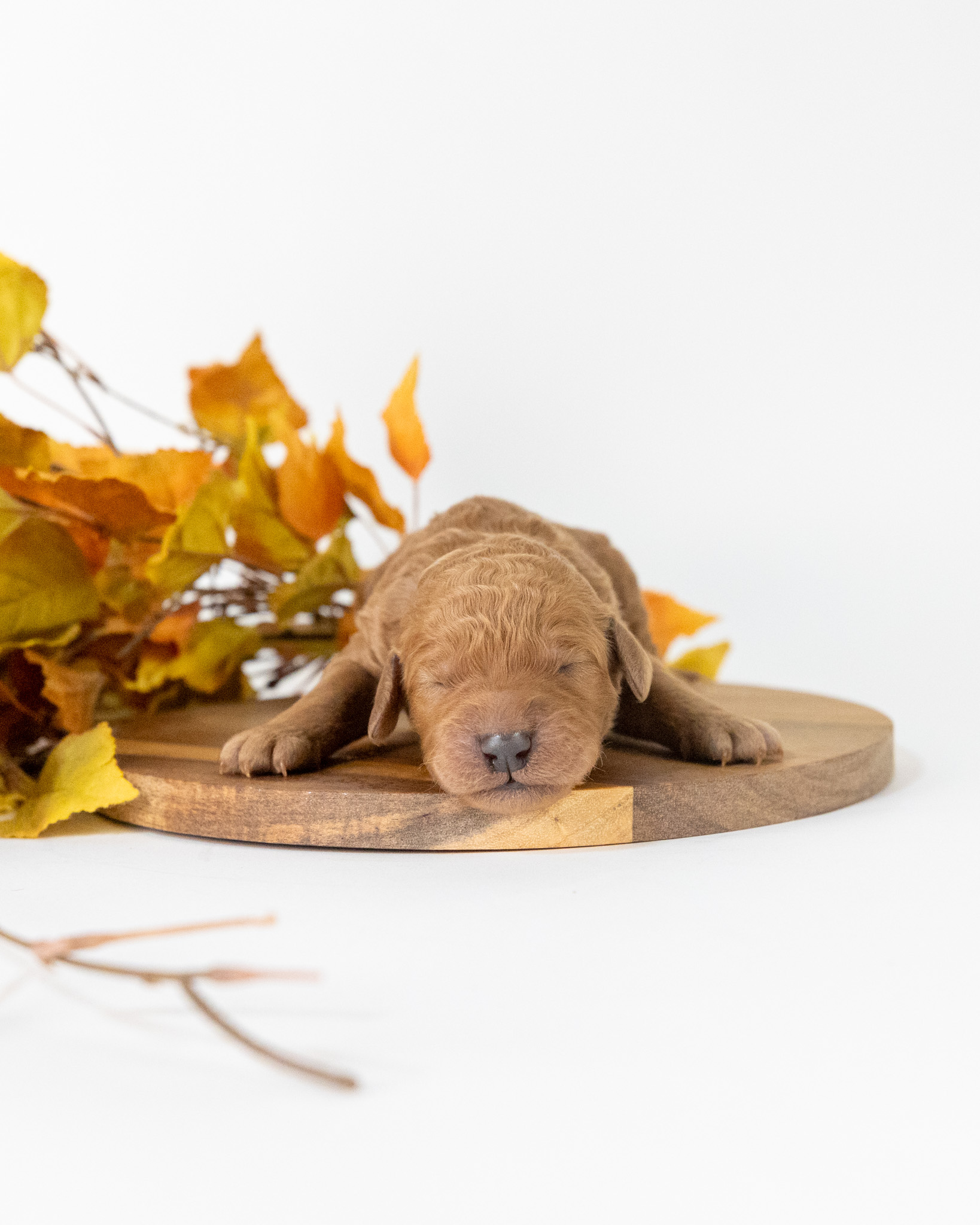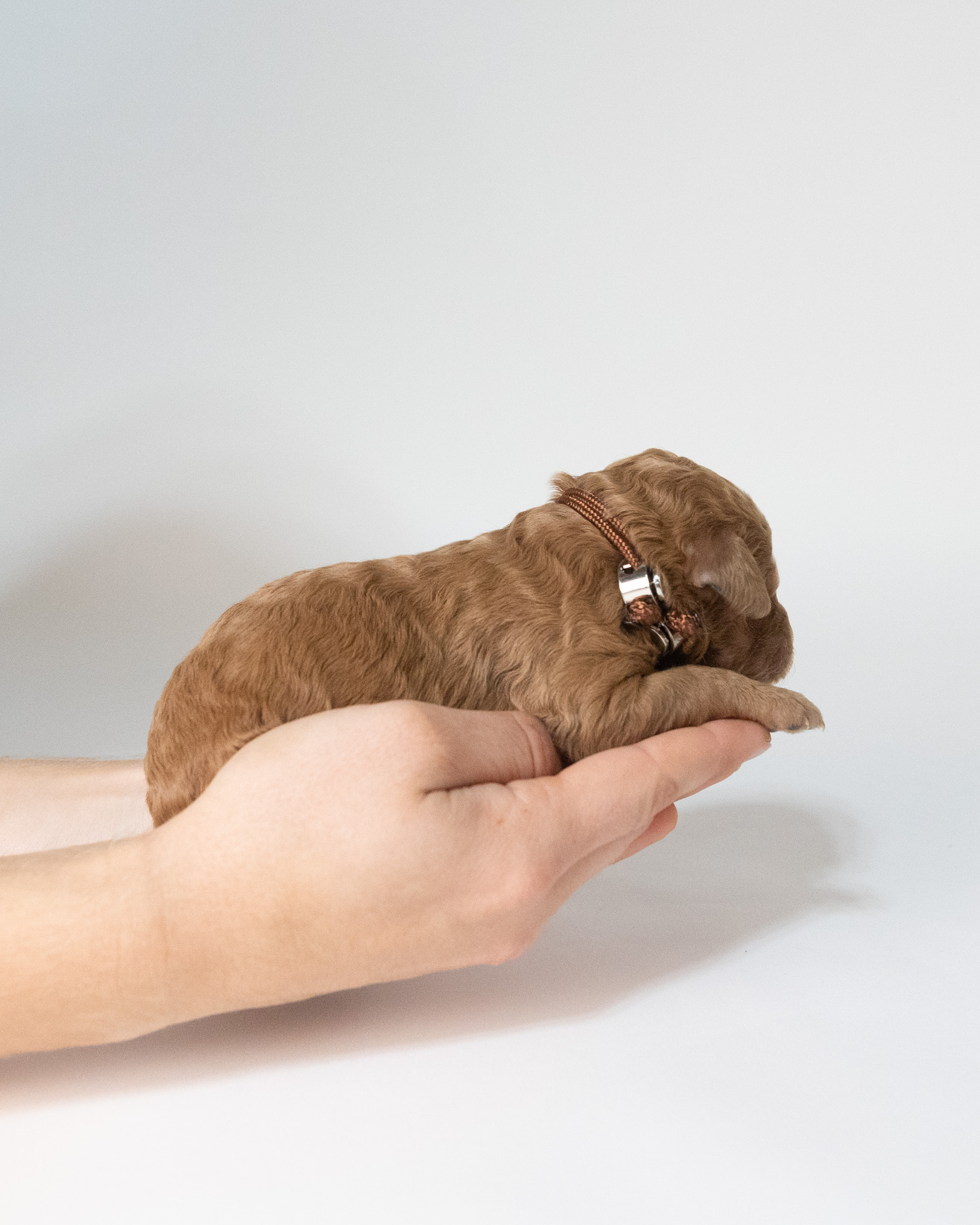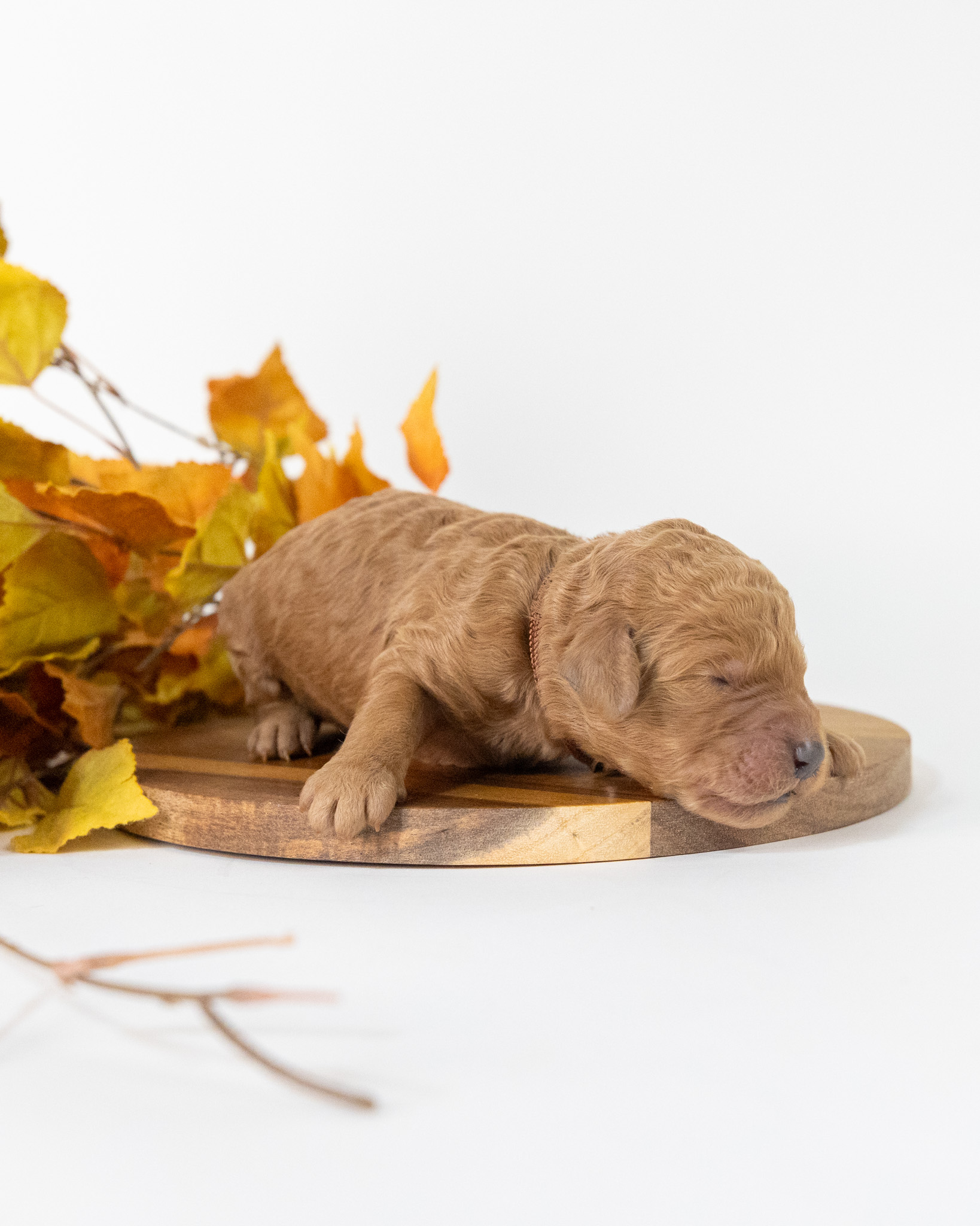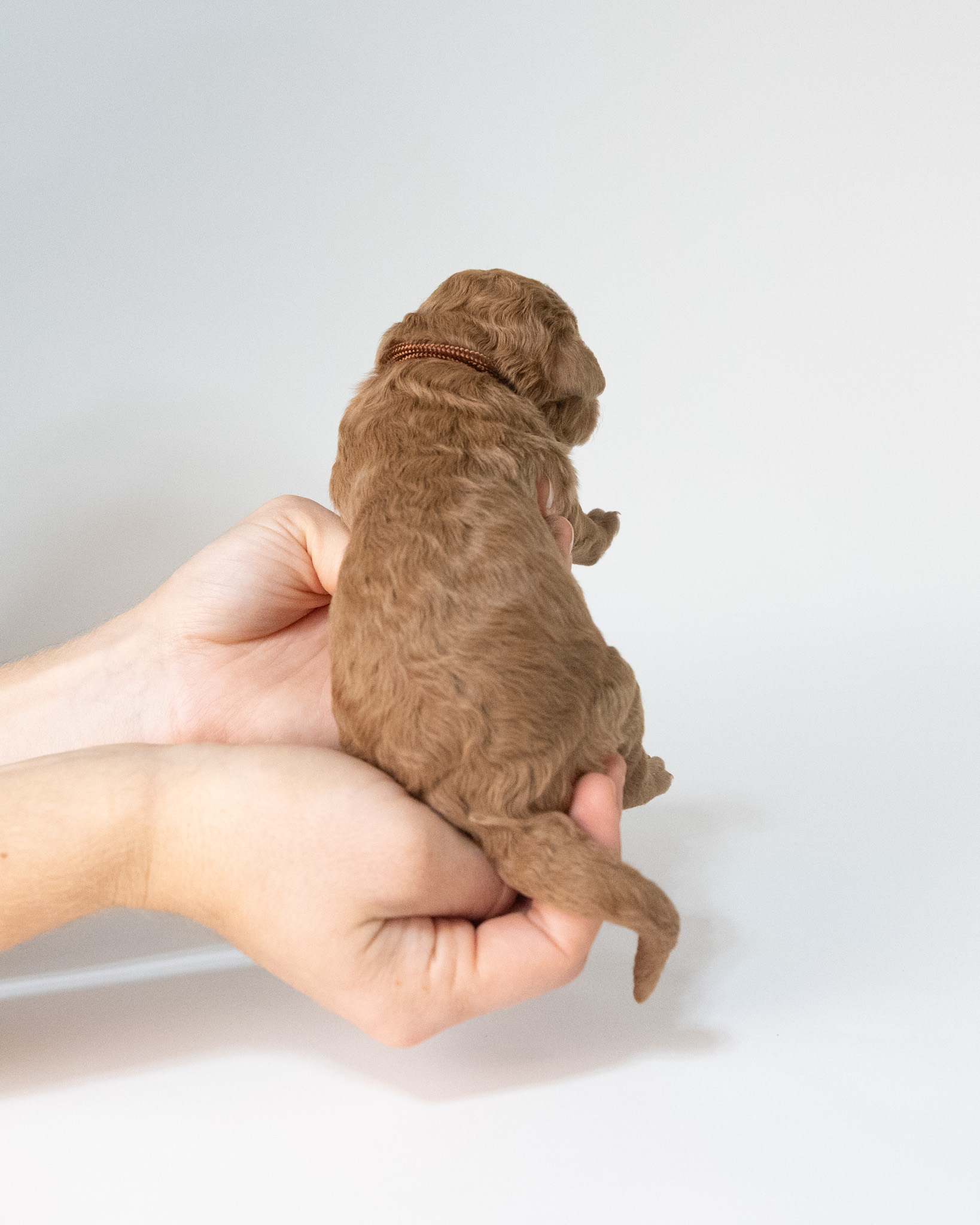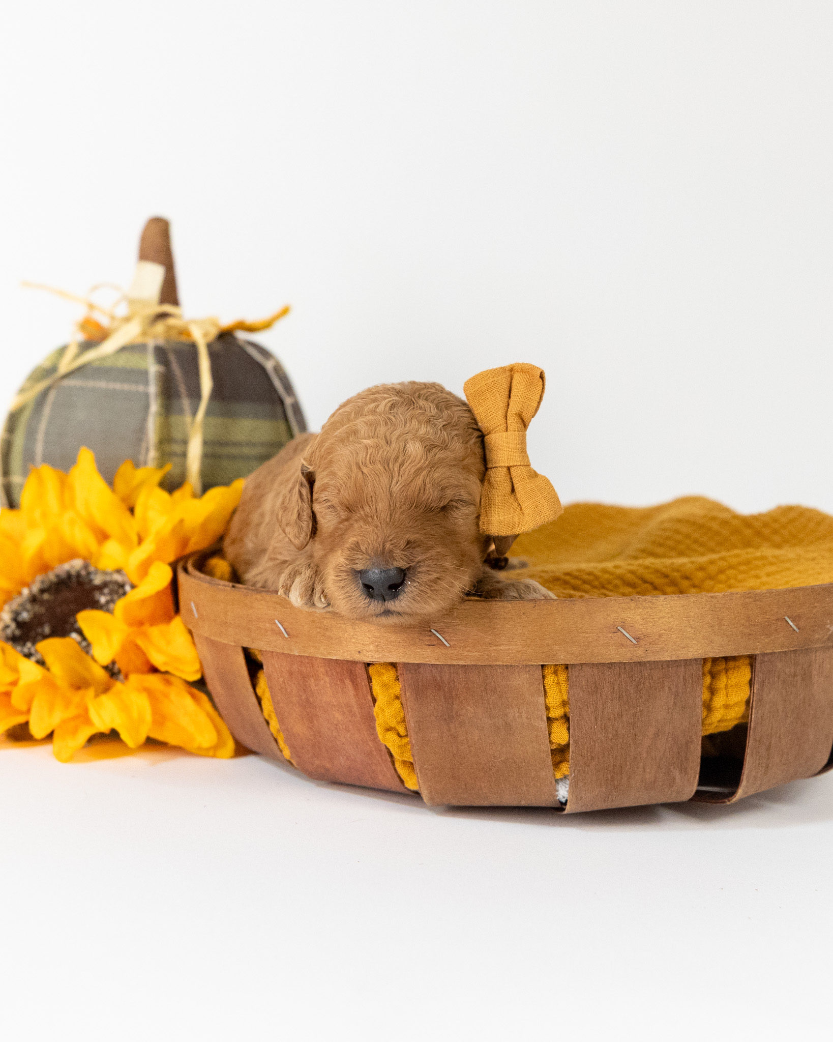 Cindy Lou is a red multigen Goldendoodle puppy who will be ready for her fur-ever home around December 16th! Her soft, fluffy coat is hypoallergenic and non-shedding, ensuring endless snuggles without fear of allergic reactions. With a loyal and affectionate temperament, she is the perfect forever friend!